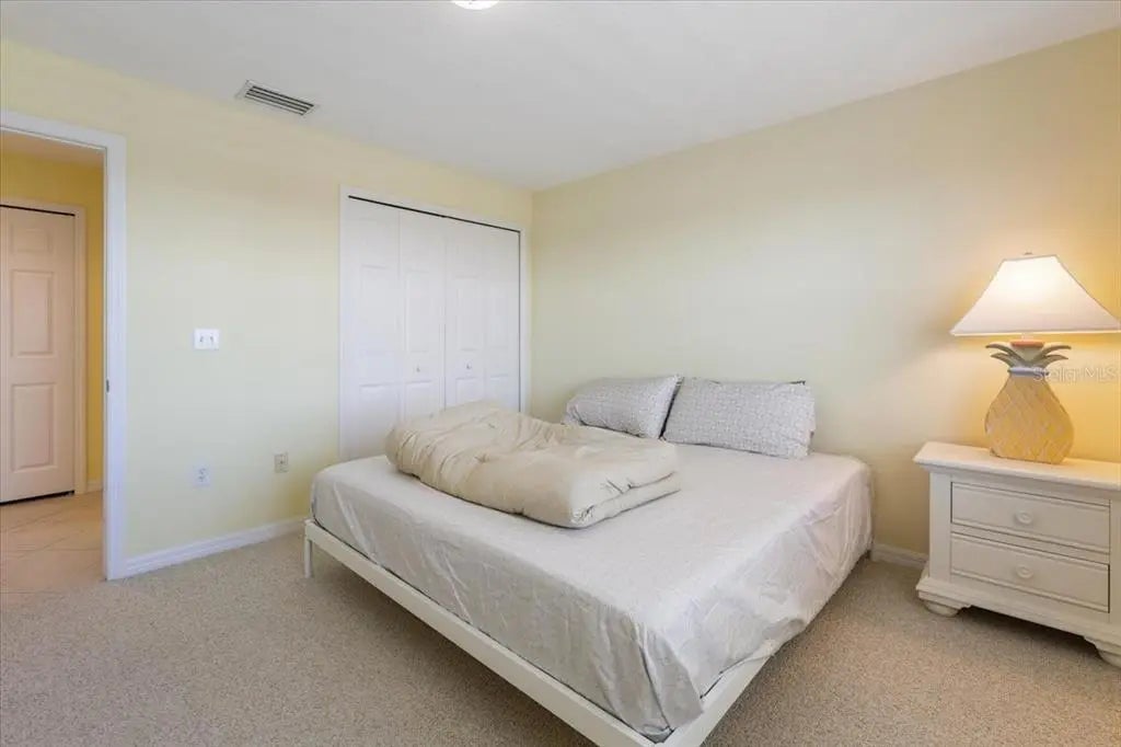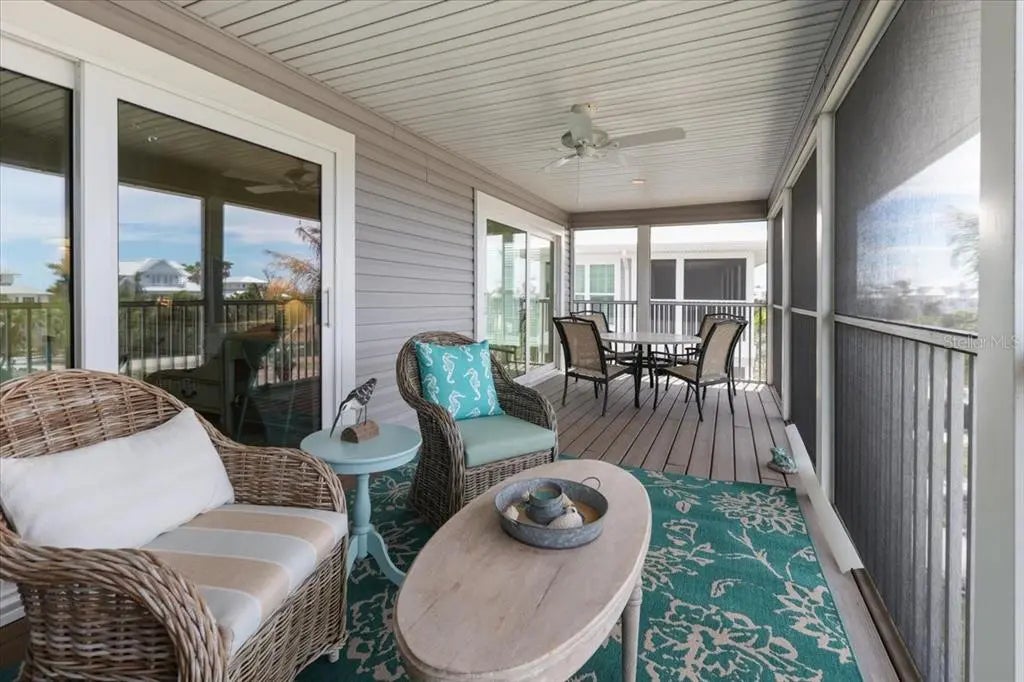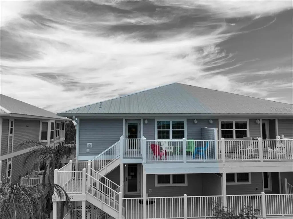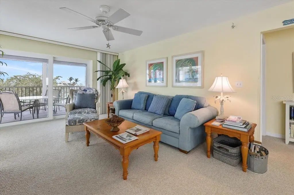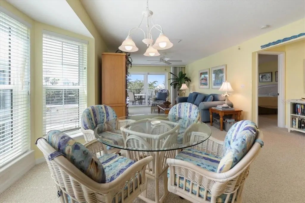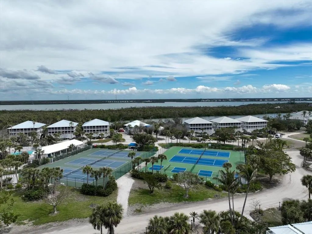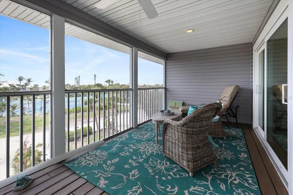 Turnkey Furnished Condo in Palm Island Resort – Coastal Serenity Awaits! Move right into this beautiful condo in the stunning Palm Island Resort. Featuring an open kitchen with elevated ceilings, Corian countertops, and additional bar cabinetry, this home seamlessly blends elegance with functionality. Enjoy private beach access just a short walk away, leading to the breathtaking Gulf of Mexico. The clubhouse, gym, heated swimming pool, spa, and tennis/pickleball courts are all within easy walking distance, ensuring effortless resort living. Take in stunning screened-in views from the rear balcony, while the front balcony overlooks Rum Bay and the Intracoastal Waterway. Relax on your porch as you watch manatees, dolphins, and an active Osprey nest in their natural habitat. This rare condo includes a garage—a coveted feature—housing a golf cart, paddleboards, and all your beach gear, providing unmatched convenience. Community boat docks are located just behind the condos on Rum Bay, perfect for boating enthusiasts. Resort amenities include private beach access, boat docks, a heated pool/spa, tennis courts, a fitness center, a clubhouse, playgrounds, a restaurant & bar, and 24-hour security. Additional services like bell service, mail delivery, and rentals for golf carts, bicycles, and water sports ensure a seamless island lifestyle. Escape the ordinary and embrace the ultimate in coastal living—where the beach meets the bay, and tranquility meets luxury.