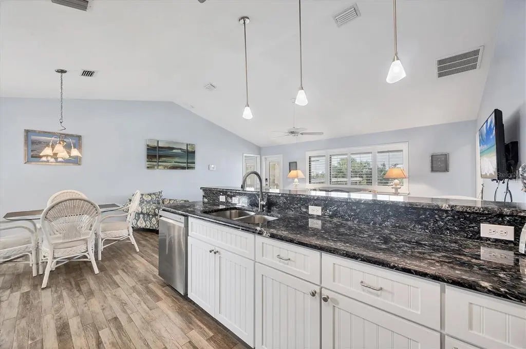 Welcome to Don Pedro/Palm Island! This exclusive key west style Florida home offers tasteful and updated interior design as well as expansive outdoor entertainment area. The lot is just shy of one half acre. This 2 bedroom, 2 bath home has wood like tile flooring, windows with interior plantation shutters throughout, granite countertops throughout, stainless steel appliances, high coffered ceilings, impact glass and much more. Air conditioned Bonus Room with 1/2 bath. Outdoor living space includes a large pool with swim-up bar offering six in pool bar seating area, a covered 10 x 16 foot outdoor grill area, a 12 x 36 foot lounging area covered by metal roofing, louvered walls, composite decking. Additional exterior amenities include outdoor shower, air conditioned bonus room with pool bath, a 17 x 13 foot garage, and a 25 x 36 foot paved area under home. There is a shared dock located on Kettle Harbor waterway with no bridges to the Intracoastal Waterway and Gulf of Mexico. This property offers the best that Florida has to offer and is a MUST SEE.