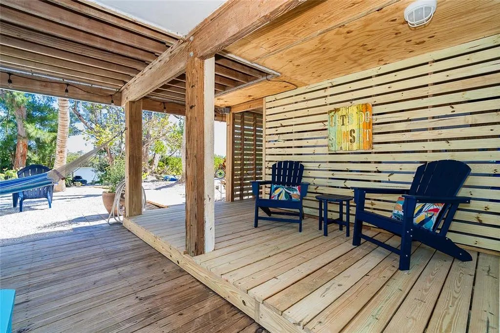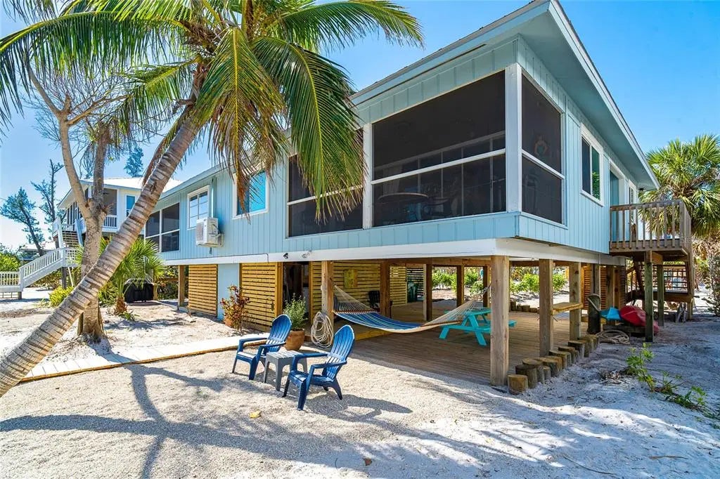 Perfect island beach get away!!!! Totally remodeled/updated 2 bedroom 1 and 1/2 bath on the north side of a two unit building across the sand road from the beach and Gulf. Recent updates are as follows: replaced entire electric service-meter can, new wiring and breaker panel which was moved upstairs, replaced a/c system and moved upstairs, new refrigerator and garbage disposal, rebuilt the lower deck area, added crab trap to storage area and laundry, new washer and dryer, graded driveway; added shell/rock and painted exterior. Roof replaced in 2023 and water heater in 2022. Being sold furnished. Rental history provided upon request. Amenities in Colony Don Pedro include community pool, tennis and dockage. These are in the process of being repaired from the hurricanes, however the community dock behind this unit is functional. Don Pedro-Knight-Palm Island is a bridgeless, barrier island situated between Ft. Myers/Naples to the south and Sarasota/Tampa to the north. Accessible only via private boar or a 4 minute car passenger ferry ride. Buy your piece of island paradise and enjoy sunsets over the Gulf, searching for shells and shark's teeth on the beach, boating, kayaking, paddleboarding, fishing and just breathing in the salt air.