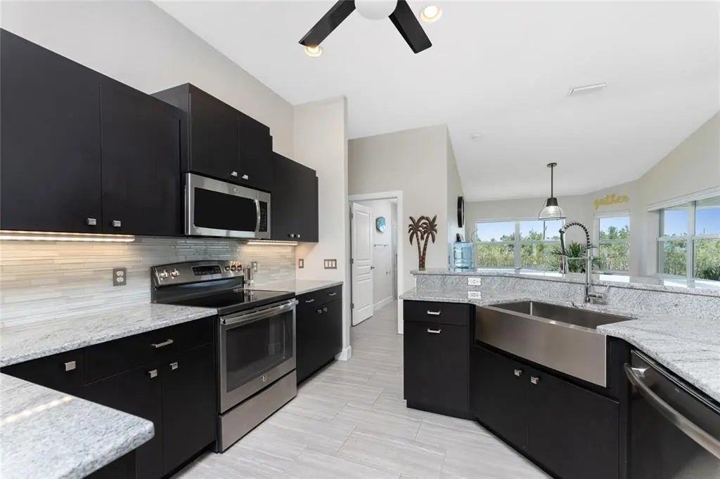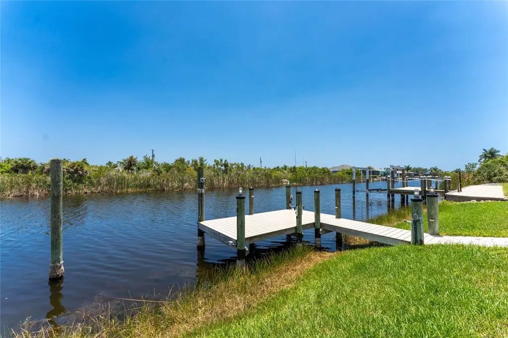 NEW PRICE ON THIS WELL APPOINTED HOME!!! Welcome To Your Private Waterfront Sanctuary Located In The Desirable Boating Community of South Gulf Cove. As Soon As You Step Inside, You Are Greeted By The Perfect Blend of Comfort And Tranquility In This Well Appointed 3-Bedroom 2-Bath Home Featuring Beautiful Plank Tile Flooring, Stainless Steel Appliances, Insulated Double Pane Windows, Large Lanai With Panoramic Screening Leading Outside To Your Paver Patio Complete With Fire Pit And Walkway To Your Private Dock. The Composite Dock, Complete With Water, Electric And Lights Is Wired And Ready For Your New Boat Lift. With Just One Bridge And A Short Ride To The Interceptor Lagoon, This Location Gives You Quicker Access To The Lock And Out To Charlotte Harbor And The Gulf of America (Formerly Gulf of Mexico). Make Your Appointment Today For Your Private Showing. You Will NOT Be Disappointed!