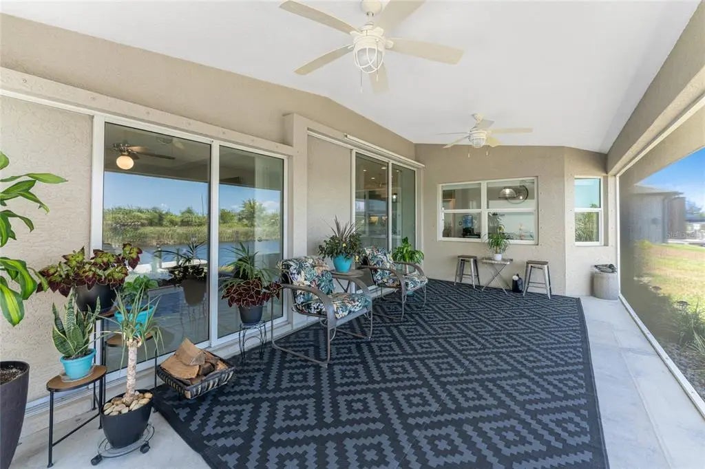 - Exterior FeaturesHurricane Shutters, Irrigation System, Lighting, Rain Gutters, Sliding Doors