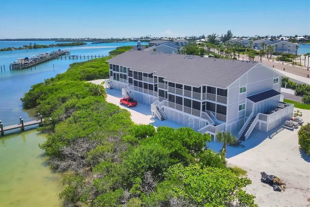 Amazing waterfront retreat with both Gulf & Bay views! Located in Boca Grande North- Unit A2 is nestled on Gasparilla Island near the picturesque Village of Boca Grande, Florida. This 2-bedroom, 2-bathroom bayfront seaside condo is turnkey furnished and offers a perfect blend of luxury, comfort, and breathtaking views, making it an ideal haven for those seeking the coastal lifestyle. One of the standout features of this condominium is the balconies - allowing gulf views & the large screened lanai overlooking the Gasparilla Sound, where you can see the boats, kayaks, dolphins, and more cruising by, but still enjoy your privacy. You can savor your morning coffee while watching the sunrise over the water or unwind in the evening with a glass of wine as the sun sets. The panoramic views are simply unparalleled. Have a boat? Private Boat Slips can be rented separately or are often available for private sale. Have furry friends? You will enjoy this pet friendly community. Owners can have two dogs and there are great walking paths! This beautifully appointed turnkey furnished 1,248-square-foot home greets you with an open and airy floor plan that seamlessly connects the living, dining, and kitchen areas. The spacious living room floods the space with natural light from impact glass windows & doors and provides nearly unobstructed views of the surrounding waterways of the Gulf of America & Gasparilla Sound. This allows you both sunrise & sunset from either of the porch areas. Imagine relaxing here after a day on the water, soaking in the serene ambiance. Coastal elegance abounds in the finishes, beautiful artwork and accents and yet allows for a comfortable entertaining space. The modern kitchen boasts high-end appliances, ample cabinetry, and a convenient breakfast bar for casual dining. Whether you're preparing a gourmet meal or a quick snack, this kitchen caters to all your culinary needs. The dining area has amazing views and can seat up to six. The master suite is a true sanctuary, complete with a generous closet and an en-suite bathroom featuring elegant fixtures and finishes. The impact-resistant glass sliders allow you to enjoy wide-open views of the water as you relax in bed. The second bedroom is equally inviting with impact glass sliders leading to the porch allowing direct views to the Gulf. Residents of this gated community have access to a range of amenities, including a sparkling heated swimming pool & spa, well-maintained grounds, tennis/pickleball courts, a clubhouse, a gulf-front area, golf cart charging and convenient access to boating facilities. Additionally, the property is located just a short distance from the charming shops, restaurants, and pristine beaches of Boca Grande, ensuring you're never far from leisure and entertainment options. Golf carts are welcome and have a nearby path to lead you to the Village. Let's not forget the world-class pristine beaches, boating and fishing. This unit has a wonderful rental history - Whether you're seeking a full-time residence, a vacation getaway, or an investment property this unit offers an exceptional opportunity to experience the best of Florida's Gulf Coast living. Current rental income and is ready for rentals or your home away from home. Don't miss your chance to own a piece of paradise in this sought-after location. Schedule your private showing today and prepare to be captivated by all this remarkable property has to offer.