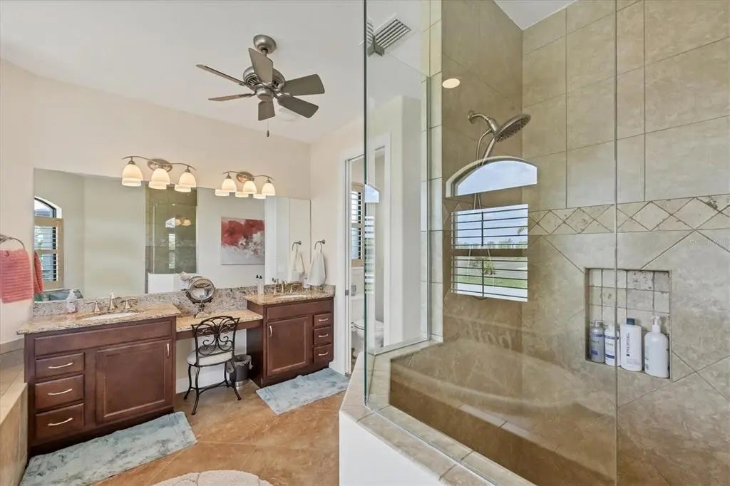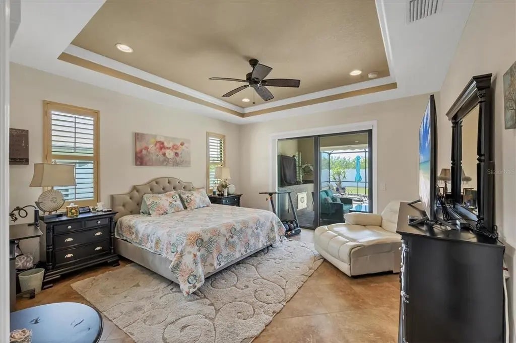 - Interior FeaturesCeiling Fan(s), Crown Molding, Eating Space In Kitchen, High Ceilings, Kitchen/Family Room Combo, Open Floorplan, Primary Bedroom Main Floor, Split Bedroom, Stone Counters, Thermostat, Tray Ceiling(s), Walk-In Closet(s), Window Treatments