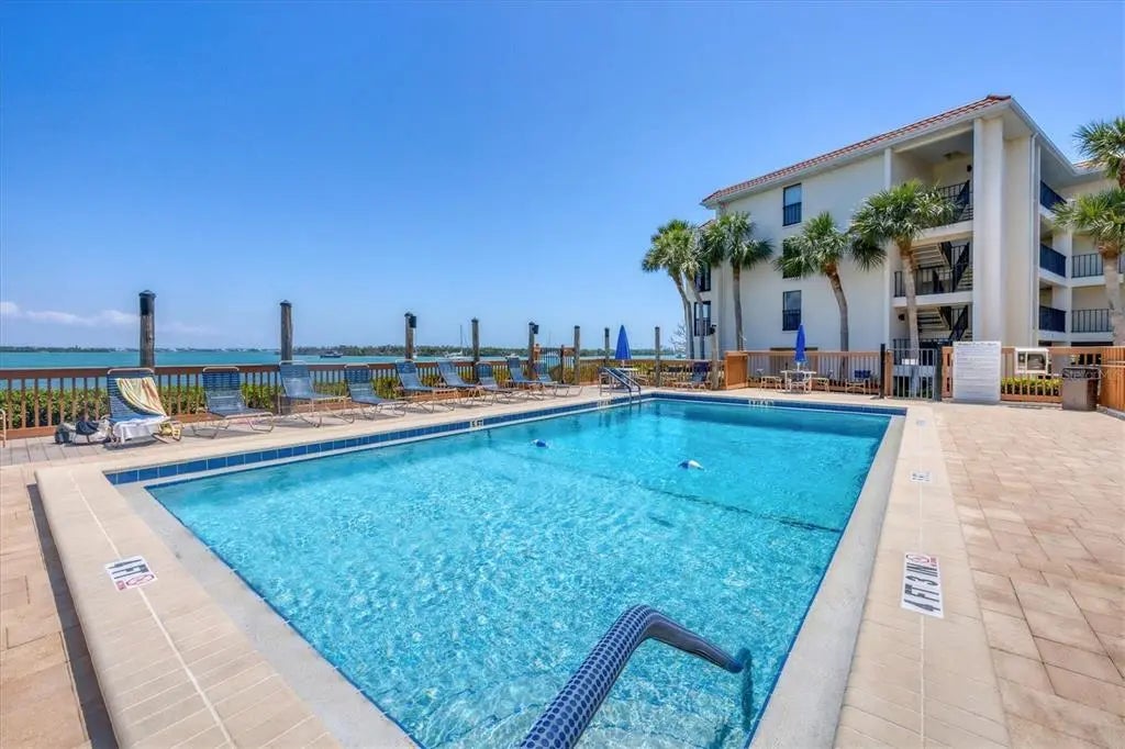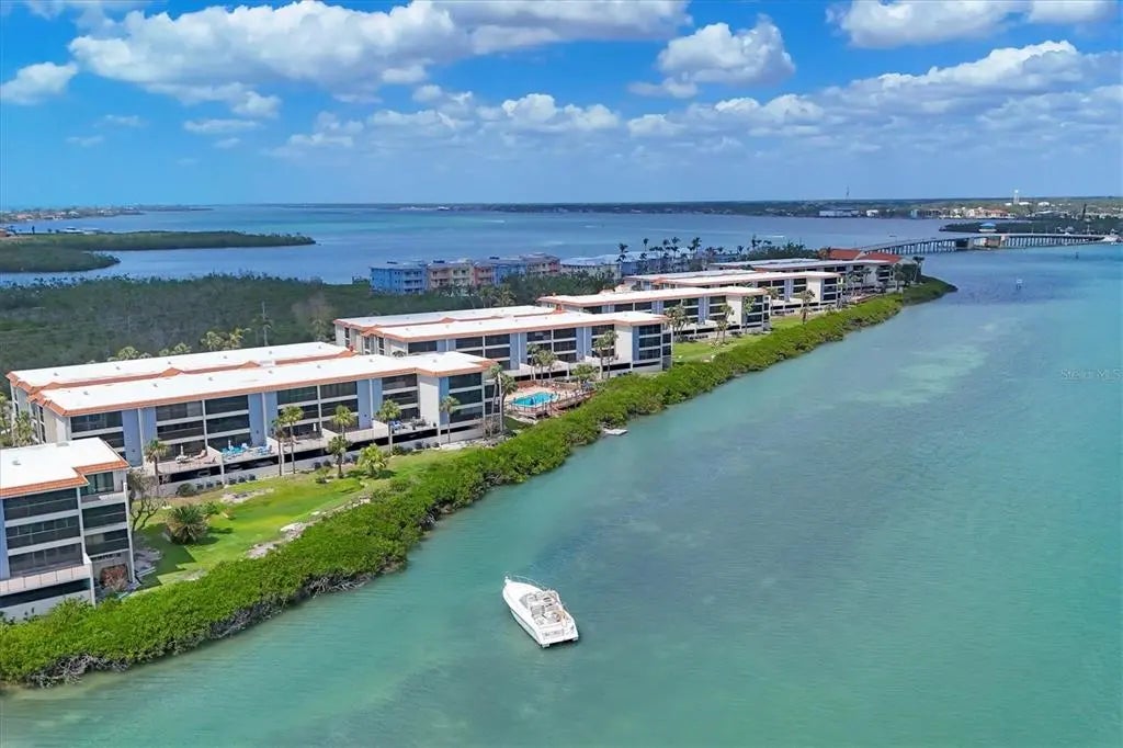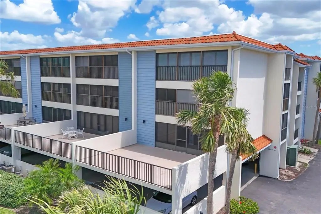 This corner unit at Sandpiper Key has a blend of indoor and outdoor space for your enjoyment. Inside you will find a nice split layout with two bedrooms and two baths with an open common area including the living room and kitchen. To one side there is a smaller balcony that is big enough (4x10) for a table and chairs that also offers a great deal of natural light through the double sliding glass door. At the back of the property there is a glassed in patio with tile floor that leads to the large (19x26) outdoor balcony ideal for enjoying the sun. Sandpiper Key is a waterfront community with boating amenities available separately, two heated community pools, and a campus of several acres you can enjoy. This location is about a half mile to Englewood Beach and the many restaurants, parks, and other amenities that are the highlight of the Englewood area.