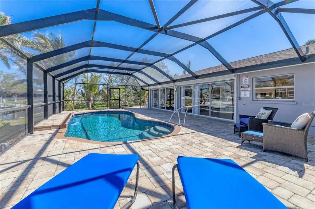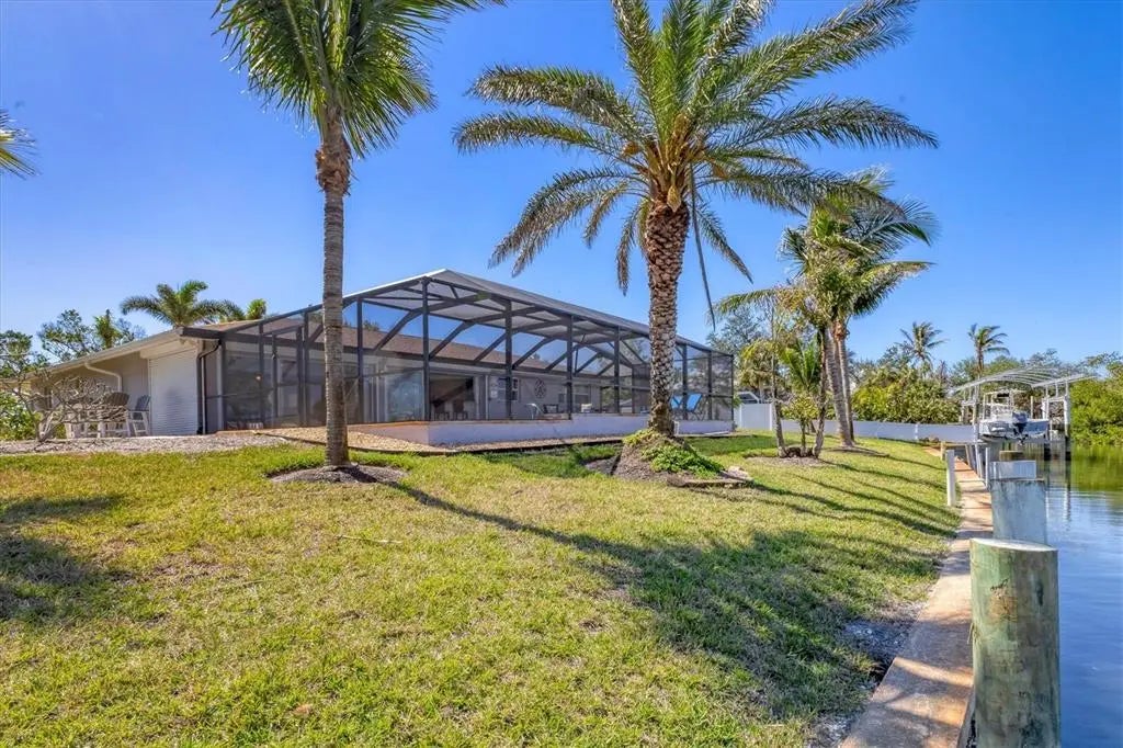 Welcome to this incredible boater's paradise! This stunning property boasts over 172 feet of deep-water canal frontage, offering direct access with no bridges to the Intracoastal Waterway and the Gulf of Mexico. Located in the coveted Vanderbilt-developed neighborhood of Cape Haze, this home sits on a spacious .53-acre lot, just 4 lots in from the ICW. Perfectly designed for boat enthusiasts, the property features a concrete seawall and a large Trex boat dock, and out pilings, making it ideal for vessels of all sizes. Cape Haze is renowned for its proximity to world-class fishing and endless boating destinations, including the historic Boca Grande, Sanibel Island, Cabbage Key, Punta Gorda's Fisherman's Village, and Manasota Key. Wildlife lovers will delight in the secluded waterfront location, where birds and fish abound, creating a peaceful, natural setting. The exterior of the home features a circular driveway, a side-entry garage, and mature landscaping. A charming courtyard patio at the front entry offers a welcoming touch. Upon entering, you are greeted by an expansive open floor plan with three sets of sliding doors that offer stunning views of the pool, paver lanai, and panoramic wide canal views.The outdoor patio area is perfect for relaxing or entertaining, featuring a large heated, saltwater pool (built in 2018) and plenty of room for lounging in a chaise. The spacious yard is ideal for pets or outdoor activities. Inside, the updated eat-in kitchen opens into a large dining and living area, with views of the water from the sink. The kitchen boasts stone countertops, stainless steel appliances, and a walk-in pantry. The home offers two large living rooms, both with picturesque views of the surrounding paradise. The primary suite is a serene retreat, featuring a walk-in closet and dual vanities in the bath. The home is thoughtfully designed with tile flooring throughout, a recently updated bath, mature landscaping, a newer irrigation pump, a newer pool pump, and a new roof (2023). Recent updates also include replaced plumbing waste pipes, stainless steel appliances, and newer A/C systems. The property is perfect for full or part time residents and also for those looking income producing property. The home has excellent rental history and existing leases in place. Conveniently located near essential shopping, numerous waterfront restaurants, three full-service marinas, and miles of serene sandy beaches on Boca Grande and Palm Island. You'll also find private and public golf courses nearby, making this an ideal location for both relaxation and adventure. This property is truly a one-of-a-kind opportunity for those seeking an unparalleled boater's lifestyle in a pristine, tropical setting.