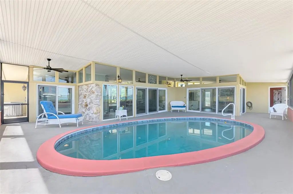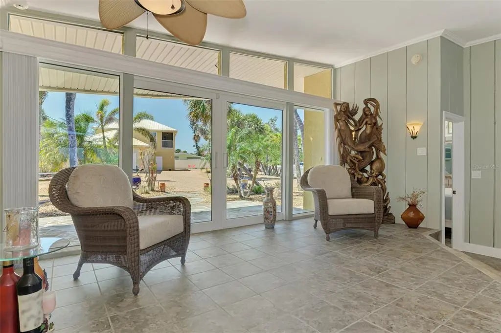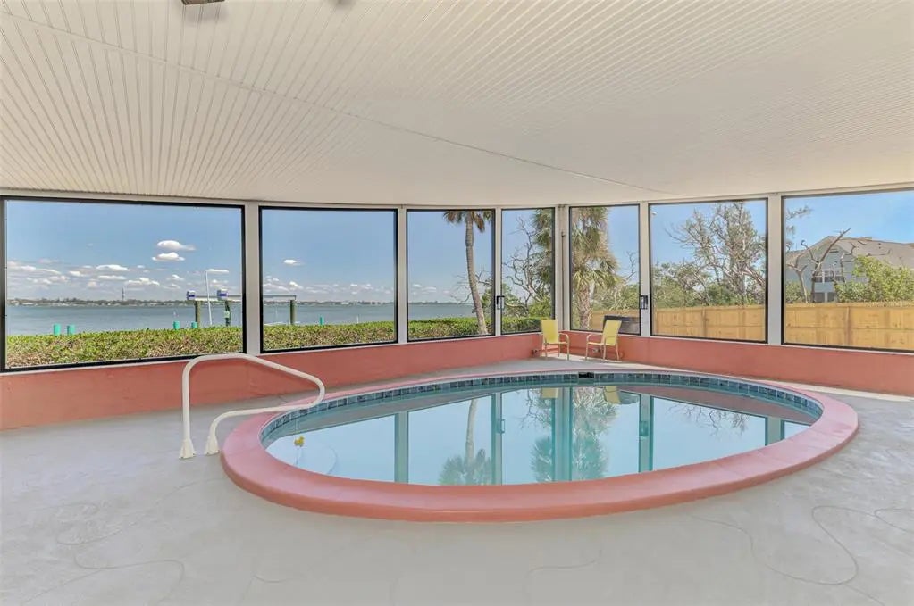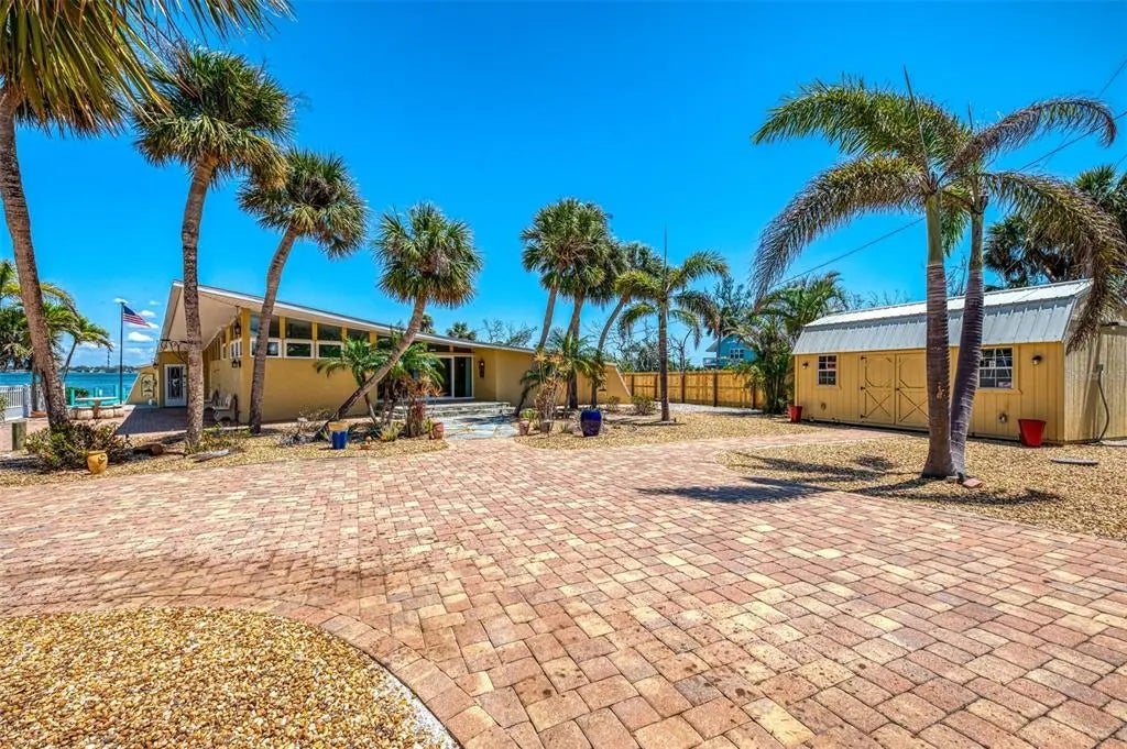 This is more than just a home—it’s a rare opportunity to own a unique, waterfront lifestyle on Manasota Key, where architectural elegance meets the tranquility of Lemon Bay. Discover a rare blend of iconic design and coastal elegance in this stunning Frank Lloyd Wright-inspired home, perfectly positioned on nearly half an acre along the tranquil shores of Lemon Bay. Located on Manasota Key, this FURNISHED, 2-bedroom, 2-bathroom residence has been thoughtfully remodeled after recent hurricanes, seamlessly merging mid-century architectural charm with today’s modern comforts. With the addition of a spacious 720-square-foot studio apartment above the garage, this property offers the flexibility to function as a private family compound, ideal for multigenerational living or hosting guests in style. Enjoy peace of mind with impact-rated windows and sliders throughout the home, and savor the chef’s kitchen featuring solid wood cabinetry, granite countertops, and all-new stainless steel appliances. Step outside to your expansive enclosed lanai, the ultimate outdoor oasis with a heated saltwater pool—perfect for entertaining, relaxing, or soaking in the serene waterfront views. For boating enthusiasts, the property includes a deeded 16,000- pound boat lift (added in 2018) and dock. There is also access to a shared community dock (first come, first served), used by only four owners—ideal for additional watercraft. Deeded beach access on the property means your toes can be in the sand in just minutes. The home also features a sprawling 5-car garage (fits up to 7 vehicles) with ample room for storage or a workshop, plus a dedicated area for RV parking. Above the garage is a fully furnished studio apartment, newly built in 2023, with luxury vinyl plank flooring, granite countertops, and stainless steel appliances. Thoughtfully designed, this space is also plumbed for a future elevator, providing long-term flexibility and accessibility.—making it perfect for guests, rental income, or multigenerational living. Additional features include a 10x20-foot storage shed, a sprinkler system (with some zones needing repair), and lush landscaping that enhances the natural beauty of this unique property.