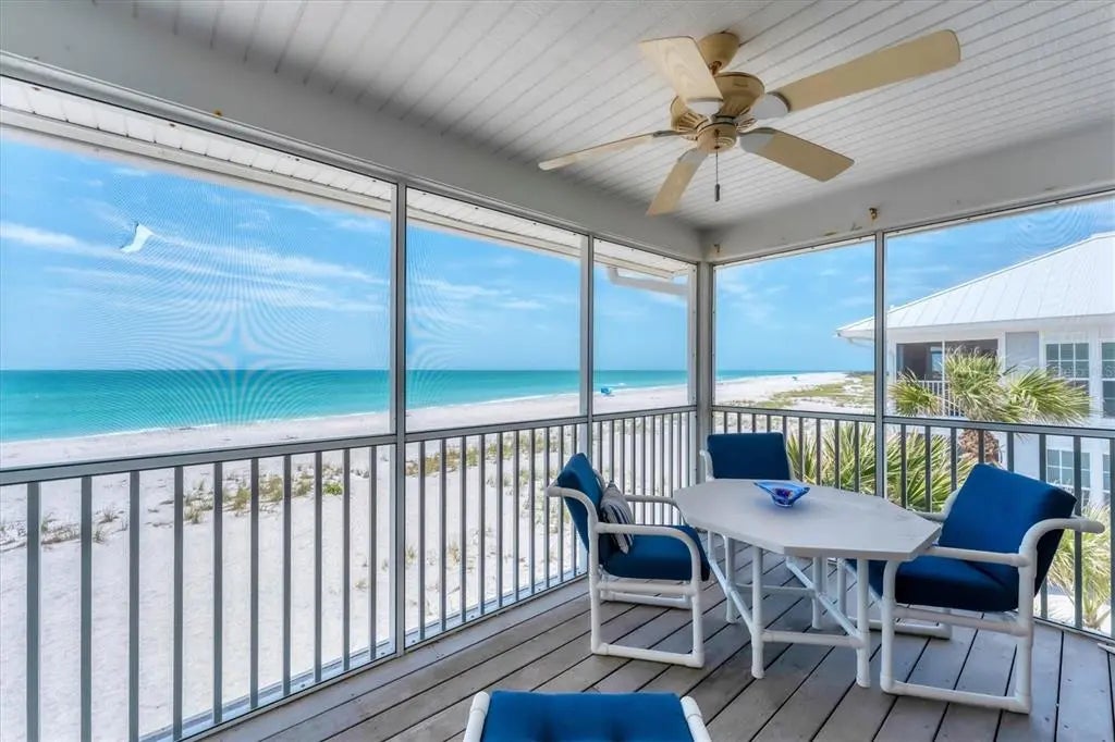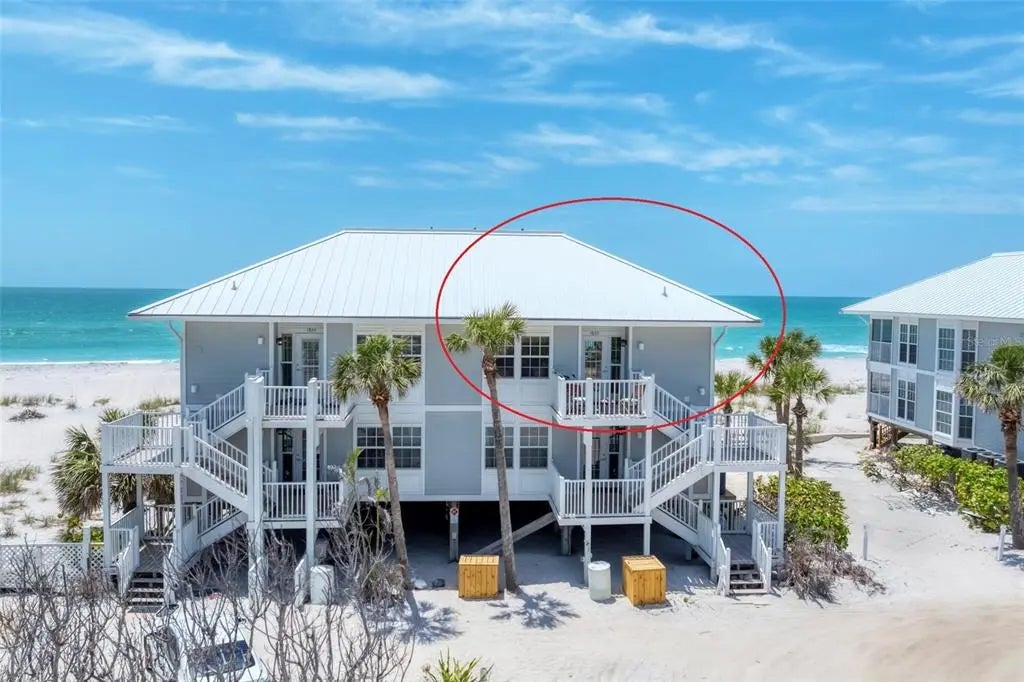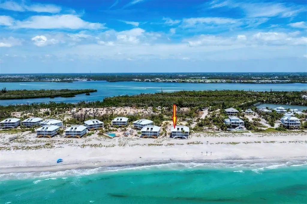 Live the ISLAND LIFE and enjoy UNOBSTRUCTED, PANORAMIC VIEWS of the glistening BLUE WATER of the GULF from YOUR HOME. Situated on the barrier island of Palm / Knight Island, at the southernmost end of the Palm Island Resort community, the location of this 2-level, 3 bedroom / 3 full bathroom over 2100 sf (under AC) condominium truly cannot be beat. This island home offers amazing space and comfort for you and the entire family with space to roam both on the main and second level. Enjoy the mesmerizing view and sound of the surf from either of the TWO waterfront PATIOS. The main level of this home features the kitchen, dining, main living, primary suite, second bedroom, second bath and laundry room. The second level hosts the family room, office/bonus room, bedroom (that fits two double beds!) and yet another full bathroom! The open-air patio on the second floor offers the ultimate in salt life serenity. Relax while you are protected by impact-resistant windows & doors and a metal roof. This amazing home is truly unique, in a truly unique location. The island is accessible only by car ferry, personal boat or water taxi, assuring you will always have a seat on the beach. In fact, the Resort provides the chaise lounge! Meander the miles of white sandy beach, toss a line in for tarpon or snook, or enjoy floating the waves. Order dinner to go from Rum Bay Restaurant and watch the sunset across the water. You might even catch a loggerhead turtle lay her eggs or watch the babies emerge into the world. Truly breathtaking. Palm Island Resort offers its residents the finest amenities, including 24-hour security and gate guards, private beach access with chaise lounge chairs, heated pool/spas, tennis courts, boat docks, fitness center, rentals (golf carts, bikes, kayaks, paddle boards, etc.), clubhouse, playground, and the only restaurant on the island. This is a golf cart community, so leave your vehicle and worries in the private parking lot and take your golf cart, or let the bellman escort you, to your private piece of paradise. Come, treat yourself to ISLAND LIFE.