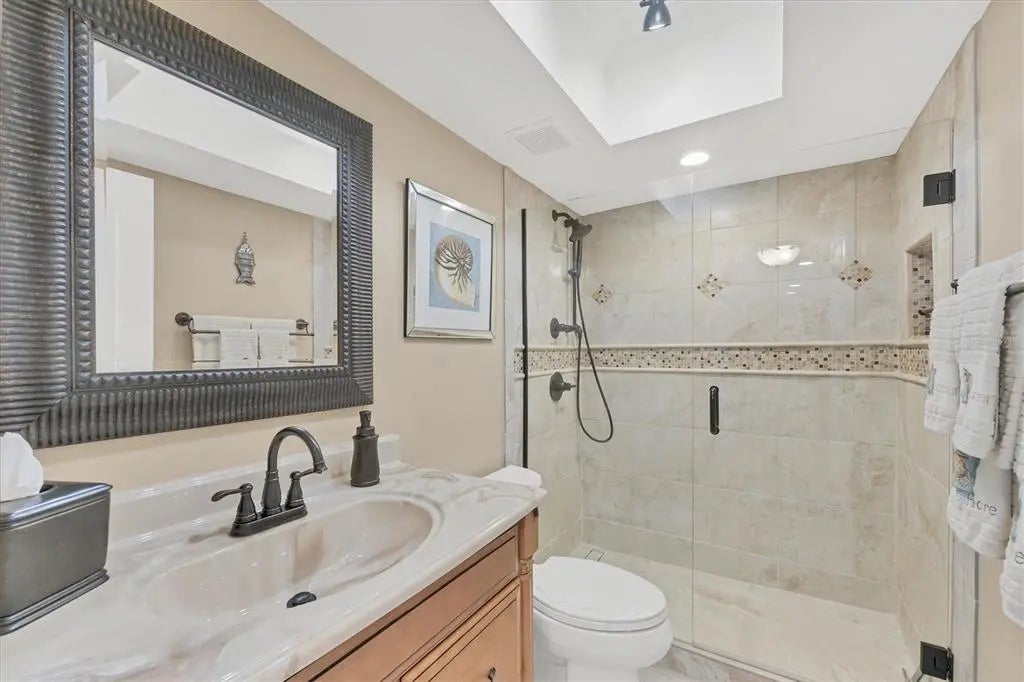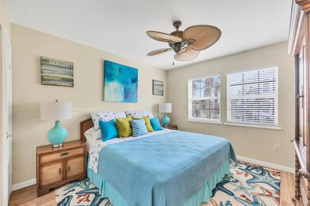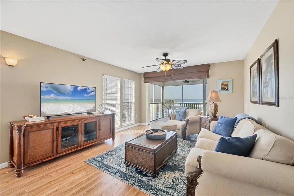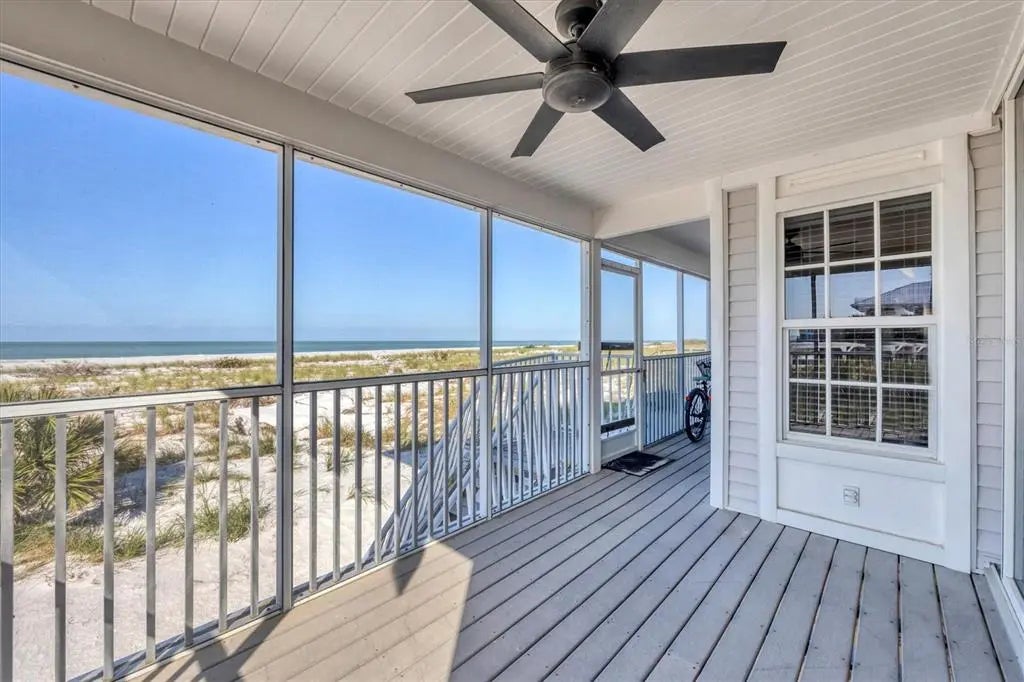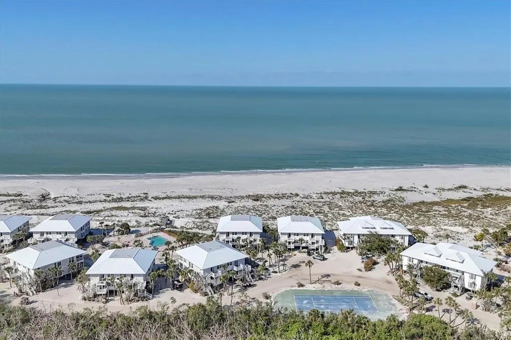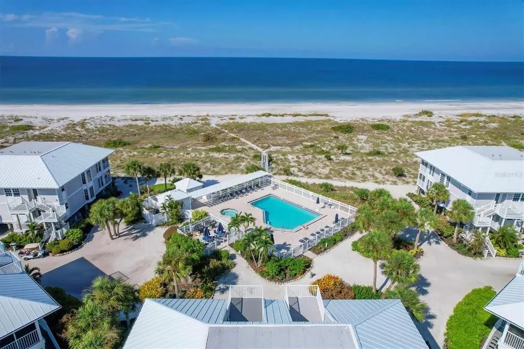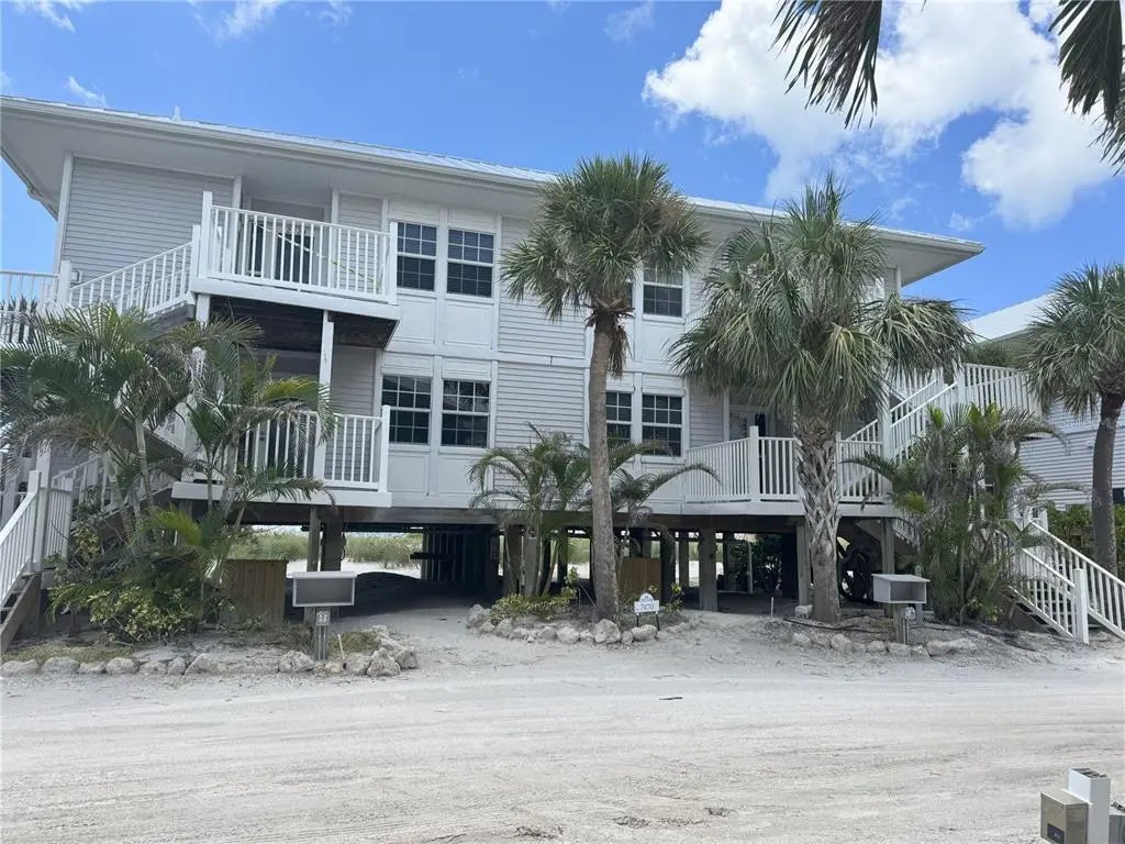 Come see this beautifully appointed and well maintained Gulf front, 2 bedroom, 2 full bathroom condo in the sought after association of Palm Island Village II, located on a private island in Palm Island Resort. The 180 degree spectacular view of the Gulf and its aqua blue water and miles of beach, are just steps away. Take a 4 minute car ferry ride over and discover our definition of serenity. As you enter the parking lot, where your gas powered vehicle will stay, a bellman may deliver you and your belongings to your own piece of paradise via a golf cart, which is the preferred mode of transportation. The condo is located on the 1st floor of the stilted building. As you enter the unit, your spacious laundry room with stainless washer and dryer, granite counters and plenty of cabinet space, is to your right. Straight ahead is the nice sized kitchen with soft close cabinetry, granite counters and stainless appliances comes well equipped in this turnkey home. To the right of the kitchen is the guest area that can be cordoned off as its own private suite with a full bath and a bedroom with a king size bed. Stepping back into the living area, the breakfast bar with stools are also part of the dining area. The dining area with its bowed window, adds to the spectacular view. The open floor plan continues out onto the screened in lanai with sliders. The outdoor stairs from this deck are still in the midst of being rebuilt by the association from the hurricane. The primary suite that is off of the living area is a beautiful, peaceful oasis furnished with Tommy Bahama. The nicely renovated bathroom has a walk-in shower and dual sinks. Imagine waking up to those views! The sunsets are memorizing every night. It has wooden laminate and porcelain tile throughout. No carpeting. There are community pools, tennis courts and pickleball courts. Community docks. The only retail on the island is in the resort with its Rum Bay restaurant, Coconuts for sundries, ice cream and golf cart rentals. And a gift boutique. There are miles of beautiful beach. The intracoastal. Lots of nature to learn and explore. On the mainland you have many outstanding golf courses, restaurants, shopping, fishing, boating, and many community events. All assessments and fees are paid up to date. Come enjoy your own piece of Paradise!!