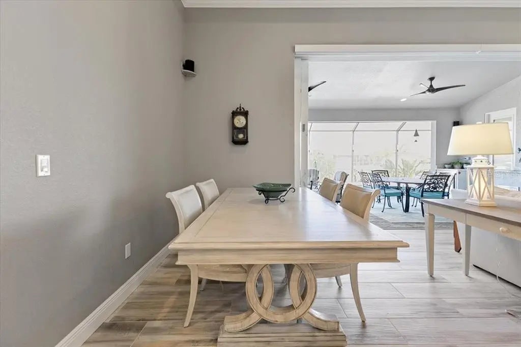 - Interior FeaturesCeiling Fan(s), Coffered Ceiling(s), Crown Molding, High Ceilings, Kitchen/Family Room Combo, Open Floorplan, Primary Bedroom Main Floor, Solid Surface Counters, Solid Wood Cabinets, Split Bedroom, Walk-In Closet(s)