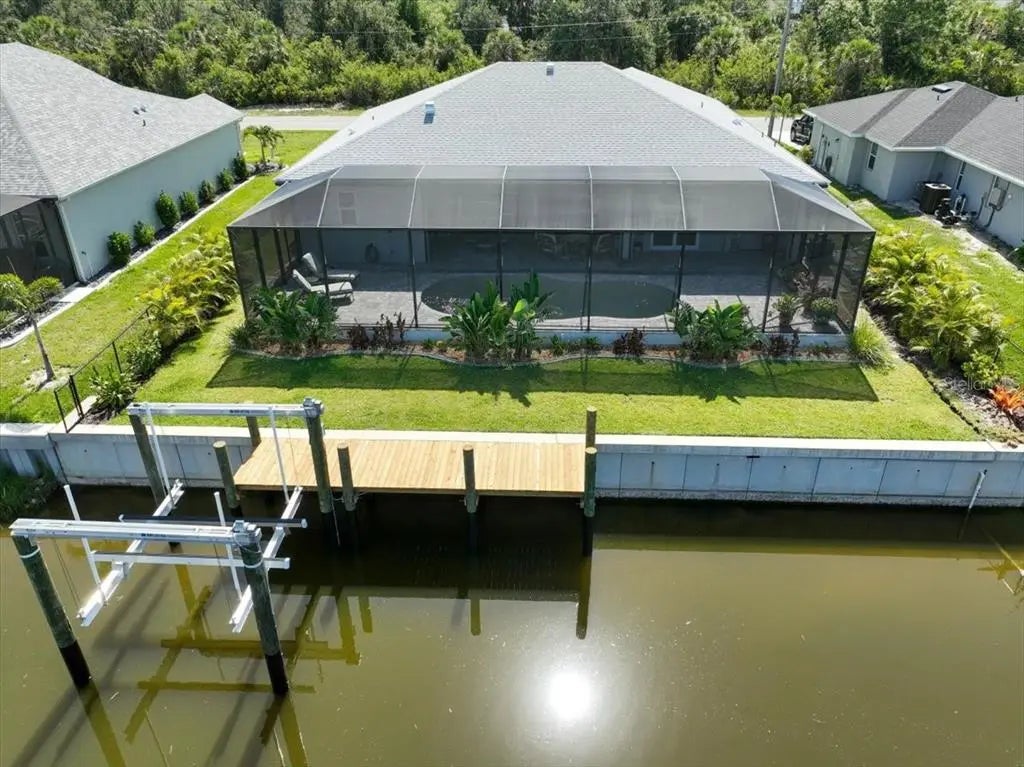 Waterfront Dream Home – Custom-Built “M Merlot” Welcome to the M Merlot, a one-of-a-kind, custom-built Florida waterfront dream home. Perfectly positioned with rear western exposure, this stunning residence offers breathtaking sunsets over the Gulf-accessible Long Branch Waterway. Every detail has been carefully curated to exceed even the highest expectations. Exterior Features Elegant paver driveway, oversized 3-car garage (25 ft deep) with epoxy flooring, Irrigation system sourced directly from the canal, Full gutter system for optimal drainage, Screened-in, heated PebbleTec® saltwater pool with outdoor shower, Concrete 10ft high seawall for long-term waterfront protection Fenced-in rear yard, brand new dock and boat lift currently being installed. Expansive lanai featuring: Brand-new summer kitchen with built-in grill, sink, refrigerator, and hood vent Mounted flat-screen TV for outdoor entertaining, Electric hurricane screens for both storm protection and shade, Screened-in front porch for additional outdoor living, Interior Highlights: Walking through the grand entry you will immediately notice the 10-ft high x 15-ft wide hurricane-rated glass door sliders (with Remote-controlled electric shades both in the living room and primary suite) with Unobstructed panoramic views of the pool and waterway, all windows with wooden blinds, a Chef’s Kitchen with Double ovens GE Profile stainless steel appliances (5 burner induction cooktop) Two-tone custom cabinetry Exotic waterfall granite countertops Spacious & Elegant Living Durable porcelain tile flooring throughout 12-ft ceilings in main living areas with double step-ups to 13-ft tray ceilings in the great room, 9.4-ft ceilings in all bedrooms for added comfort and space Spa-Inspired Bathrooms Master bathroom includes: Dual shower systems with rain heads (all bath room have elegant rain head showers) and Upscale finishes for a spa-like experience Thoughtful Storage & Utility Custom wood shelving in all closets Spacious laundry room with matching custom wood shelving LG washer and dryer, Handpicked luxury light fixtures and paddle fans throughout. Spray foam insulation in the attic to improve energy efficiency This home is more than just a place to live — it's a lifestyle. Whether you're relaxing in your saltwater pool, entertaining on the lanai, or heading out on the boat from your private dock, the M Merlot is the perfect coastal retreat.