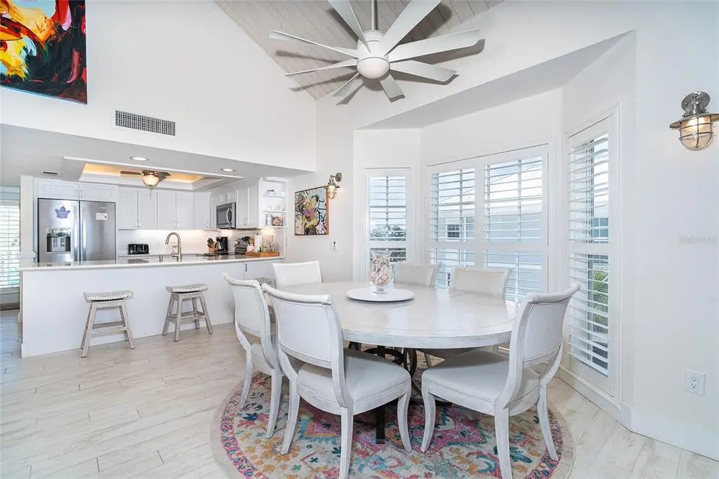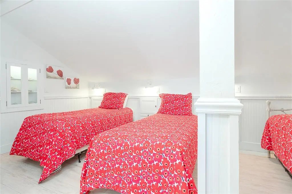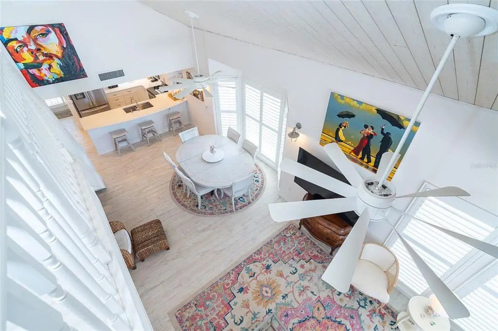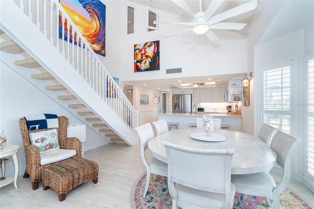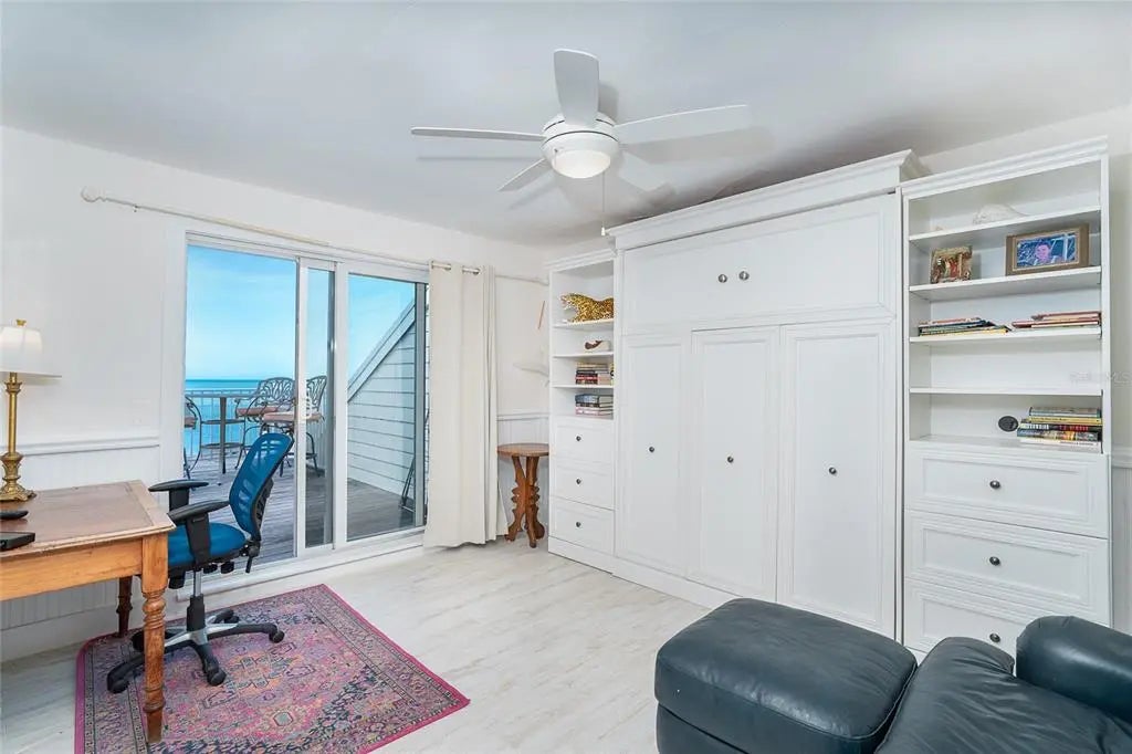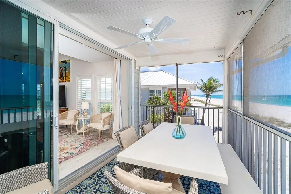 Your dream island villa awaits! One of the best views available on Palm Island Resort. Find beauty within this villa to match the beautiful beaches and sunset of Soutwest Florida. The island is accessible only by car ferry or boat and located between Ft. Myers and Sarasota. Enjoy the sound of the waves from the upper deck with panoramic views or the lower screened in porch with panoramic views too! First notice this villa has light wood look tile throughout that is bright and easy to clean. The kitchen is open to the dining and living areas and equipped with stainless steel appliances, extra light features, hard surface counter tops, and a counter height sit at bar. The primary bedroom has 3/4 length windows to view the beach and an access door to the porch with neutral tiled walk-in shower. All the details are covered! The loft area features a large bonus room currently furnished with 2 twins and convertible day bed. The front loft space set up for working with a view or sleeping extra guests in the murphy bed. Ample finished storage closed on the upper floor. Walk out the sliding door to the upper balcony for a bird's eye view of the Gulf's spectacular nightly sunsets. Grab your beach towel and make your island dream come true today!