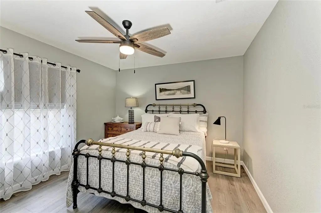 - Interior FeaturesCathedral Ceiling(s), Ceiling Fan(s), High Ceilings, Open Floorplan, Split Bedroom, Stone Counters, Thermostat, Window Treatments