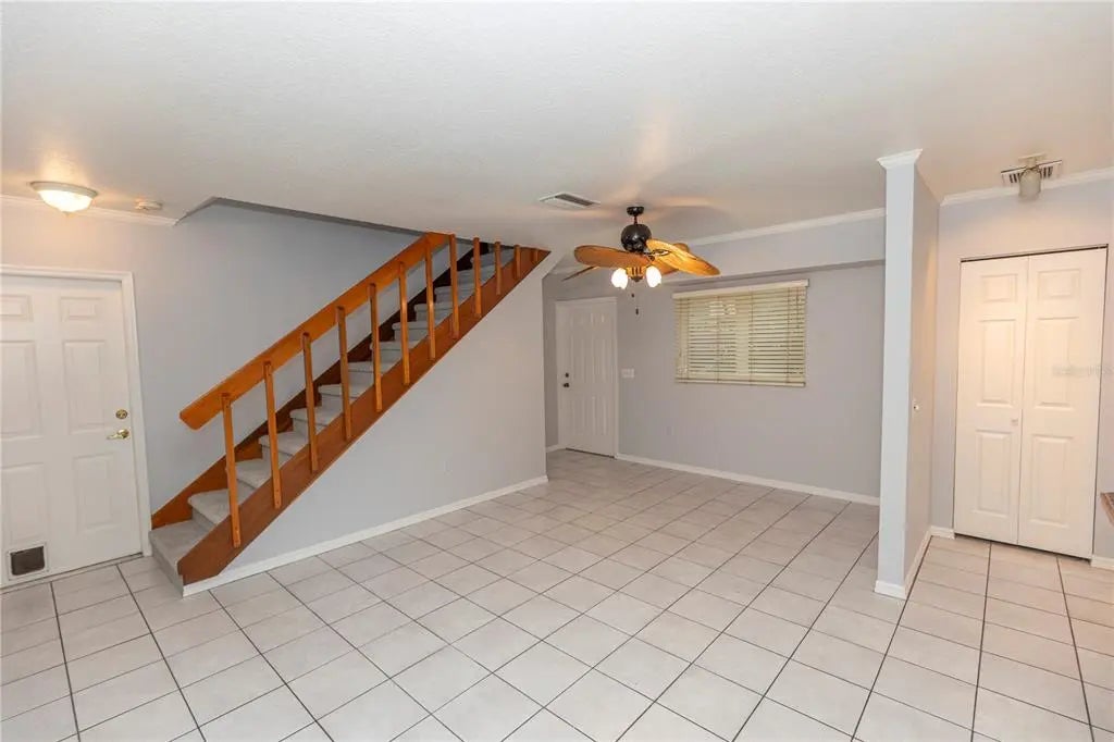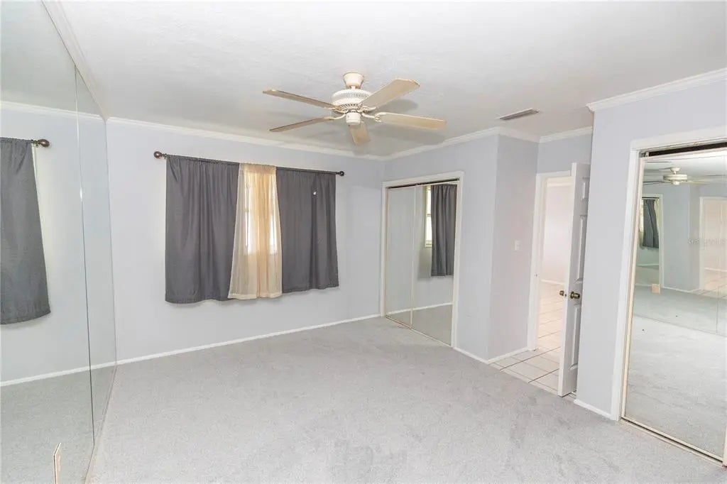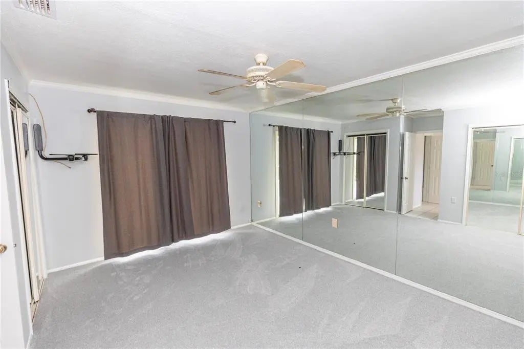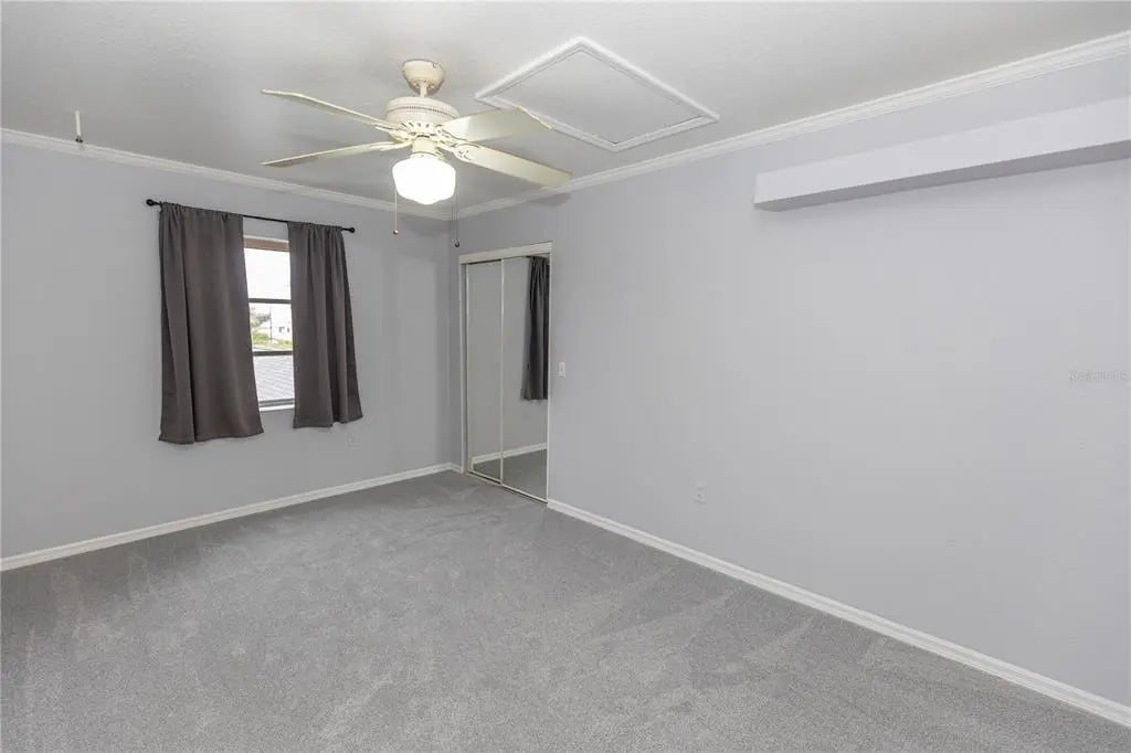 - Interior FeaturesCeiling Fan(s), Crown Molding, Kitchen/Family Room Combo, Primary Bedroom Main Floor, Thermostat, Walk-In Closet(s), Window Treatments