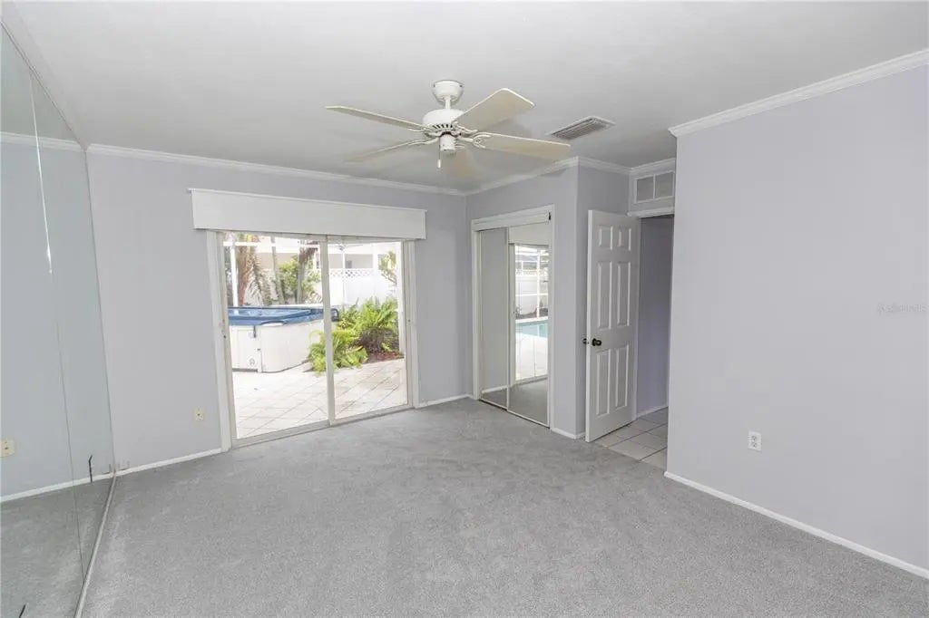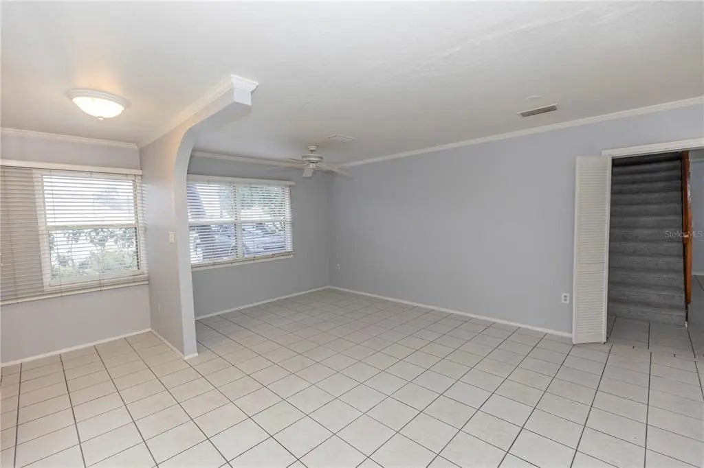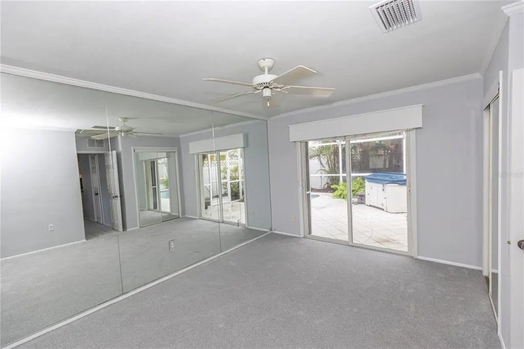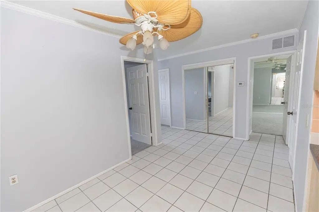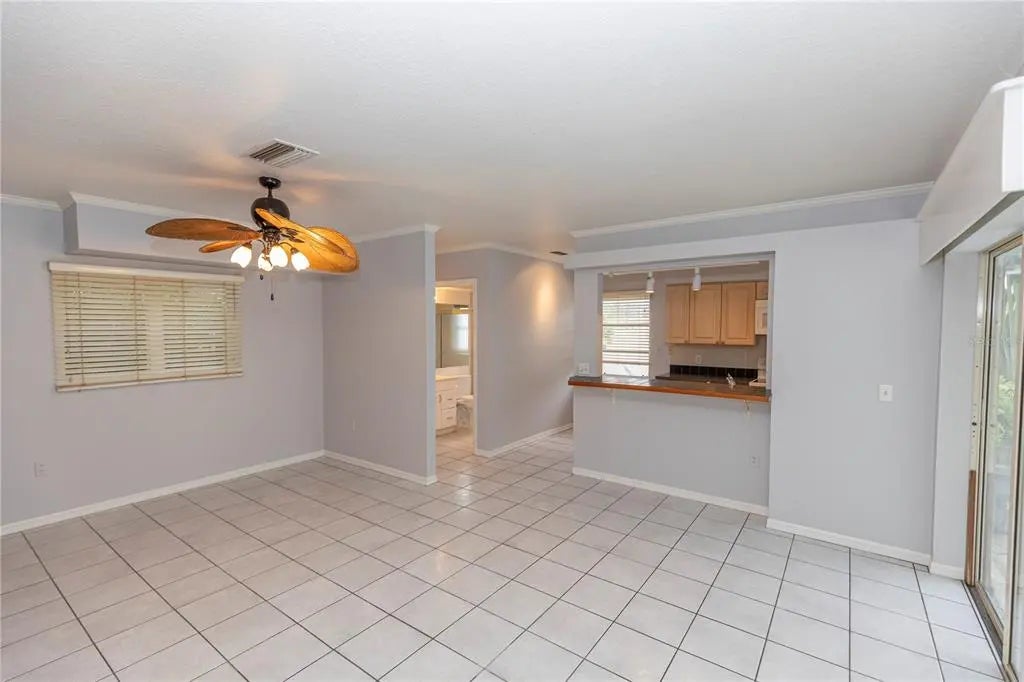 - Interior FeaturesCeiling Fan(s), Crown Molding, Kitchen/Family Room Combo, Primary Bedroom Main Floor, Thermostat, Walk-In Closet(s), Window Treatments