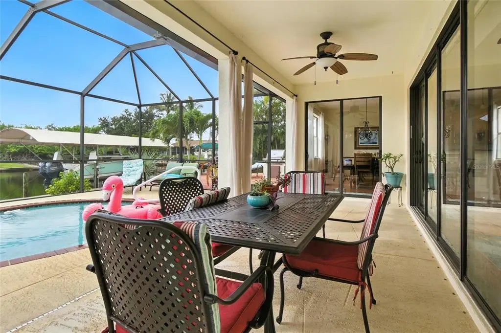 Welcome to your waterfront escape in highly desirable South Gulf Cove—where boating, sunsets, and Florida living come together. This beautifully maintained 3-bedroom, 2-bath home offers 120 feet of concrete seawall, a private dock with water and electric, and a 13,000 lb covered boat lift with access to over 55 miles of canals leading to Charlotte Harbor and the Gulf. Inside, enjoy an open split-bedroom floor plan, high ceilings, and a spacious screened lanai overlooking your heated pool—perfect for entertaining. Recent updates include a 2023 roof and modern appliances. Offered furnished for a turnkey experience, with optional boat package available—start enjoying the Florida lifestyle from day one. Located just minutes to Boca Grande, beaches, golf, and marinas. Priced to move—schedule your private showing today.