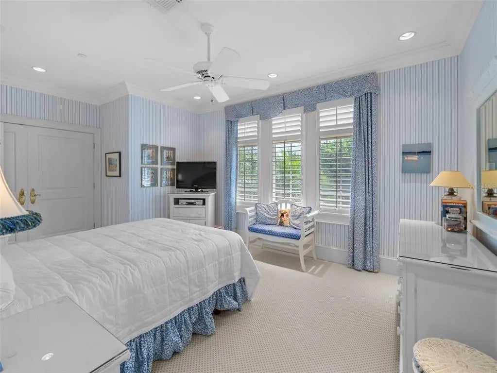 - Interior FeaturesBuilt-in Features, Ceiling Fan(s), Central Vacuum, Chair Rail, Crown Molding, Elevator, Open Floorplan, Solid Surface Counters, Split Bedroom, Walk-In Closet(s), Window Treatments