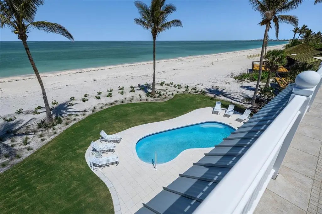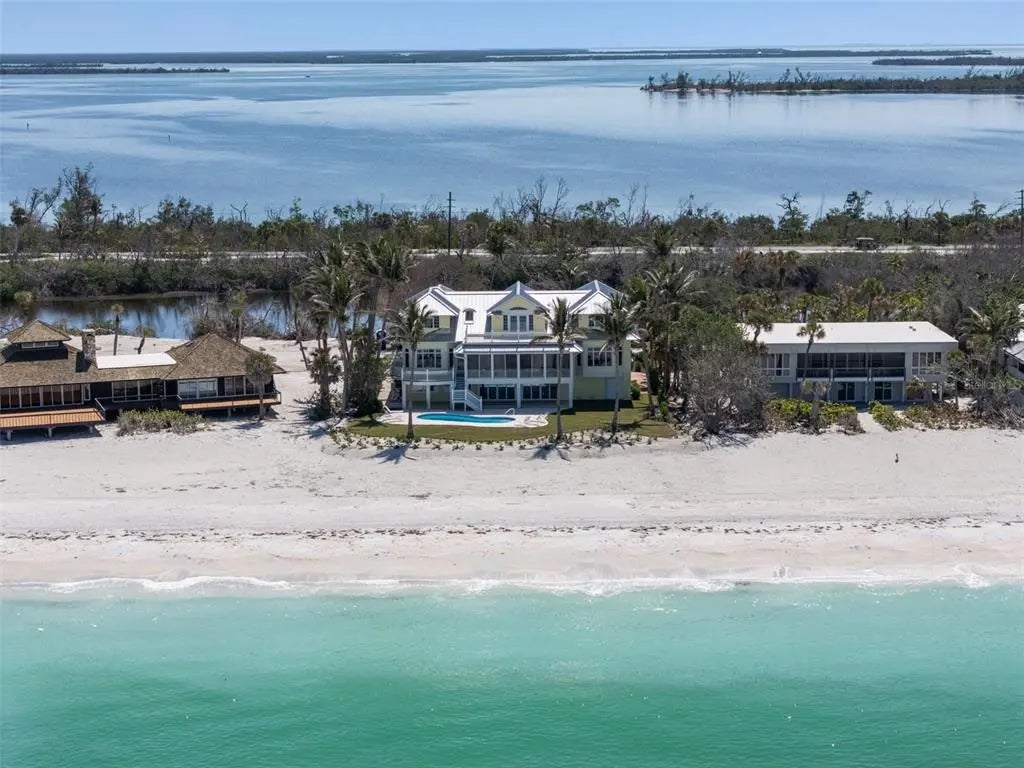 Welcome to a truly exceptional retreat, nestled perfectly between Charlotte Harbor and the pristine shores of the Gulf of Mexico. This stunning Gulf-front residence epitomizes coastal living, offering a seamless blend of traditional elegance, modern sophistication and communion with Boca Grande’s Old Florida lifestyle. The generous 1.16- acre lot which includes ownership of the adjacent eastern lagoon is situated on one of the Islands premier private roads improved with only gulf front homes and exclusive beach access. This traditional coastal-style residence is complete with 5 bedrooms and 6.5 baths and its custom construction is a true masterpiece of design and craftsmanship. The spacious and open floorplan provides breathtaking Gulf or Harbor vistas from almost every room and all three levels of the residence are accessible by stairs or elevator which are in close proximity to both garage facilities. The gourmet kitchen is beautifully outfitted with custom wood cabinets, twin Sub-Zero refrigerators, Sub-Zero beverage drawers, Wolf cooktop, double ovens and a multitude of fine custom finishes. The main living floor also includes a luxurious primary bedroom with separate dual baths, large custom closet and direct access to an elegant den/office. The second living level includes three generously sized guest suites, each with their own bath, as well as a second laundry room, a study, and a comfortable living room with gorgeous waterfront porches. The residence enjoys a refined aesthetic complete with beautiful hardwood floors, smooth drywall finishes, faux painting, custom built-ins and beautiful wood moldings all of which are enhanced by the properties whole house Lutron lighting system. The grounds are beautifully landscaped and highlighted by an in-ground pool and private beach access. This stunning outdoor Oasis is perfect for serene quiet time, family gatherings and entertaining friends. This Boca Grande gem is more than just a home; it's a lifestyle. With its prime location, stunning views, and unparalleled craftsmanship, this beachfront estate presents a singular opportunity to own a truly exceptional piece of Gulf Coast luxury.