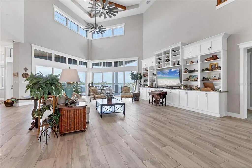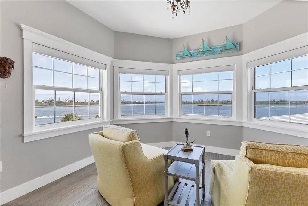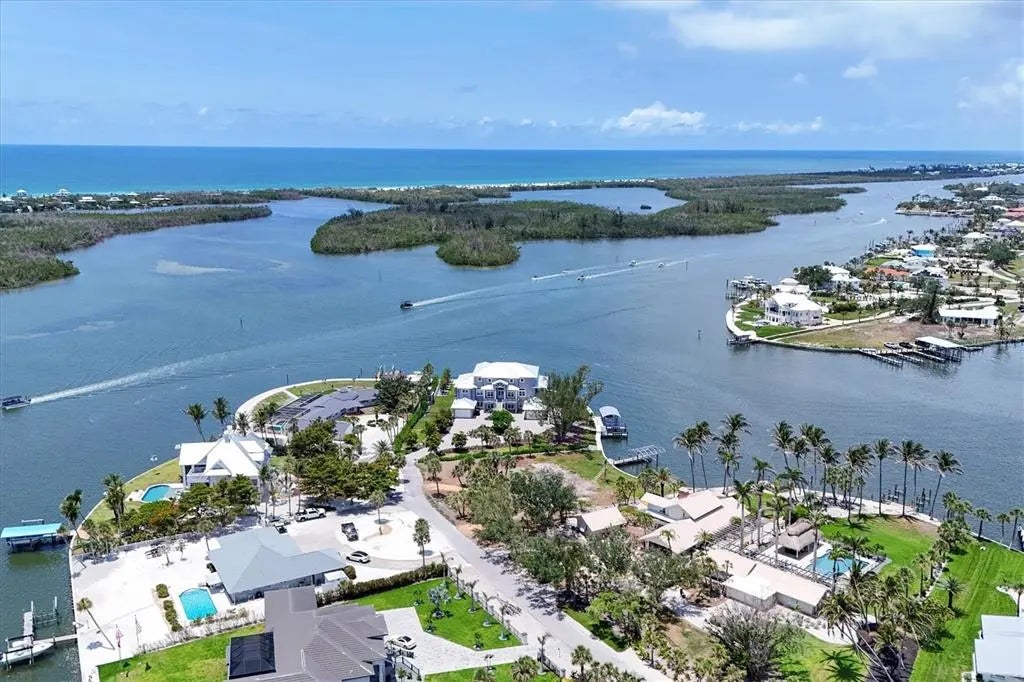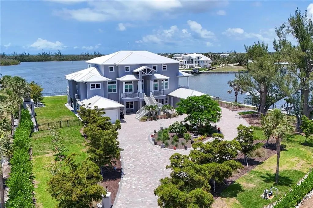 Magnificent 5 bedroom, 5 bath waterfront estate with over 5,300 sq.ft. in the historic neighborhood of Cape Haze offers mesmerizing panoramic views in every direction and superb boating access. Built in 2021 the home sits on maybe the most spectacular waterfront site in the area. The property is nearly a full acre and is surrounded by Pelican Bay and the Intracoastal Waterway with over 350 feet of seawall and excellent dockage. Less than a mile to the Gulf of Mexico and Charlotte Harbor, even bigger water is only minutes away. Drive down the long round-about driveway with stunning landscaping and towering mature trees, and gorgeous views of the bay and dockage before you park your car. Designed and built to highest coastal construction standards, the property is at home on the water. Heavy duty concrete piling and poured beam construction, impact storm windows and doors, metal roof and a 80KW Kohler generator with a 1,000 gallon propane tank. Entering the stunning home a grand 2 story great room with stunning beamed ceiling and a wall of 8 foot sliders and transom windows that brings the serene activity of the Intracoastal into the home. The large chef's kitchen has a giant island, Wolf range, custom wood cabinetry with endless storage. Just off the kitchen is an enormous laundry / pantry room with a folding island, large windows and tremendous cabinet space. Incredible outdoor living areas with a massive lanai with wood paneled ceiling off the main living room, terraces off of bedrooms and a giant patio around the stunning heated pool and spa, all affording spectacular water views. Gorgeous primary suite with a generous bedroom, large walk-in closet, and a comfortable sitting space for looking out bay windows at the waterway. The spa-like primary bath offers a large soaking tub, pebble tile flooring, expansive roman shower and dual vanities. The guest baths all have their own unique designs with custom tile work and wood cabinetry vanities. In addition to 5 bedrooms there's a large office/den that also affords incredible water views. Incredible nature and wildlife with multiple bird nests on the property, and dolphin and manatees frequently swimming around the shore. Prime boating location being at the southern end of Cape Haze, you're in world-class fishing waters of Charlotte Harbor or off shore waters of the Gulf of America in no time. Just minutes to historic Boca Grande, lots of shopping and fine dining, numerous private golf clubs, the Coral Creek Jetport, and miles of tranquil sandy beaches.