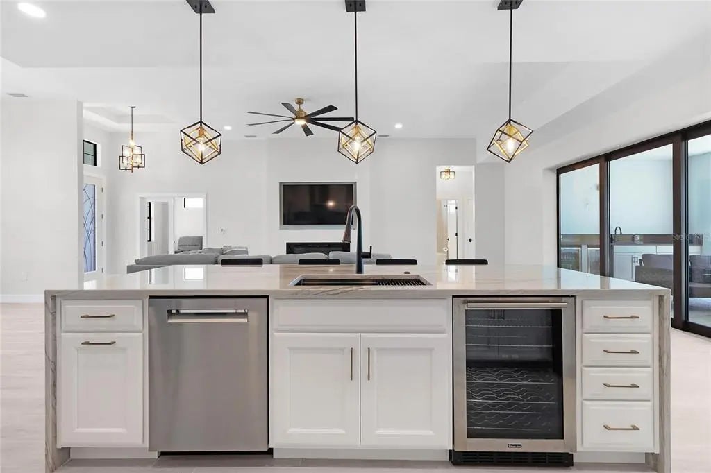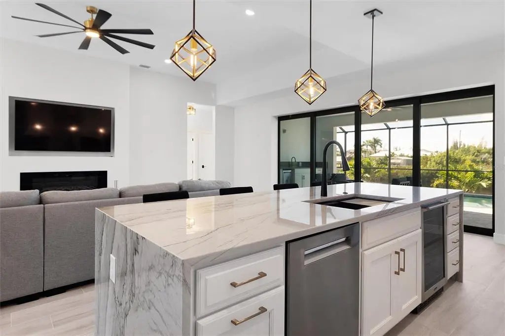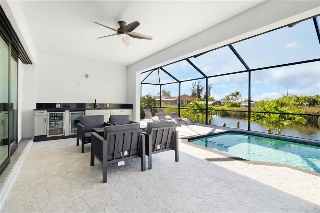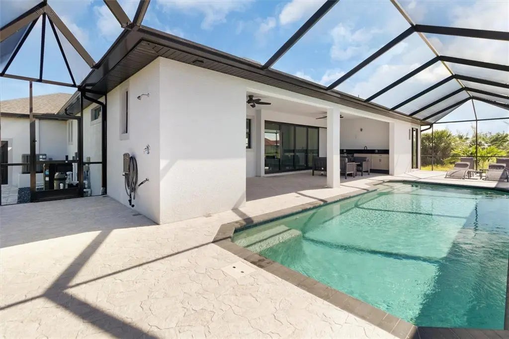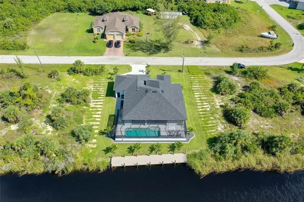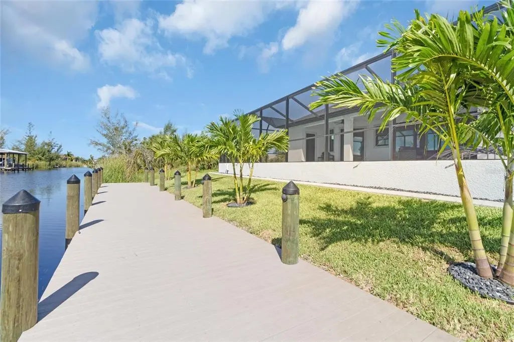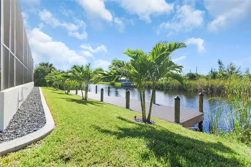 ENJOY "THE FLORIDA LIFESTYLE' in this Beautiful FURNISHED CUSTOM BUILT Pool Home located in the WATERFRONT BOATING COMMUNITY of SOUTH GULF COVE. This LIKE NEW CONSTRUCTION Home is Elegantly appointed and enveloped with a COASTAL FLAIR!!!and is on a SAILBOAT LOT with a SOUTHERN exposure and a BOATERS DREAM!!! Features include 3 BEDROOMS, PLUS BONUS OFFICE/DEN and 2 1/2 BATHS. This home is for the distinguished buyer and Boasts a spacious OPEN CONCEPT design. Kitchen is tastefully appointed with gorgeous QUARTZITE countertops, Beautiful Back Splash, LARGE ISLAND with BREAKFAST BAR, sink, storage, wine cooler, dishwasher and beautiful PENDANT lighting, coastal style wood cabinets, soft close drawers and STAINLESS STEEL appliances. Beautiful PLANK TILE flooring throughout. Living room with DECORATIVE FIREPLACE and Sliders across the back lead to pool area. Split Bedrooms, Primary Suite has a Large Walk-in Closet, Primary Bath has Dual Vanities and Walk Through Tiled shower. Elegant Light Fixtures and Ceiling Fans. Nice laundry room with Stack washer/dryer, and cabinetry. Enjoy outdoor Living on spacious Lanai with Decorative Tile, HEATED POOL, Outdoor Kitchen with refrig. and wine Cooler. Nicely landscaped, Irrigation system is from canal, 8X60' Composite DOCK, 3 CAR GARAGE, Covered front porch, Paver driveway.....AND SO MUCH MORE!!! SOUTH GULF COVE is only minutes away from Beautiful Southwest FLORIDA BEACHES in BOCA GRANDE and MANASOTA KEY with BOATING access to the GULF of MEXICO and surrounding ISLANDS. Community offers several nice parks, BOAT RAMP, Marinas and a CLUBHOUSE and YACHT CLUB you can join!!! With several GOLF COURSES, WORLD CLASS FISHING, Shopping and GREAT Restaurants only minutes away !!! EXPERIENCE THE FLORIDA LIFESTYLE!!!