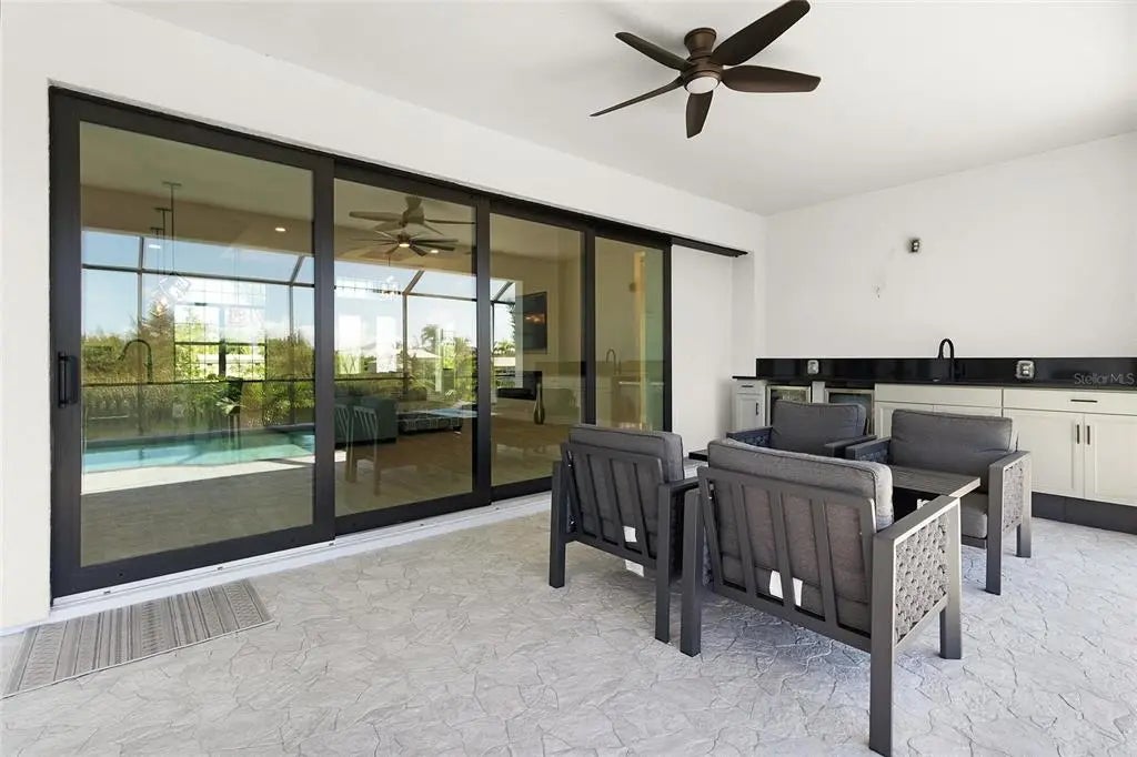 - Exterior FeaturesIrrigation System, Outdoor Kitchen, Outdoor Shower, Sliding Doors