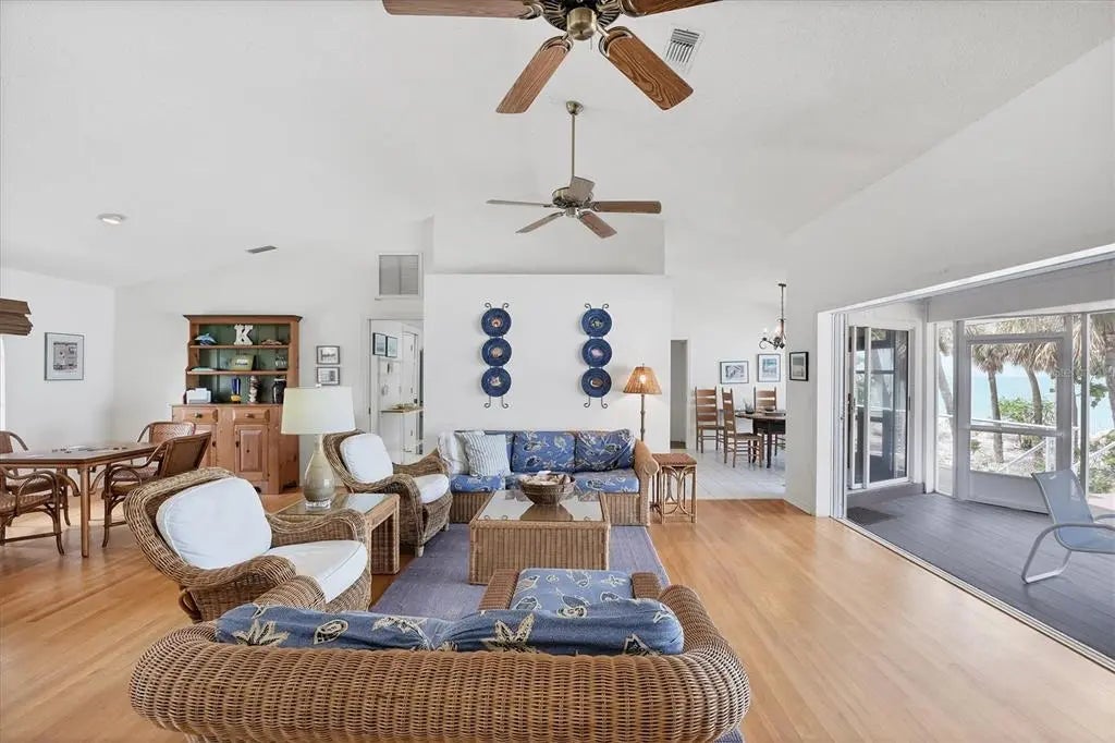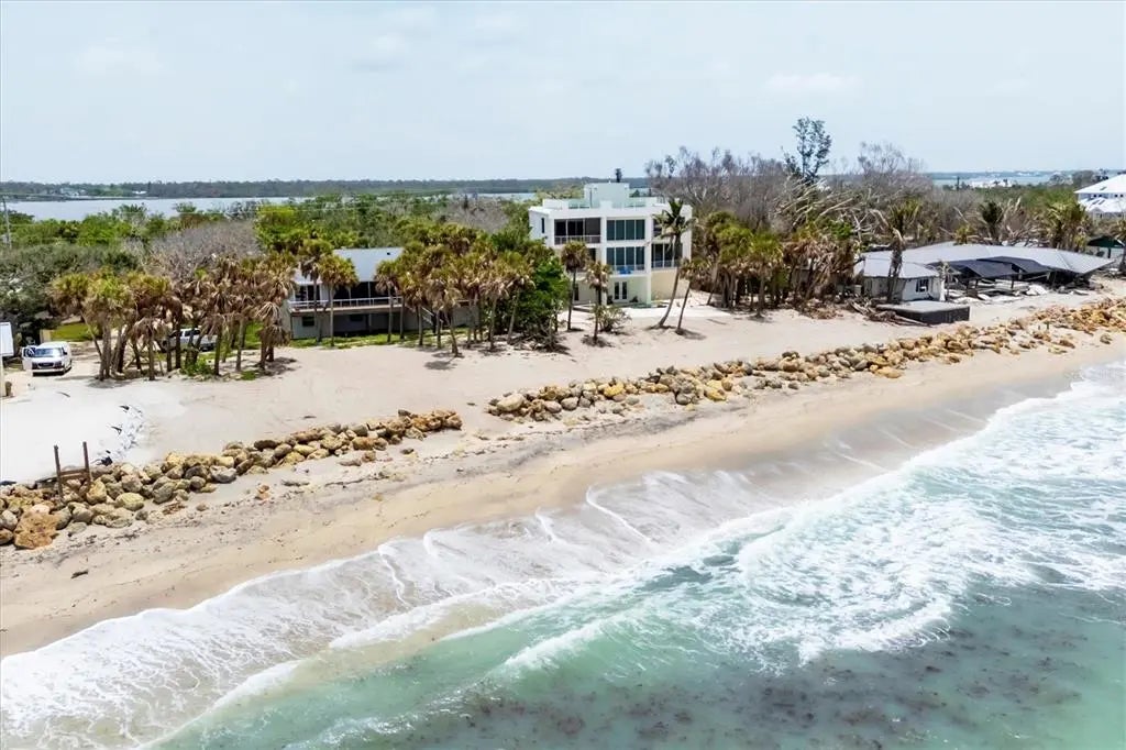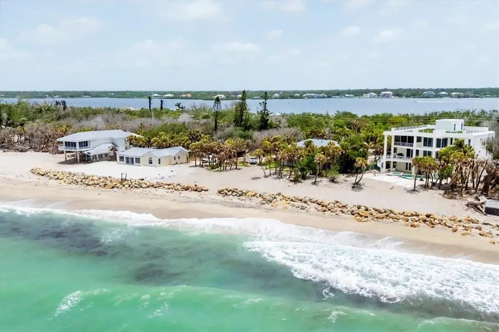 BEST priced Gulf front home! Welcome to your private beachfront escape on the quiet and unspoiled shores of Manasota Key. Tucked away on a lushly landscaped 0.64-acre lot with about 103 feet of direct Gulf frontage, this serene retreat offers relaxed, Old Florida charm. Step inside this mostly furnished coastal home and soak in sweeping views of the Gulf of Mexico—from nearly every room. Whether you're looking for a peaceful getaway or a full-time seaside sanctuary, this home blends comfort, style, and an unbeatable location right on the water. Notable highlights and recent upgrades include a private elevator for added convenience and luxury, some impact-resistant sliding glass doors & an impact-resistant garage door for enhanced safety, a newly installed riprap shoreline (2022) providing durable coastal protection, and a brand-new roof (2021) for peace of mind. With three bedrooms and two baths, the open layout feels airy and welcoming. You'll find plenty of storage with generous hallway closets, while the primary suite offers a true sense of retreat—with hardwood floors, two walk-in closets, impact-resistant sliders, and a spa-like bath featuring a soaking tub, walk-in shower, and dual vanities. Upstairs, the living and dining areas offer hardwood floors and panoramic Gulf views. Step out onto your screened lanai to enjoy ocean breezes and front-row seats to spectacular sunsets. Downstairs, there's a two-car garage, impact sliders, and a large open space—ideal for storage or finishing to suit your needs. Outside, tropical landscaping frames your private path to the beach. There’s even an outdoor shower and a sun deck off the lanai—perfect for laid-back afternoons after a swim in the Gulf. If you’ve been dreaming of quiet walks on the beach, gentle sea breezes, and the kind of coastal lifestyle that feels worlds away—this is your chance to customize & personalize this slice of paradise to make it your own. Discover the serenity, beauty, and timeless appeal of Manasota Key.