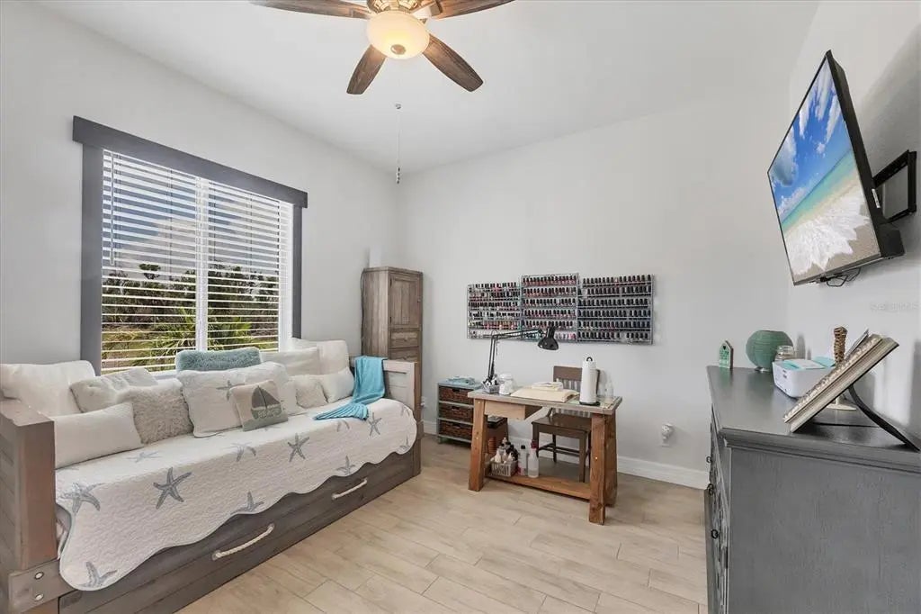 - Interior FeaturesCeiling Fan(s), Eating Space In Kitchen, High Ceilings, Solid Wood Cabinets