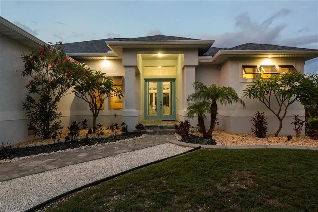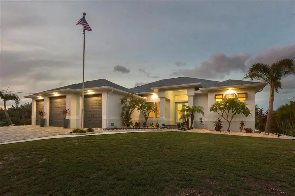 Built in 2019 this stunning 3 bed, plus den/study, 2 bath home sits on over half an acre of land, with a gorgeous heated pool and lanai and a car lover's dream 3 car garage. Located in the historic Vanderbilt developed neighborhood of Cape Haze with banyan lined streets, sidewalks to stroll to shopping and dining. Like all the homes in the neighborhood the house sits nicely back from the street, with a wide paver driveway and walkway up to the front door. Tall ceilings, large open kitchen and great room, custom wood cabinetry, stone counter tops, designer tile backsplash, high end appliances, plank tile flooring throughout, 8-foot zero corner sliding glass doors to the lanai, a full roll down screen and an outdoor kitchen on the lanai. Expansive paver lanai, beautifully designed pool with a sun shelf and in-pool seating. An incredible jumbo size 3 car garage with oversized stall doors, with two doors that are 9' wide by 10' tall and one 10'x10' middle door. Extra deep and tall ceilings, perfect for car lifts, storing boats, a workshop, and tremendous storage space. The home also comes with a very handy 10'x16' shed, perfect for even more storage. Cape Haze is a special waterfront community with membership in the Cape Haze POA there is usage of a dock and private beach on Don Pedro Island. A phenomenal location, Cape Haze is close to three full service marinas, numerous public and private golf courses, historic Boca Grande, miles of pristine sandy beaches and world-class fishing and boating.
