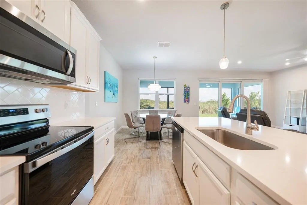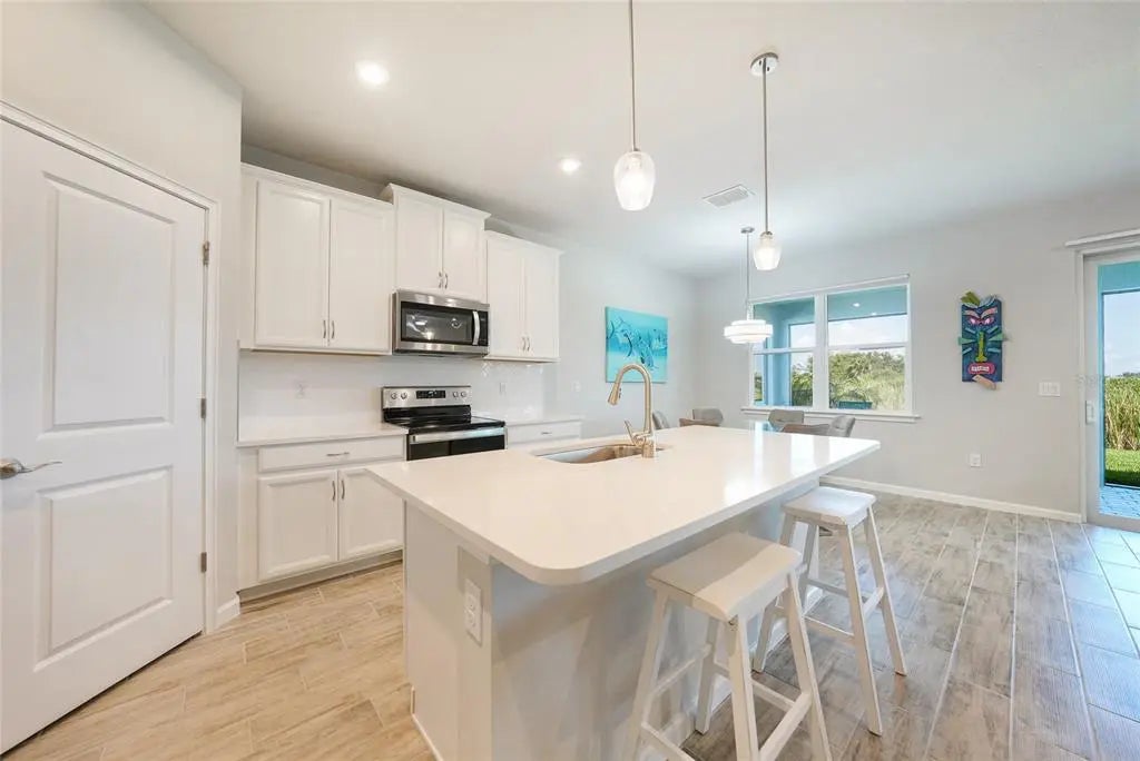 Skip the build time! This lightly lived-in, move-in ready 4-bedroom home in Sunstone at Wellen Park is packed with high-end upgrades that new construction doesn't come with! This spacious 1,894 sq. ft. Cascades floorplan offers an open, flowing layout with wood-look tile flooring, updated lighting, and designer ceiling fans throughout. The stylish kitchen features Linen shaker cabinets, quartz countertops, light color subway tile backsplash, and a large center island with breakfast bar, perfect for everyday living or entertaining. Step outside to your clear view screened lanai, where you’ll enjoy private conservation views and a backyard with room for a pool and fence, for all your family’s needs, even your furry ones. The epoxy-finished garage floor adds durability and style, and the fenced yard potential makes outdoor living a breeze. This home includes rare upgrades: * HURRICANE IMPACT WINDOWS, DOORS & GARAGE DOOR * All upgraded lighting & ceiling fans * Washer & dryer included * Top and bottom room-darkening shades in bedrooms—so you can wake up refreshed * Full window treatments throughout * Screened-in lanai already installed. The private owner’s suite features dual sinks, a walk-in closet, and a glass-enclosed shower with natural light. Bedrooms 2 and 3 are set apart from the main living area for privacy. A 4th bedroom/flex room with closet makes an ideal home office, gym, or guest space. Located just around the corner from the Sunstone community center, where you'll enjoy resort-style amenities: clubhouse, fitness center, pickleball, pool, playground, and more. Plus, you’re just minutes from Downtown Wellen Park, dining, live music, and less than 13 miles to multiple Gulf Coast beaches. **Better than new. Move-in ready**. Furniture & golf cart (purchased by owner) optional. 1 Year inspection available upon request.