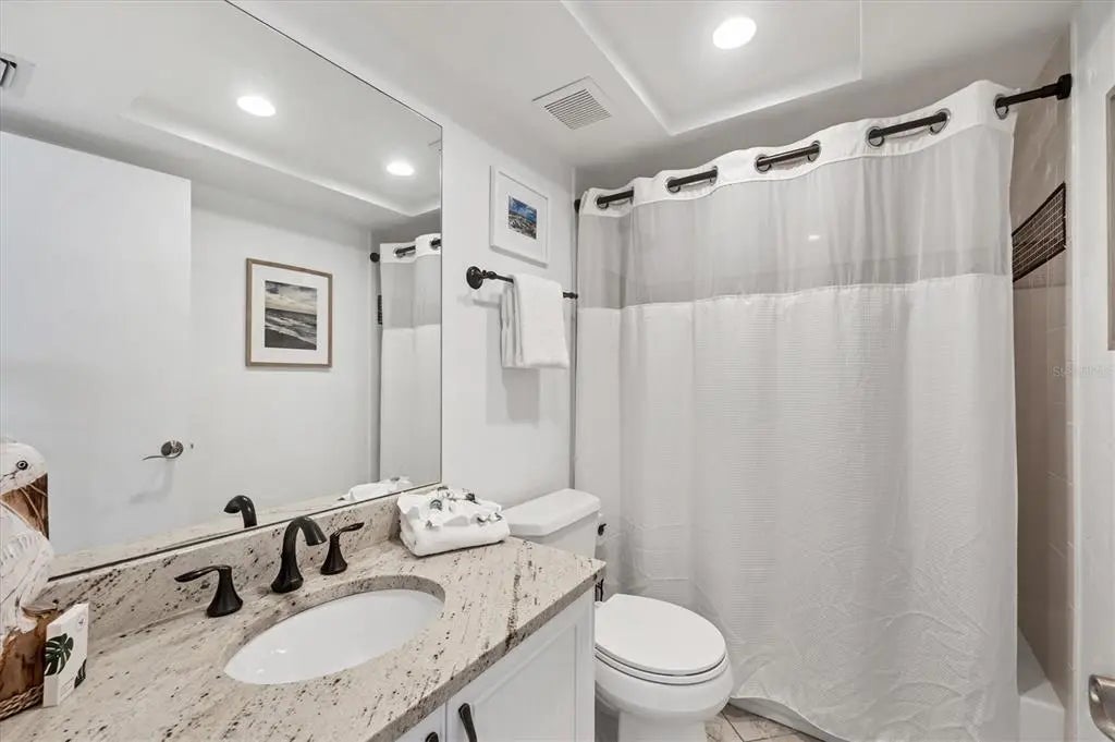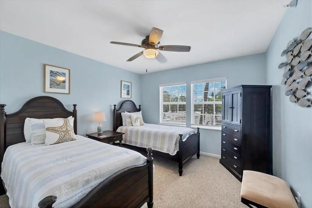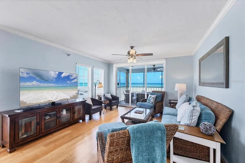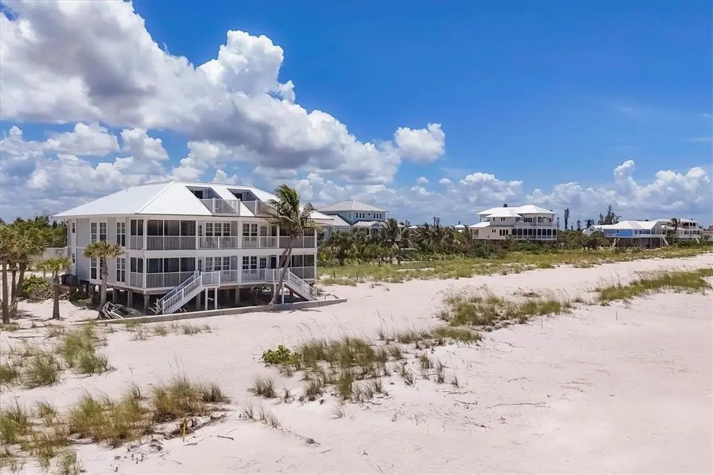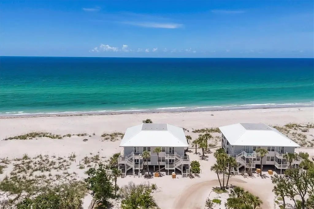 This without a doubt is the MOST SPECTACULAR 2-bedroom 2-bathroom villa with unobstructed coastline views on beautiful Palm Island! Within a few steps of exiting your beachfront lanai you're on the beach basking in the sun, collecting seashells and shark teeth, and watching the dolphins and manatees play. The beach is so quiet and quaint it will feel as if you are the only one living on Palm Island. Entertain your friends and family from your back porch and watch the amazing colorful sunsets that can only be seen from your covered screened in lanai. The long miles of beach views are endless from your primary bedroom, dining room, kitchen and covered lanai. This 1232 square foot home comes completely furnished and has had recent major improvements including: new AC unit installed (2021), new quartz countertops and stainless steel sink in kitchen (July 2022), new granite bathroom countertops and sinks (July 2022), freshly painted cabinets in both bathrooms (July 2022), new paint throughout the entire villa (July 2022), NEW flat screen televisions in ALL rooms including family room (60” inch) and both bedrooms (2022) , new fans installed throughout entire unit (July 2022), new sea turtle approved roller shade in family room (September 2022), new hot water heater (2022) and a NEW ROOF . The villa has been recently redecorated (July 2022) and can also be used as a rental within Palm Island Resort if so desired. This home has bamboo floors in the main living areas with tile in the kitchen and bathrooms. There is a comfortable king-sized bed in the primary bedroom with private en-suite and dual built-in closets. The second bedroom includes two twin-sized beds with built-in closets. Two additional closets within the unit provide ample space for any extra pool/beach accessories. The kitchen has slow-close cabinets and is fully stocked for all your cooking needs. The laundry room with a stacking washer/dryer, mini fridge, storage cabinet, and sink and window with beach view, so makes doing laundry FUN! Extras outside the villa is a outdoor shower, two-foot showers, and deck box to hold beach chairs and beach canopies. This golf cart only friendly island includes a community pool, restaurant at Palm Island Resort (Rum Bay), tennis courts, spa/workout center, boat docks, 24-hour security, and many other amenities to be enjoyed! A short ferry ride is all it takes to get to this incredible private oasis. No matter where you are on Palm Island, you will never regret owning this little piece of paradise.