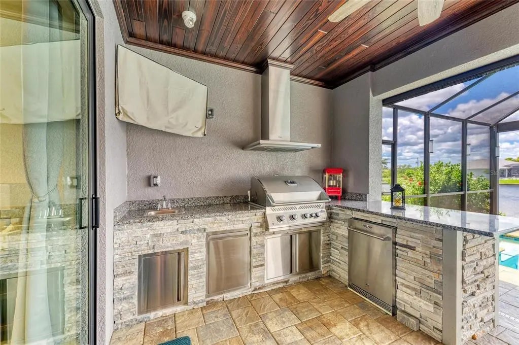 - Exterior FeaturesHurricane Shutters, Irrigation System, Lighting, Outdoor Grill, Outdoor Kitchen, Rain Gutters, Shade Shutter(s), Sliding Doors