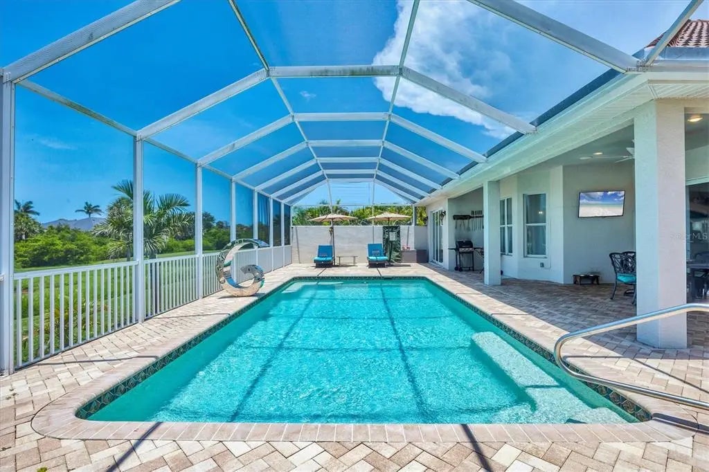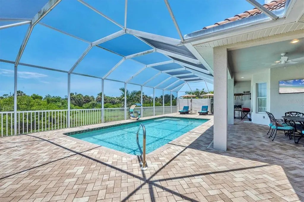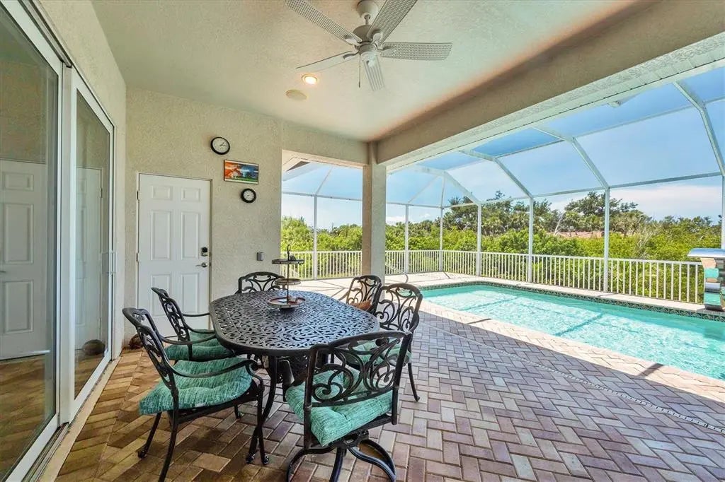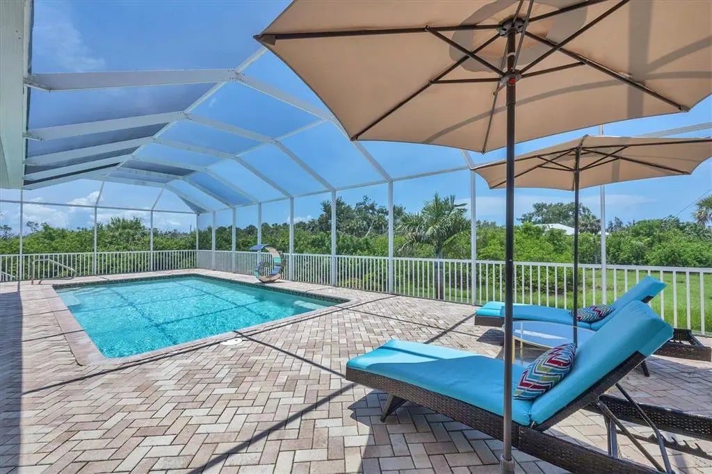 Welcome to this exquisitely crafted estate, custom built in 2011 and perfectly positioned on a rare double lot with lake views front & side and untouched natural beauty. Thoughtfully designed for both elegance and comfort, this residence offers a seamless blend of refined luxury and relaxed Florida living. Step inside to soaring ceilings and an expansive open-concept great room, anchored by premium custom cabinetry, high-end stone countertops, and an elite appliance package. Designer lighting and fan fixtures add stylish flair throughout the home. The generous front porch invites you to relax and enjoy serene golf course and lake views, while the rear lanai overlooks the tranquil Amberjack Creek, creating a peaceful retreat. The home features: 4 spacious bedrooms, plus a versatile bonus room above the garage, 3 full bathrooms and a half bath, oversized 3-car garage with ample room for vehicles and storage, an impressive 66' x 28' pool and patio area, ideal for both grand entertaining and intimate gatherings. Meticulously maintained and offered fully furnished, this home is truly move-in ready. This Estate Home is the perfect setting for hosting guests while maintaining privacy and comfort. Located just minutes from historic Boca Grande, pristine beaches, world-class fishing and boating. This Estate home provides coastal living at its finest.