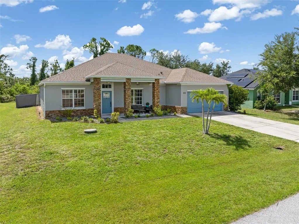 Short Sale. SHORT SALE! BEST PRICE!! Looking for your Florida dream home? This spacious, well-maintained 3 bed, 3 bath PLUS office PLUS flexspace home with 2,522 sq ft under air offers comfort, style, and the laid-back coastal lifestyle Florida is known for. Set on a private 10,000 sq ft lot in the popular waterfront community of South Gulf Cove, this home combines quality upgrades with the perfect location for enjoying year-round sunshine. Built in 2007, the home features exterior stacked stone accents and a charming covered front porch to add to the curb appeal. Inside, you'll love the luxury vinyl plank flooring throughout and a flexible layout that includes a separate office/den with French glass doors, an additional flex space and a formal dining room – ideal for hosting guests or family gatherings. The beautifully updated kitchen is a true standout with white shaker cabinets, quartz countertops, stainless steel appliances, subway tile backsplash, a large center island with contrasting cabinetry, recessed lighting, and designer pendant lights. The open-concept design flows into a large family room with a shiplap accent wall and casual dining space, perfect for everyday living. New impact glass sliders lead out to a screened lanai with cedar plank flooring, offering a peaceful spot to enjoy your morning coffee or Florida evenings overlooking the pool. The split floor plan gives privacy to the spacious primary suite, which features its own shiplap detail and a stunning en-suite bath with a huge tiled walk-in shower with dual rain heads, seamless glass doors, and extra tower cabinetry. Bedrooms 2 and 3 are located on the opposite side of the home and share a unique flex space – ideal as a playroom, teen lounge, homework area, or in-law suite. All bathrooms have been tastefully updated with floor-to-ceiling tile and granite or quartz countertops. The fully fenced backyard is a private oasis with a gorgeous inground pool and paver deck added in 2023 – perfect for cooling off on hot days or entertaining friends and family. Recent upgrades include a new roof (2022) and new A/C (2021), giving peace of mind and energy efficiency. Located on a quiet, low-traffic circular street across from waterfront homes, this home offers a tranquil setting without sacrificing convenience. South Gulf Cove is a sought-after Gulf-access community with an optional HOA and a laid-back, active Florida lifestyle. Residents enjoy a private boat ramp, multiple parks, walking paths, and a community center with events and social activities. Boating, fishing, kayaking, and enjoying the Gulf beaches are all just minutes away. In this location, you are close to everything - beaches, Boca Grande, Wellen Park, Spring Training stadiums (Braves and Rays), golf, boating, trails, shopping and restaurants. Whether you're relocating, retiring, or looking for your own piece of paradise – this home checks all the boxes. Don’t miss this opportunity to enjoy Florida living at its finest!