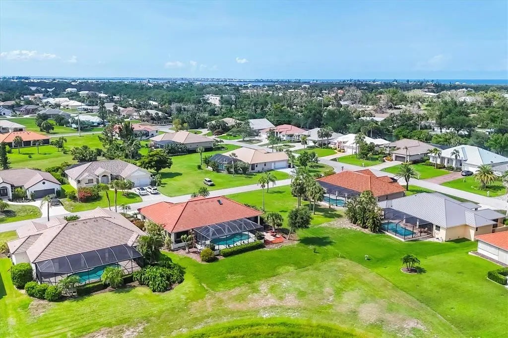 Discover this beautifull pool home nestled in one of Cape Haze's most desirable and spacious neighborhoods. Set against a backdrop of lush fairways, this property offers sweeping views of the Links Golf Course and two sparkling lakes. A serene setting to enjoy the best of Florida Living. Step outside to your own private screened in pool, perfect for unwinding and entertaining. Inside, the open-concept floor plan seamlessly connects the designer kitchen, dining area and great room; creating a bright and inviting space. Soaring ceilings, a large skylight, oversized windows and sliding glass doors fill the home with natural light and offer stunning views throughout. The primary suite features a spacious layout with an en-suite bath and a generous walk-in closet. A dedicated indoor laundry room offers convenience with built in cabinetry and a utility sink. Recent upgrades include the following: New Roof (2022) with repairs in 2023. New Water Heater (2021), New Washing Machine (2022) New Toilets (2022) Kitchen Remodel (2021), Dishwasher, Range, Refrigerator, Microwave, Garbage Disposal (2022), Thermostat (2020), The oversized garage provides even more storage options, including attic space. Located just minutes from Gulf Beaches, Boating, Boca Grande, and Englewood; this home is ideal for outdoor enthusiasts