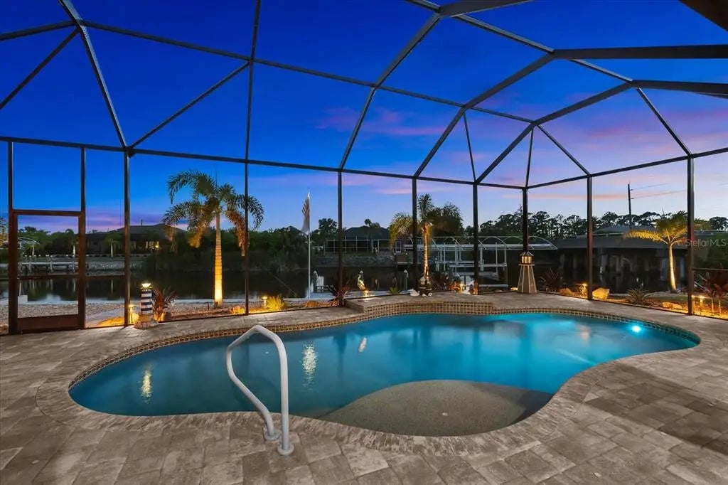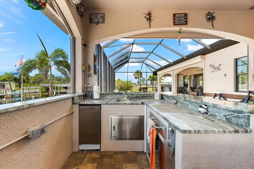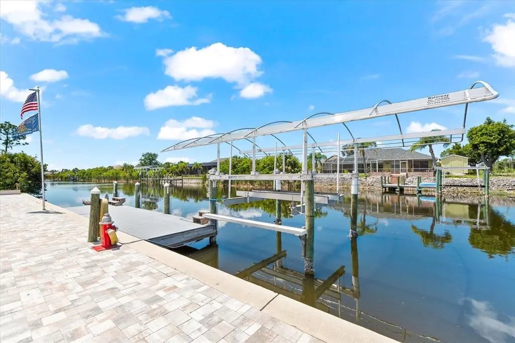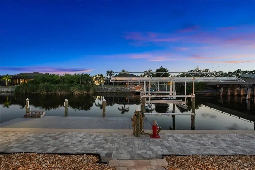 Experience the best of Florida living in this custom-built estate home, featuring 4 bedrooms, 3.5 baths, and a den, beautifully positioned on 1.25 acres along the Zephyr Waterway with 125 feet of sea-walled waterfront and ideal southern exposure. Built in 2018, this 2,681 sq ft estate offers the perfect blend of luxury, privacy, and easy access to both boating and nearby golf courses in the highly desirable South Gulf Cove community. Enjoy stunning views and vibrant boat traffic from your backyard on one of the area’s most sought-after wide canals. Inside, the home boasts a thoughtfully designed open floor plan with a double tray volume ceiling, gorgeous plank flooring throughout, and expansive 0° sliders that flood the main living areas with natural light, offering seamless indoor-outdoor living. A den with French doors provides an ideal space for a home office or cozy retreat. The heart of the home is the gourmet kitchen, designed to impress with upgraded granite countertops, a dramatic 10-foot island, staggered cabinetry, and decorative backsplash tile that extends to the ceiling. A spacious walk-in pantry and a state-of-the-art 2023 induction stove complete this high-end culinary space, perfect for both everyday living and entertaining. The expansive primary suite serves as a serene retreat, featuring a decorative ceiling, ample space for a seating area, and large windows that allow natural light to fill the room. The spa-like ensuite bath offers a luxurious walk-through shower with dual showerheads, double vanities, and a deep soaking tub—creating the perfect blend of comfort, elegance, and functionality. For added privacy, the guest bedrooms are located on the opposite side of the home, each with convenient access to their own bathrooms, making them ideal for family or visitors. Outdoor living is a true highlight of this property. Relax in the heated pool, surrounded by mature landscaping and protected by roll-down shutters on the lanai. A separate bar area with a refrigerator, sink, and icemaker makes entertaining a breeze. The full irrigation system keeps the expansive yard green year-round. Waterfront amenities include a 10,000 lb covered boat lift, water and electric at the dock, and a paver pad running the full 125 feet of sea-walled waterfront, providing a clean, polished look and convenient access along the shoreline. Additional upgrades include a new roof (2023), impact windows and doors, Bahama shutters, electric remote-controlled room-darkening shades, and a whole-house generator plug for added peace of mind. The three-car garage boasts a durable epoxy floor, and two outdoor sheds provide convenient extra storage. Don’t miss this rare opportunity—schedule your private showing today!
