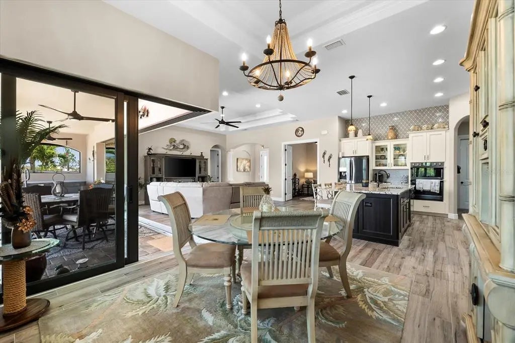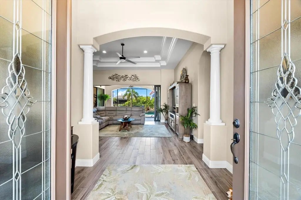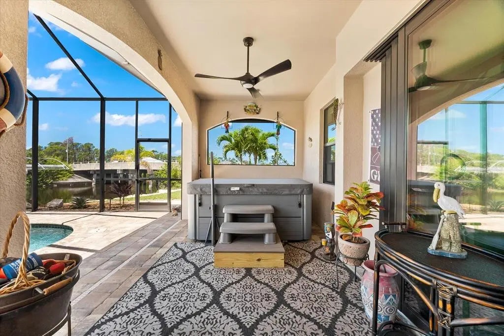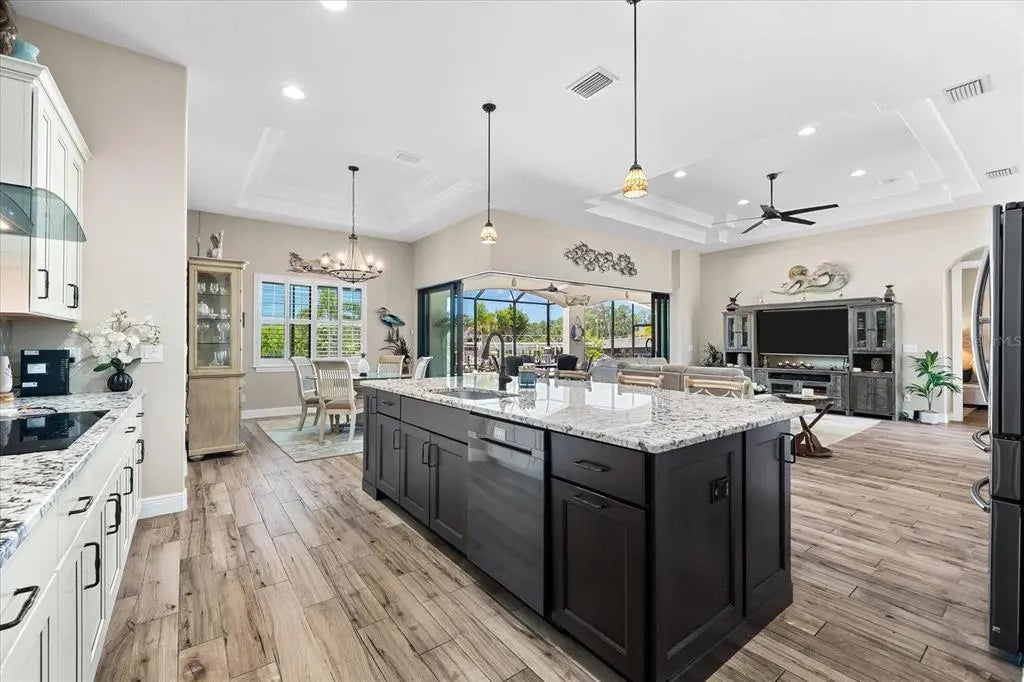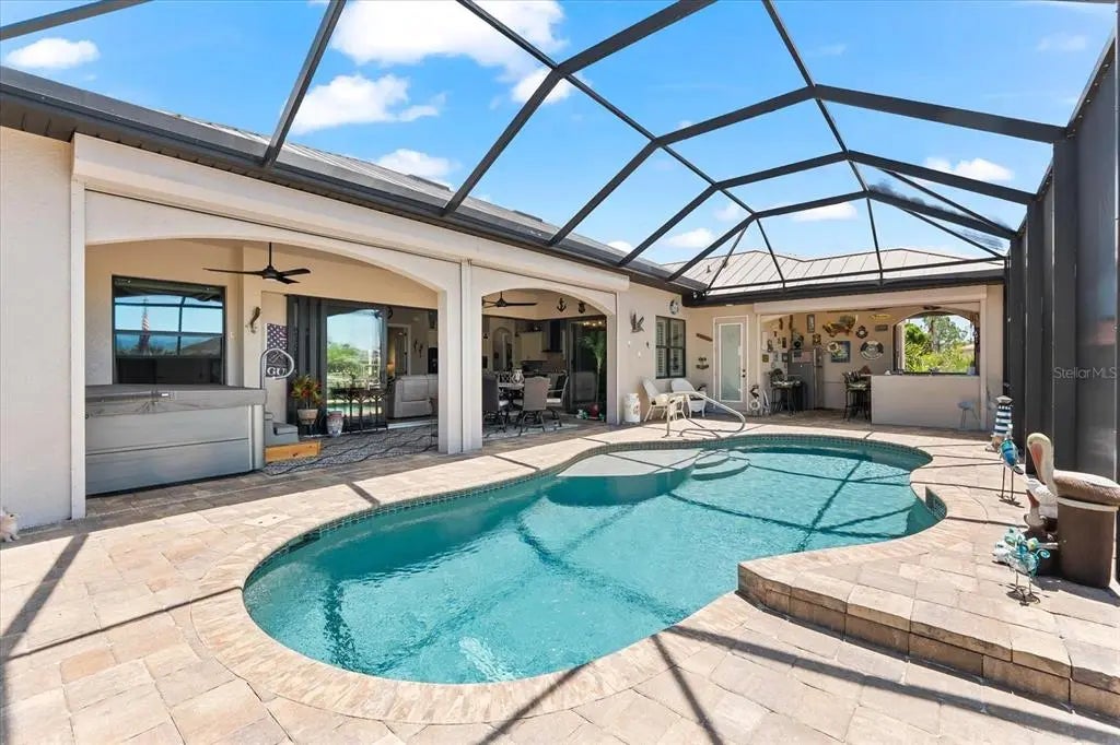Experience the best of Florida living in this custom-built estate home, featuring 4 bedrooms, 3.5 baths, and a den, beautifully positioned on 1.25 acres along the Zephyr Waterway with 125 feet of sea-walled waterfront and ideal southern exposure. Built in 2018, this 2,681 sq ft estate offers the perfect blend of luxury, privacy, and easy access to both boating and nearby golf courses in the highly desirable South Gulf Cove community. Enjoy stunning views and vibrant boat traffic from your backyard on one of the area’s most sought-after wide canals. Inside, the home boasts a thoughtfully designed open floor plan with a double tray volume ceiling, gorgeous plank flooring throughout, and expansive 0° sliders that flood the main living areas with natural light, offering seamless indoor-outdoor living. A den with French doors provides an ideal space for a home office or cozy retreat. The heart of the home is the gourmet kitchen, designed to impress with upgraded granite countertops, a dramatic 10-foot island, staggered cabinetry, and decorative backsplash tile that extends to the ceiling. A spacious walk-in pantry and a state-of-the-art 2023 induction stove complete this high-end culinary space, perfect for both everyday living and entertaining. The expansive primary suite serves as a serene retreat, featuring a decorative ceiling, ample space for a seating area, and large windows that allow natural light to fill the room. The spa-like ensuite bath offers a luxurious walk-through shower with dual showerheads, double vanities, and a deep soaking tub—creating the perfect blend of comfort, elegance, and functionality. For added privacy, the guest bedrooms are located on the opposite side of the home, each with convenient access to their own bathrooms, making them ideal for family or visitors. Outdoor living is a true highlight of this property. Relax in the heated pool, surrounded by mature landscaping and protected by roll-down shutters on the lanai. A separate bar area with a refrigerator, sink, and icemaker makes entertaining a breeze. The full irrigation system keeps the expansive yard green year-round. Waterfront amenities include a 10,000 lb covered boat lift, water and electric at the dock, and a paver pad running the full 125 feet of sea-walled waterfront, providing a clean, polished look and convenient access along the shoreline. Additional upgrades include a new roof (2023), impact windows and doors, Bahama shutters, electric remote-controlled room-darkening shades, and a whole-house generator plug for added peace of mind. The three-car garage boasts a durable epoxy floor, and two outdoor sheds provide convenient extra storage. Don’t miss this rare opportunity—schedule your private showing today!