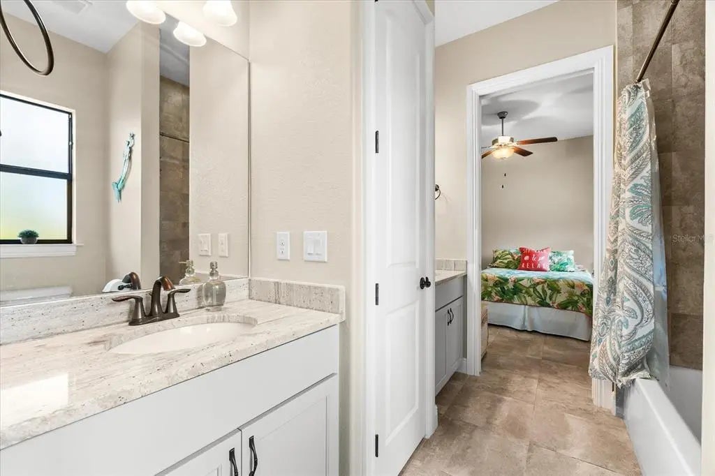 - Interior FeaturesCeiling Fan(s), Eating Space In Kitchen, High Ceilings, Kitchen/Family Room Combo, Living Room/Dining Room Combo, Open Floorplan, Primary Bedroom Main Floor, Solid Surface Counters, Split Bedroom, Stone Counters, Thermostat, Tray Ceiling(s), Walk-In Closet(s), Window Treatments