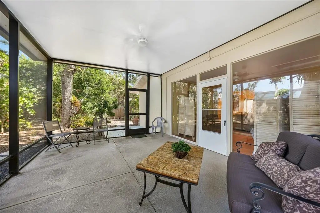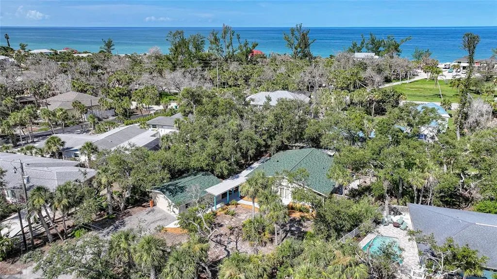 Coastal Luxury with Old Florida charm, Deeded Gulf & Bay Access on Manasota Key with No Flood or Hurricane Damage. Welcome to Bay Oaks Circle an exclusive enclave on Manasota Key where charm, privacy, and coastal living converge. This beautifully maintained 2 bedroom + Bonus Room, 2-bathroom furnished home is nestled on an oversized .31 acre lot in the sought after Bay Oaks community, just steps from both deeded beach access to the Gulf and deeded Bay access for kayaking or paddleboarding. NO storm or flood damage from Hurricanes Helene or Milton offering peace of mind and lasting value. Step inside and feel the calm coastal energy throughout this move in ready home. The spacious split-bedroom floorplan is perfect for entertaining and everyday comfort. A freshly painted exterior (July 2025), New Roof (9/2024), Irrigation on well water and New Water Heater (2018), Garage Door (2017), AC (2014) and lush tropical landscaping provide exceptional curb appeal. The chef inspired kitchen features granite tile countertops, an eat-at island breakfast bar, and generous cabinet storage. Natural light floods the home through pocketing glass sliders, creating a seamless connection between the expansive enclosed front porch and your private back patio retreat. The primary suite offers a private sanctuary and a spa-style bathroom with a large walk-in shower—perfect for unwinding after a day at the beach. Additional features include: A detached garage with dedicated workshop and laundry room. Low-maintenance landscaping with mature tropical foliage. Plenty of room to expand your outdoor oasis. Location perks: Bay Oaks is a quiet, tree-canopied neighborhood with easy access to Englewood Beach, where you’ll find daily morning yoga, charming island restaurants, and unforgettable sunsets. Optional HOA. This is more than a home—it’s your gateway to an authentic Gulf Coast lifestyle. Whether you’re seeking a seasonal escape, full-time residence, or investment opportunity, this home checks every box.
