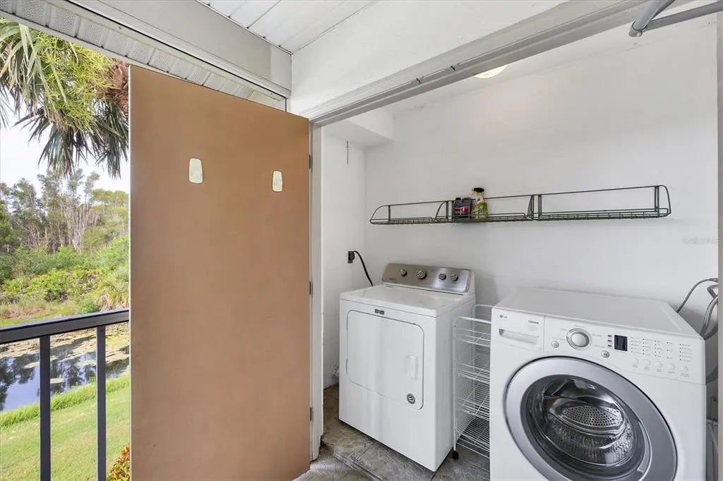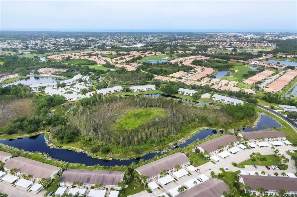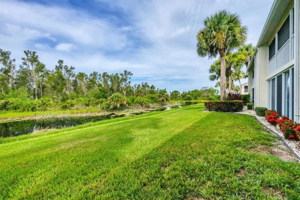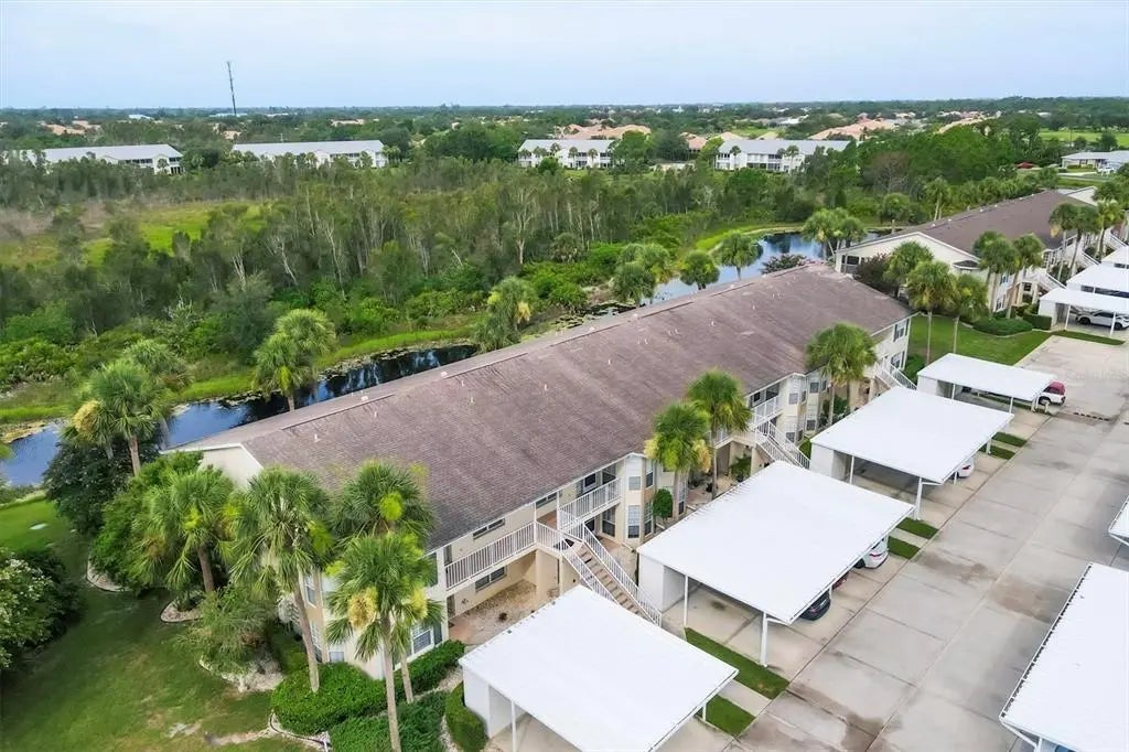 Welcome to this bright and peaceful 2-bedroom, 2-bathroom condo with private water view in the heart of Venice, Florida. Located on the second floor of the well-established Waterside Village community, this home offers a serene setting with everyday convenience and low HOA fees. Step inside to find ceramic tile flooring throughout, a spacious primary suite with a large walk-in closet, and sparkling sliders that lead to an oversized screened lanai overlooking a tranquil nature preserve perfect for bird watching and morning coffee. The living room features vaulted ceilings and an open space flooded with natural light. Neutral interior tones provide a blank canvas for your personal coastal style. The kitchen includes a breakfast bar and cozy dining nook, all bathed in sunlight. A carport and private storage shed on the main level offer simple convenience, and many other costs are included in the low HOA fee such as water, trash, pest control, basic cable, and much more. Plus, enjoy access to all the community has to offer with tennis courts, club house, heated pool, outdoor grills, bocce ball, and shuffleboard. Experience the best of Florida living in a quiet, central location just 15 minutes from Gulf beaches, and 10 minutes to historic downtown Venice shopping and dining.