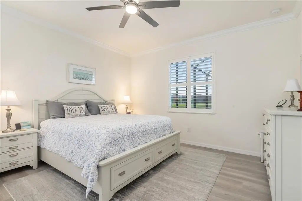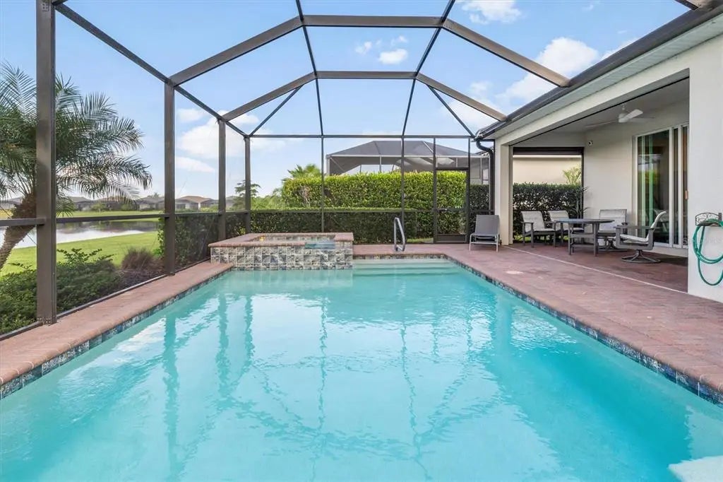 Under contract-accepting backup offers. DISCOVER FLORIDA LIVING at its best in this 2019-built 4 bed, 3 bath POOL home with 2006 sq ft under air, located on a quiet street within one of the area’s best-kept secrets—an exclusive GATED COMMUNITY of just 165 newer homes, all with WATER VIEWS and tile roofs. Step inside to a bright and spacious open floorplan with high ceilings, diagonal tile flooring, plenty of storage and 3-way split for the bedrooms allowing flexible uses including OFFICE, HOBBY ROOM or guest suite. The kitchen features white shaker-style cabinets, granite countertops, LARGE GRANITE ISLAND, upgraded stainless steel appliances, and flows seamlessly into the OPEN PLAN dining room and family room, where sliding glass doors lead to your private oasis—a SCREENED POOL AND SPA with covered lanai with pavers, overlooking a tranquil lake with privacy hedges and mature landscaping. Enjoy watching the wildlife from the lanai and the spectacular Florida sunrise and sunsets from this south-facing home. Owners have added California-style FITTED CLOSETS, PLANTATION SHUTTERS, designer lighting and fans and UPGRADED APPLIANCES. For maximum peace of mind, the home has whole-house STORM SHUTTERS (roll-down at front and back, storm screens on sides) and a transferrable Flood Insurance policy, currently $1200/yr. Harbor West is a low-HOA (no CDD) community which offers 2 gated entrances, sidewalks, lawn and landscape maintenance, and an active social scene—perfect for both seasonal and full-time residents. All homes back onto lakes or Gulf-access canals and are well spaced, with room on paver driveways for visitor parking and all homes have public water, NO SEPTIC. The location is a short drive to local beaches in Boca Grande or Englewood and the area offers boating, fishing, golf, shopping, dining and Spring Training baseball for the Rays and Braves. You will have easy access to I-75 for Sarasota, Fort Myers, and Tampa. Don’t miss this rare opportunity to enjoy a relaxed lifestyle in one of Southwest Florida’s most unspoiled locations. The perfect opportunity to escape from Winter weather and make the most of living in Florida!