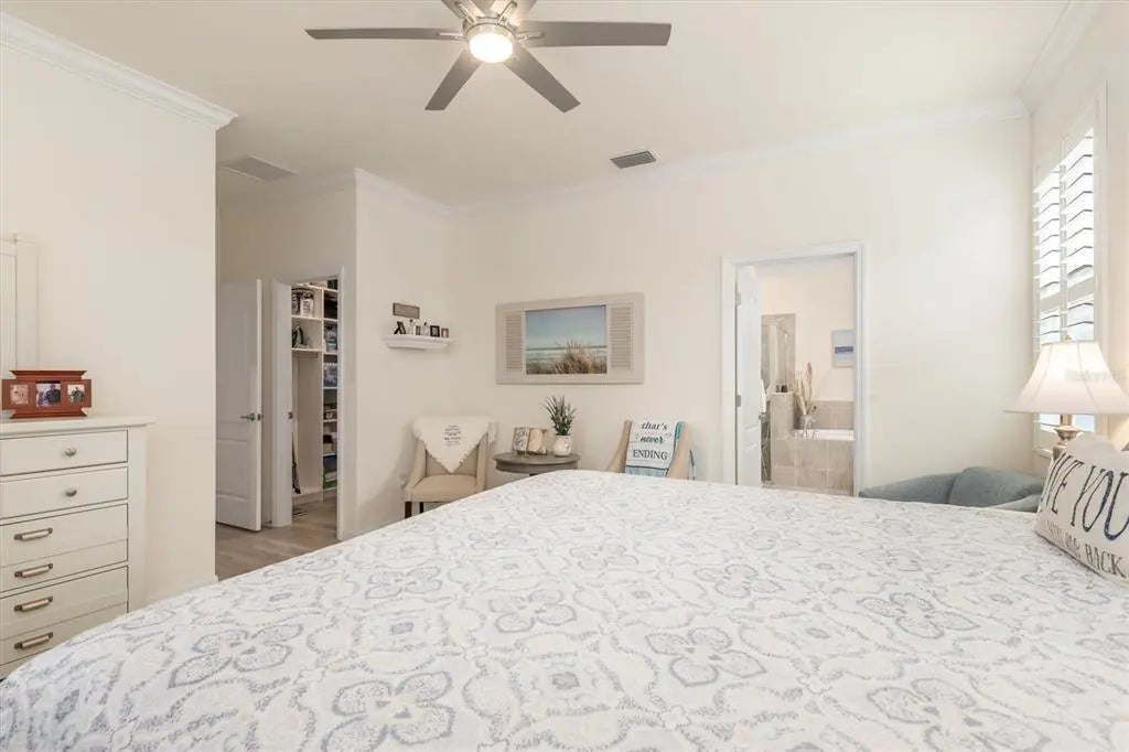 - Interior FeaturesCeiling Fan(s), High Ceilings, Split Bedroom, Stone Counters, Tray Ceiling(s), Walk-In Closet(s), Window Treatments