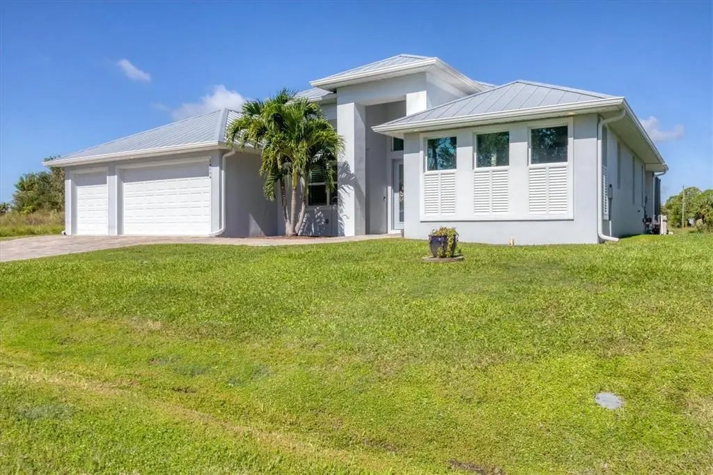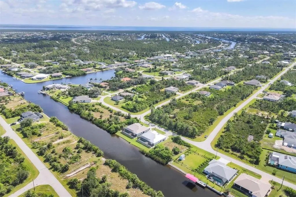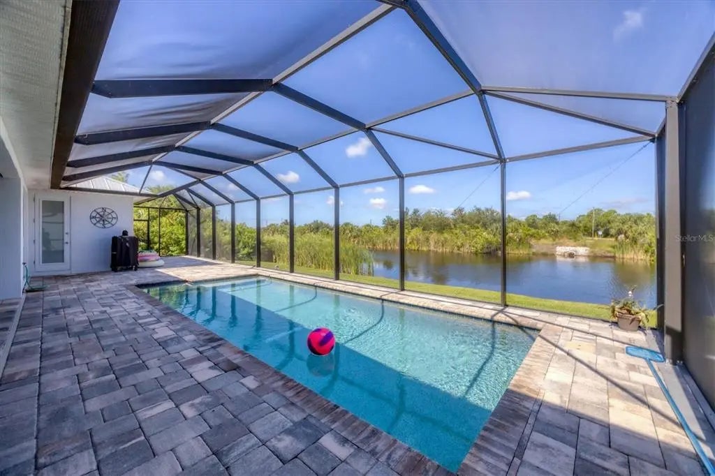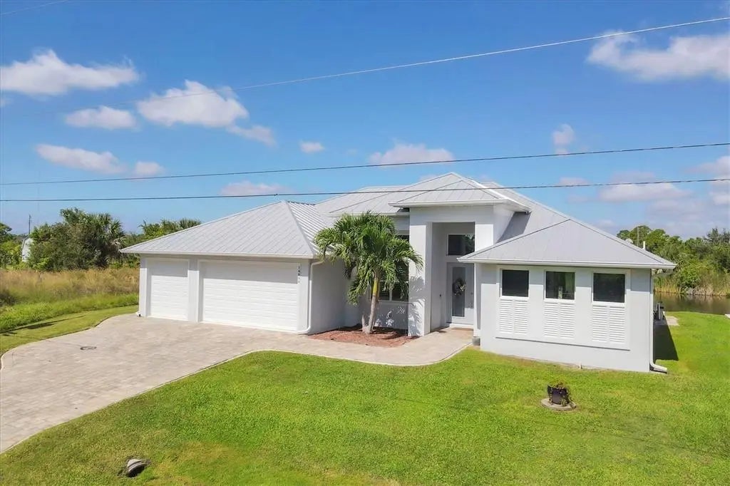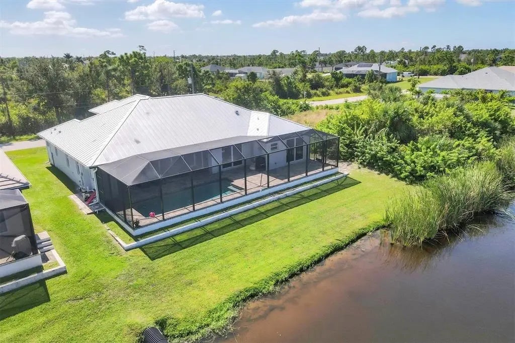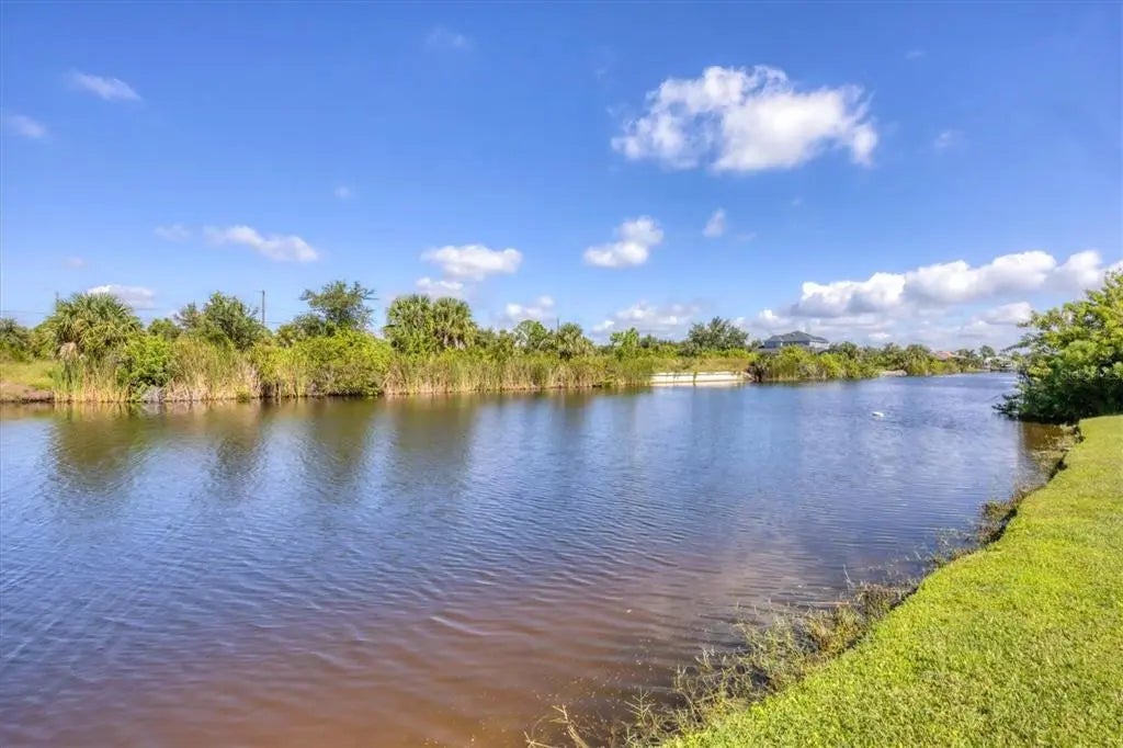 Discover Your Dream Home in South Gulf Cove. Welcome to this stunning custom pool home built by the renowned DM Dean Custom Homes. Spanning 2,117 sq ft of thoughtfully designed living space, this masterpiece is loaded with premium upgrades and modern finishes. Step through the elegant double doors into a grand entrance with soaring high ceilings and zero-degree sliders that seamlessly blend indoor and outdoor living. Your gaze will be drawn to the pristine pool and the tranquil backdrop of Florida’s natural beauty overlooking the Santa Cruz Waterway, creating the perfect oasis for relaxation and entertainment. Enjoy cocktails around the pool while gazing at the beautiful sunset. This custom-designed home features three spacious bedrooms, two luxurious bathrooms, a versatile den/office, and a three-car garage. Ceramic tile flooring flows throughout the home, offering durability and style. The kitchen is a centerpiece of the living area, complete with granite countertops, soft-close cabinetry, and convenient roll-out drawers in the pantry. The oversized island provides ample space for culinary creations and gatherings with family and friends. Peace of mind comes standard with hurricane-rated Low-E impact glass windows and doors, eliminating the need for shutters, while spray foam insulation ensures energy efficiency year-round. Metal Roof ensures safety during storms. The primary suite is a retreat of its own, with private sliders leading to the lanai and wet bar. The spa-like en-suite bathroom features a luxurious walk-around shower and dual vanities. Step outside to the expansive screened lanai, designed for entertaining and unwinding. Whether you're hosting a game day around the wet bar or soaking in the custom pool this space delivers the ultimate Florida lifestyle. Set on a generous waterfront lot gives you access to over 50 miles of navigable waterways leading to the Charlotte Harbor & Gulf of Mexico. Conveniently located just 20 minutes from the beaches of Boca Grande and Manasota Key, 15 minutes from shopping and dining, and a short 10-minute drive to several golf courses. The Community offers multiple parks, playground, sidewalks and a boat ramp for your enjoyment. This home is perfectly positioned for enjoying all that Southwest Florida has to offer. Schedule your private showing today and make this exceptional property your very own Piece of Paradise!