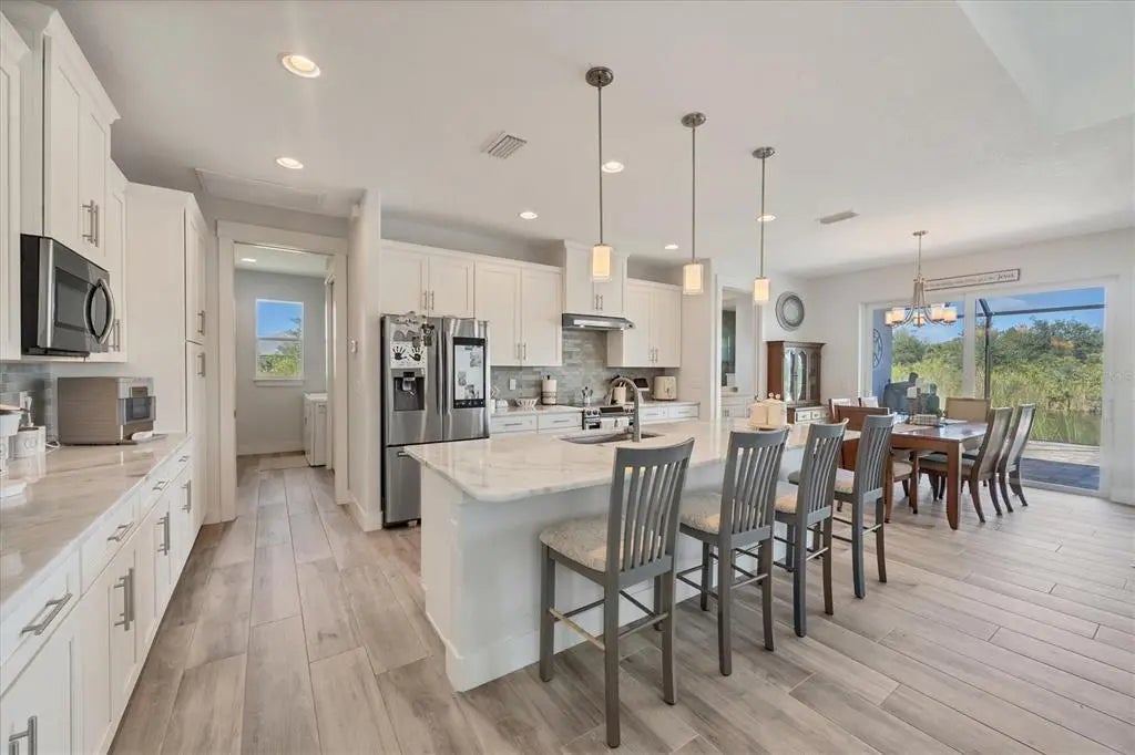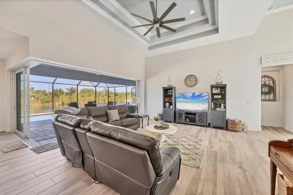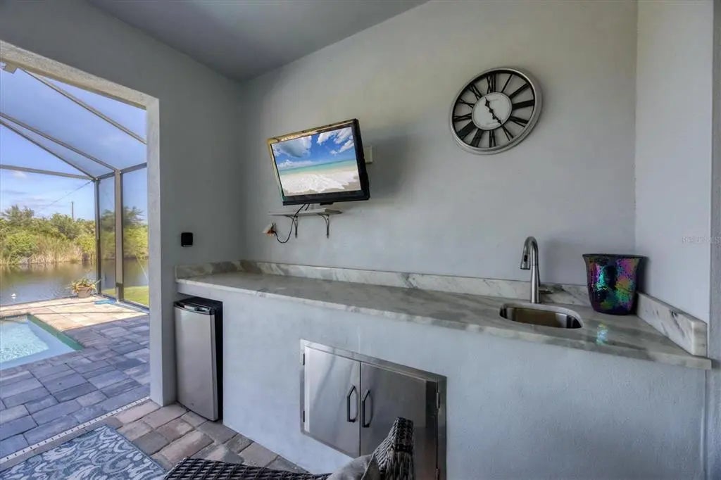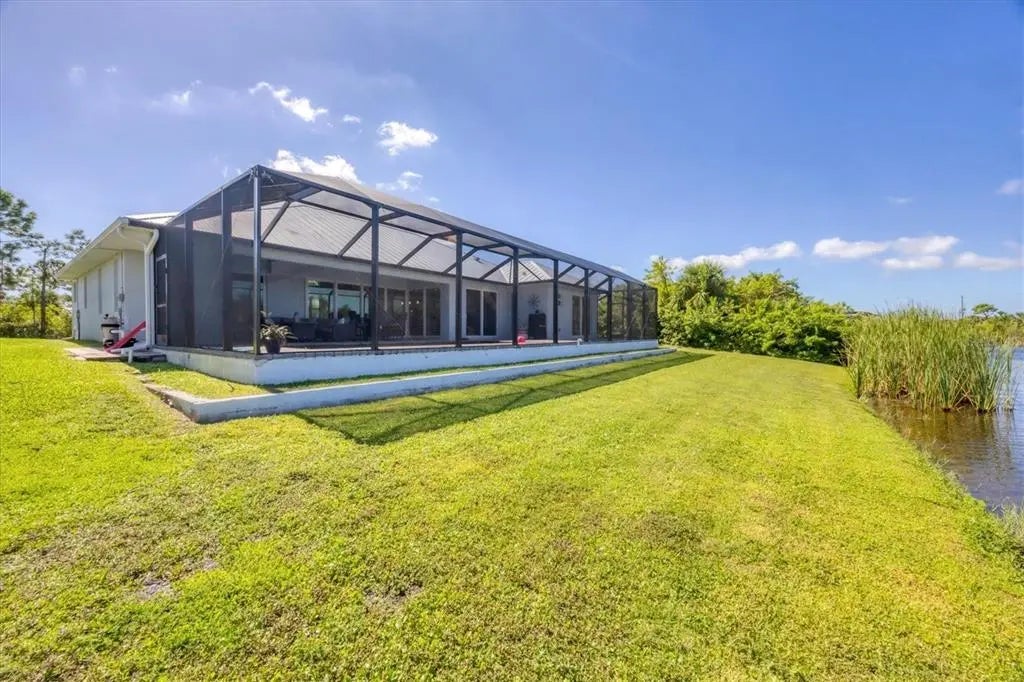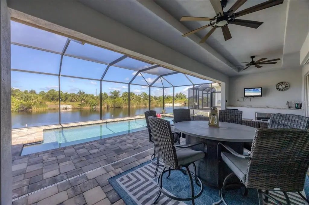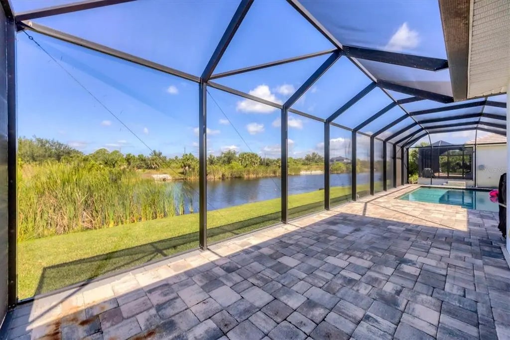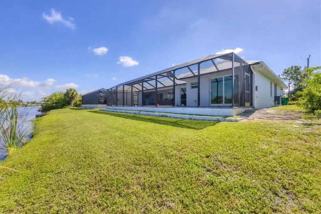 Discover Your Dream Home in South Gulf Cove. Welcome to this stunning custom pool home built by the renowned DM Dean Custom Homes. Spanning 2,117 sq ft of thoughtfully designed living space, this masterpiece is loaded with premium upgrades and modern finishes. Step through the elegant double doors into a grand entrance with soaring high ceilings and zero-degree sliders that seamlessly blend indoor and outdoor living. Your gaze will be drawn to the pristine pool and the tranquil backdrop of Florida’s natural beauty overlooking the Santa Cruz Waterway, creating the perfect oasis for relaxation and entertainment. Enjoy cocktails around the pool while gazing at the beautiful sunset. This custom-designed home features three spacious bedrooms, two luxurious bathrooms, a versatile den/office, and a three-car garage. Ceramic tile flooring flows throughout the home, offering durability and style. The kitchen is a centerpiece of the living area, complete with granite countertops, soft-close cabinetry, and convenient roll-out drawers in the pantry. The oversized island provides ample space for culinary creations and gatherings with family and friends. Peace of mind comes standard with hurricane-rated Low-E impact glass windows and doors, eliminating the need for shutters, while spray foam insulation ensures energy efficiency year-round. Metal Roof ensures safety during storms. The primary suite is a retreat of its own, with private sliders leading to the lanai and wet bar. The spa-like en-suite bathroom features a luxurious walk-around shower and dual vanities. Step outside to the expansive screened lanai, designed for entertaining and unwinding. Whether you're hosting a game day around the wet bar or soaking in the custom pool this space delivers the ultimate Florida lifestyle. Set on a generous waterfront lot gives you access to over 50 miles of navigable waterways leading to the Charlotte Harbor & Gulf of Mexico. Conveniently located just 20 minutes from the beaches of Boca Grande and Manasota Key, 15 minutes from shopping and dining, and a short 10-minute drive to several golf courses. The Community offers multiple parks, playground, sidewalks and a boat ramp for your enjoyment. This home is perfectly positioned for enjoying all that Southwest Florida has to offer. Schedule your private showing today and make this exceptional property your very own Piece of Paradise!