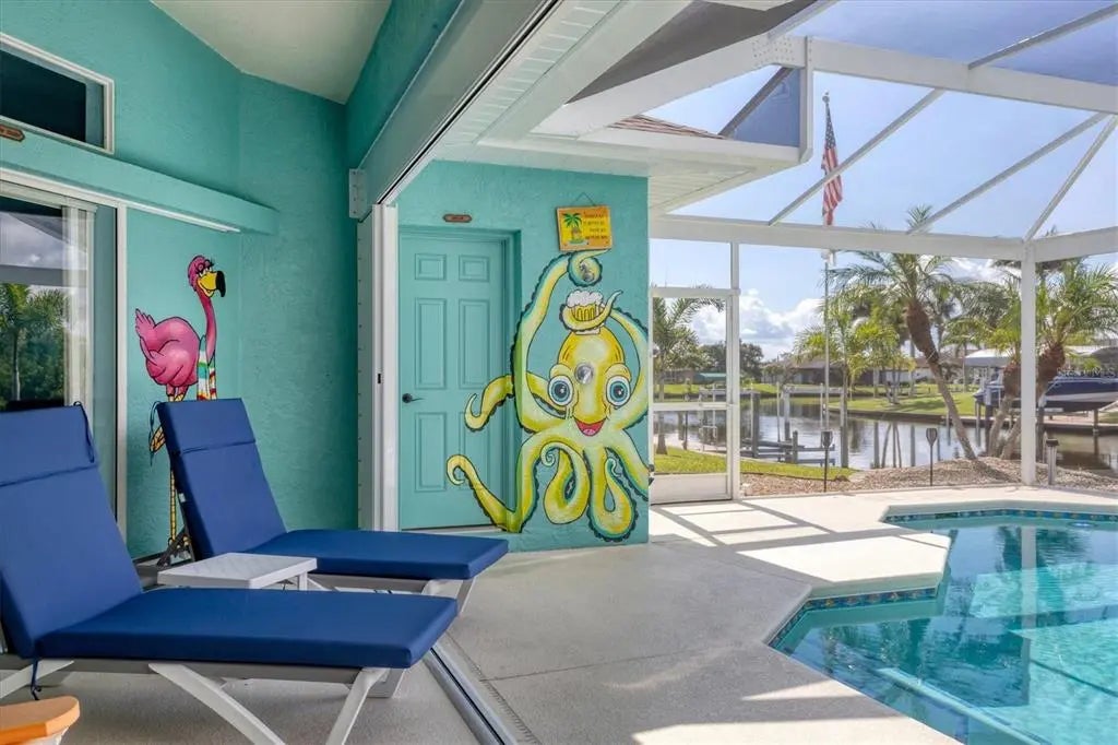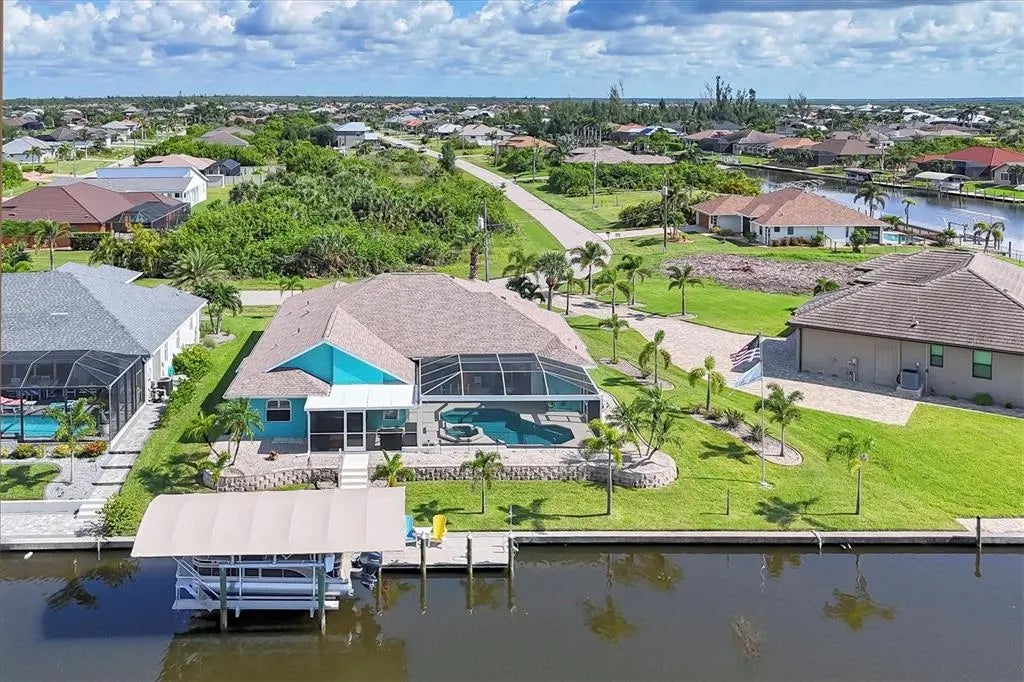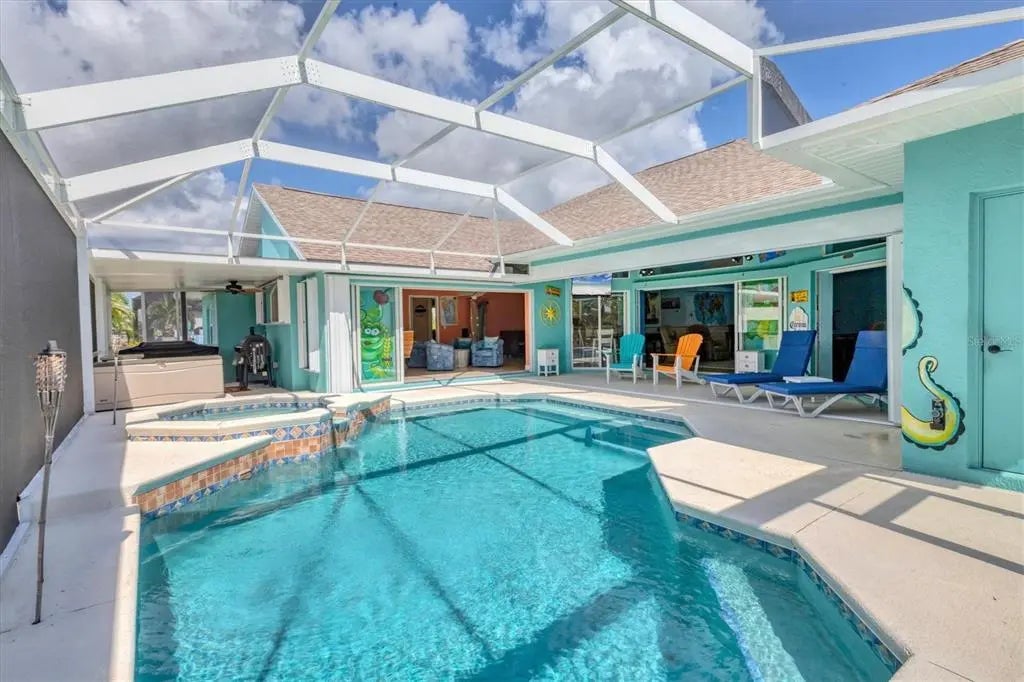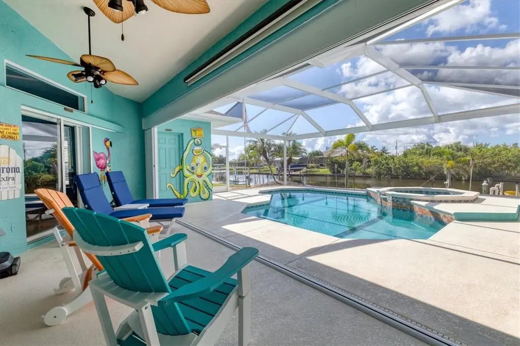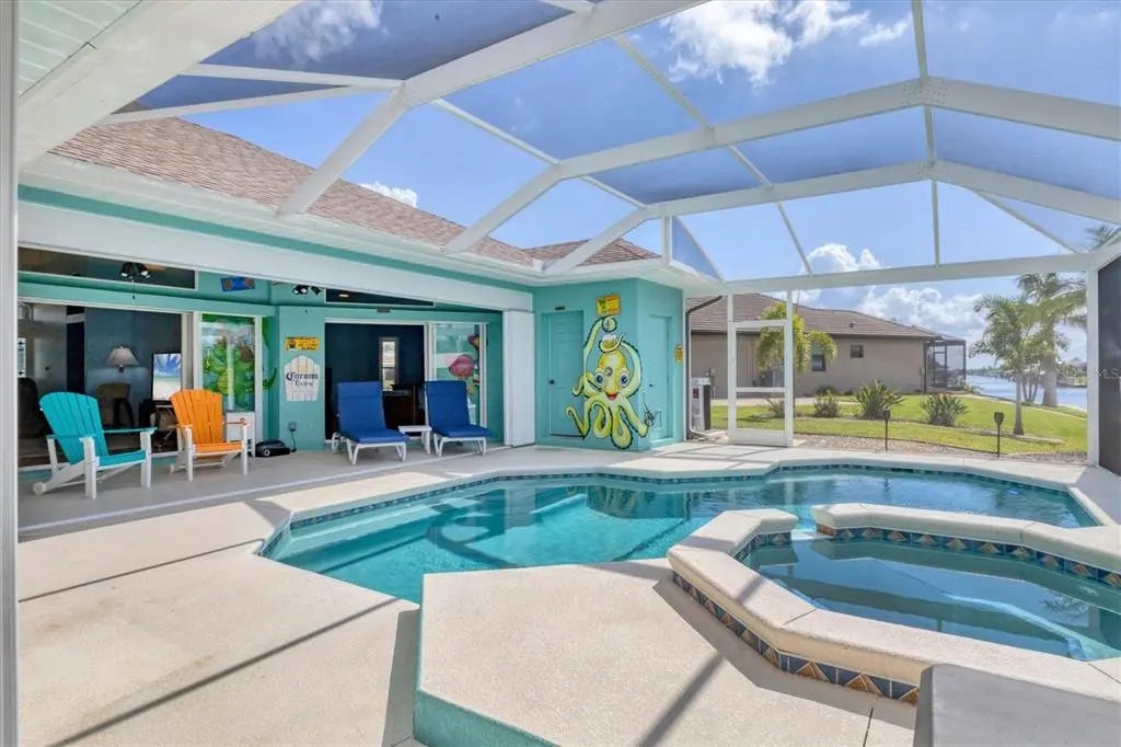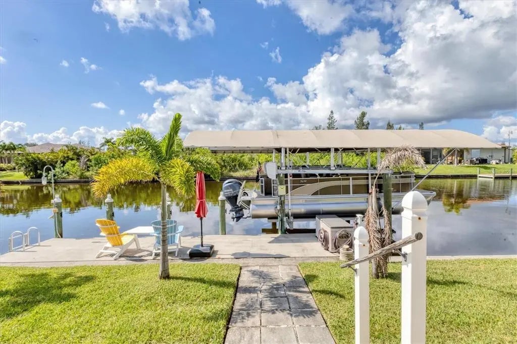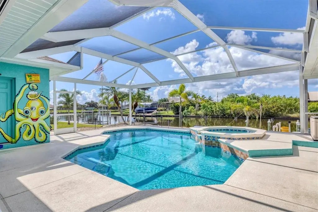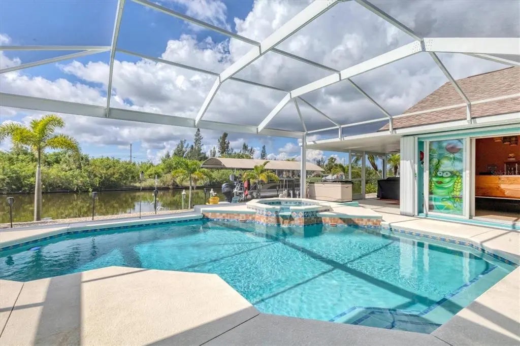 Key West North – Your Waterfront Escape in South Gulf Cove This move-in-ready coastal home is packed with premium features and major upgrades for ultimate peace of mind, comfort, and effortless waterfront living. A true boater’s paradise, it offers direct Gulf access, a 12,000 lb. boat lift with auto-stop, and an extended canopy frame and new canvas (2023). A private fish dock equipped with fish light and electric and water hookups makes it easy to clean your catch or gear up for a day on the water. The heated saltwater pool and spa, enclosed in a two-sided panoramic pool cage, are designed for year-round enjoyment, a covered BBQ patio, enhanced by a private pool bath and a smart system that allows remote control of lighting, temperature, and spa functions. The southeast-facing lanai delivers stunning sunrise views over intersecting canals—a truly serene backdrop. High-value updates include: • Newer roof (2022) with transferable warranty • HVAC system (2024) • Gutters (2023) • Pool cage screen (2023) Miami Dade Code Rated • Exterior paint (2022) & Interior Paint with Custom Murals in designer coastal tones • 22kW Generac generator with auto-switching backup power • Hurricane accordion shutters for storm protection with ease • Plantation shutters for timeless style and light control • 4-zone irrigation system • Lush St. Augustine grass and tropical landscaping And best of all—no flooding during recent hurricanes. Step inside and embrace the easy, breezy vibe of Key West North. The open floor plan features high ceilings, pocket sliders, and charming shiplap accents, offering a relaxed yet refined coastal feel throughout. Open up the doors and let the breeze into this home that is made for entertaining with split floor plan for guests and easy access to the huge kitchen and immense laundry room with a sink and extra storage. The primary suite is a private retreat with tranquil canal views, dual walk-in closets, and a spa-style bath featuring a zero-entry shower, dual vanities and soaking tub. Perfectly located just minutes from Manasota & Boca Grande, sugar-sand beaches, championship golf, dining, shopping, medical and Historic Downtown Dearborn with Farmers Markets and Festivals. This home brings together everything you love about Florida living—with all the big-ticket items already done. Ask for the features sheet for everything this home has at your fingertips. Check out the 360 Tour and Call NOW for your showing.