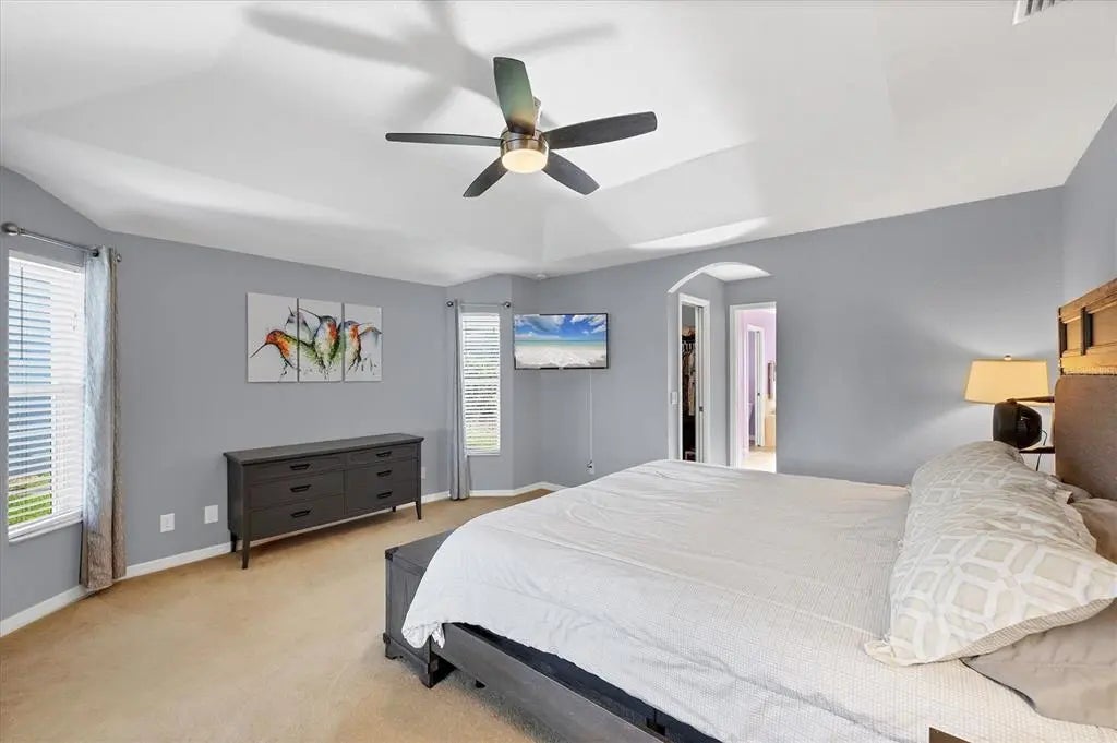 - Interior FeaturesCeiling Fan(s), Eating Space In Kitchen, Primary Bedroom Main Floor, Solid Wood Cabinets, Split Bedroom, Stone Counters, Thermostat, Window Treatments