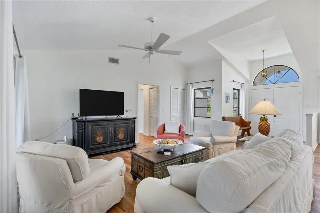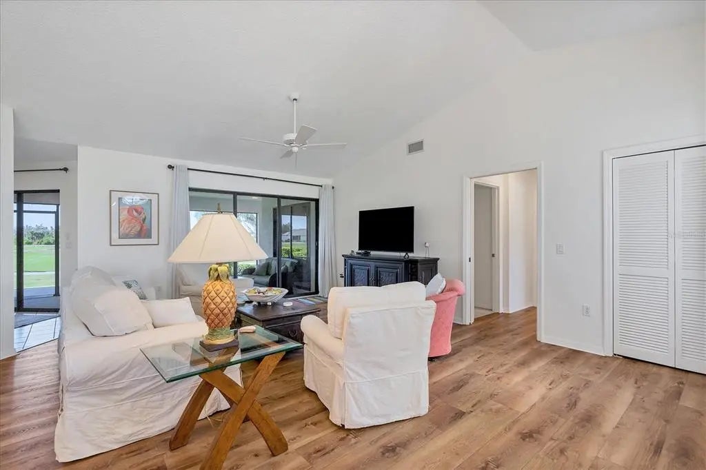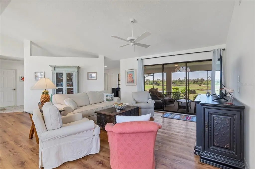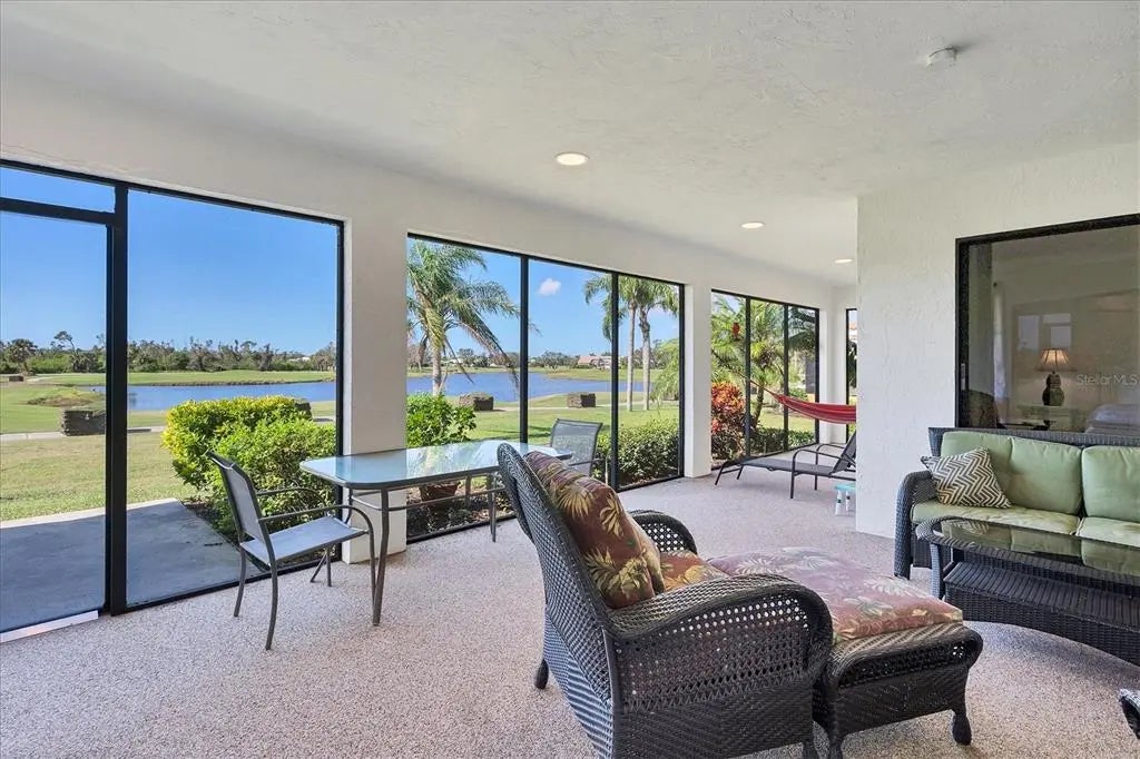 Enjoy a breathtaking golf course and water view from the large screened lanai and nearly every room in this immaculate and renovated home in Cape Haze Windward. The prime location on a exquisite street, the property provides vistas of multiple golf course holes and long views of three large lakes. The 3 bed, 2 bath home has a 2023 concrete flat tile roof, an open floor plan, large kitchen, an abundance of natural light, stunning wide luxury vinyl plank flooring, renovated guest bath, and new bedroom carpeting. The property is newly painted inside and out, and has beautiful manicured landscaping. The pristine neighborhood of Cape Haze Windward offers the charming Cape Haze Links golf course, generous Association greenbelt spaces, and canals and large Coral Creek estuary to enjoy. Walk to Association Kayak launch or boat over to private beach Walk, bicycle or golf cart to the Publix shopping center that includes all the essential shops. Just minutes to historic Boca Grande, miles of serene sandy beaches, three full service marinas, world-class fishing and boating, and numerous public and private golf courses.