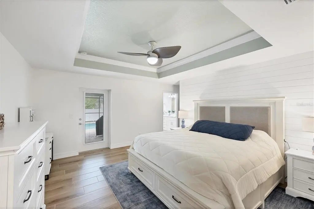 - Interior FeaturesCeiling Fan(s), Crown Molding, High Ceilings, Open Floorplan, Smart Home, Solid Wood Cabinets, Split Bedroom, Stone Counters, Thermostat, Tray Ceiling(s), Walk-In Closet(s)