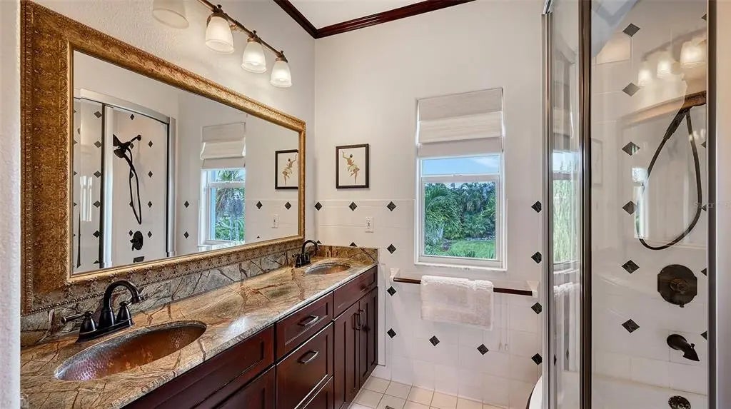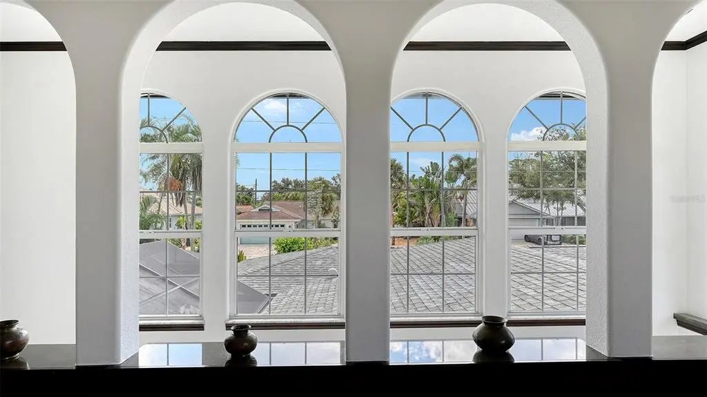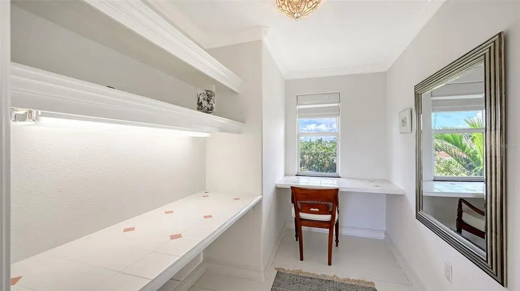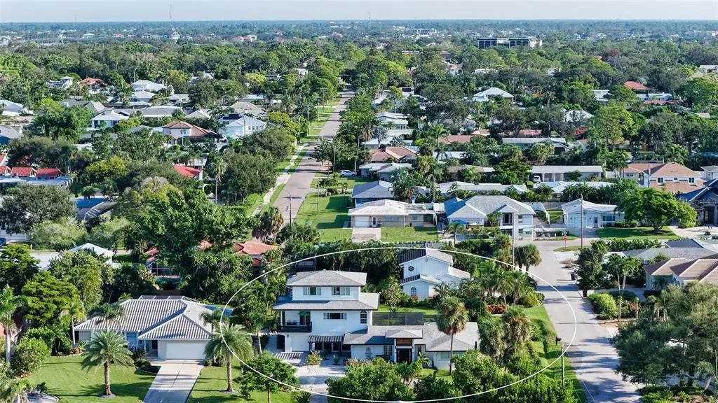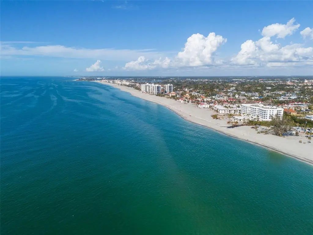 The Gardenia House - Breath Taking Views of the Gulf from Rare Rooftop Lounge Deck. Situated in the heart of coveted Golden Beach, this extraordinary 4-bedroom, 5-bath residence offers a rare blend of classical elegance and contemporary refinements, all just steps from a secluded deeded beach access. Influenced by the famous architect Frank Loyd Wright, the Gardenia House reflects some of his earliest Prairie Style designs identifiable by its large overhanging eaves, and strong horizontal lines. The home's effective year build is 2005. The 3 story addition was completed in 1999 and major renovation work has been done to the entire home over the last 20 years, including electrical, HVAC, plumbing work and new kitchen and baths. Located along the prestigious Gardenia Drive, the home boasts 3,364 sq. ft. of masterfully crafted living space. The redesigned gardens wrap the property in a lush, tropical oasis, with multiple serene outdoor living areas, including a rooftop balcony with breathtaking Gulf views, and a spacious screened lanai with the 2008 built swimming pool. Inside, timeless craftsmanship meets modern luxury. From vintage wide-plank hardwood floors to detailed custom trim, elegant marble baths, and dramatic vaulted ceilings with rich stained beams, the home exudes character at every turn. The grand living room features a stately fireplace and is filled with natural light from walls of windows and sliding doors. The beautifully expanded and remodeled chef's kitchen offers abundant stone counter top space, premium 2025 appliances, custom cabinetry, and a tiled backsplash, all framed by large windows that showcase the pool and garden views. Dual master suites, each featuring private balconies, fireplaces, richly stained wainscoting, large sitting areas, walk-in closets with custom shelving, and classic yet luxurious bathrooms. Additional highlights include many new impact-resistant windows and sliders, storm shutters, several renovated bathrooms in keeping with the home's historic charm, a spacious multi-function room perfect as a home office, media room, or studio, and two laundry rooms. The Seller will credit a buyer the cost to convert the library back into two additional garage spaces, then providing the home with three total garage spaces. The home is also being sold with most of the beautiful period furnishings. Located just blocks from downtown Venice, you'll enjoy the ease of walking, biking, or taking a golf cart to gourmet dining, boutique shopping, renowned Venice Library and Art Center, art festivals, farmers markets, and top-rated Venice Elementary and High Schools. The deeded beach access, just steps away, features a charming pavilion, golf cart parking, and a peaceful stretch of sand for residents to enjoy. A rare opportunity to own a piece of architectural and artistic history, offering unmatched privacy, beauty, and beachside living on a quiet street in one of the Gulf Coast's most sought-after neighborhoods.