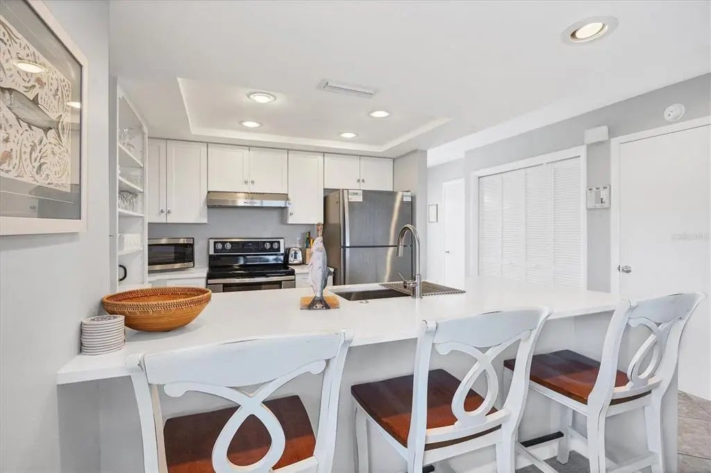 Weekly rate shown, please see description for detailed pricing. Welcome to Sundown Colony, a beachfront townhome offering an extraordinary Gulf Coast escape in beautiful Boca Grande. This 2-bedroom, 2.5-bath residence combines coastal elegance, modern convenience, and the island’s storied charm—creating the perfect setting for a vacation filled with relaxation and discovery. Upon entry, you’re greeted by a bright and inviting main level designed for both comfort and entertainment. The open kitchen features a breakfast bar for casual dining, sleek cabinetry, and modern appliances for effortless meal preparation. A separate bar area invites you to craft evening cocktails before gathering in the living and dining spaces. From here, sliding doors lead to a private lanai where panoramic ocean views and breathtaking sunsets take center stage. Upstairs, the serene primary suite boasts a king-sized bed, updated en-suite bath, and a private balcony overlooking the turquoise Gulf waters—ideal for morning coffee or stargazing at night. The second bedroom is thoughtfully appointed with a full-size bed and twin, offering flexible accommodations for family or guests. Both bathrooms are stylishly modernized, featuring contemporary finishes and spa-like touches. Practical amenities include full-size laundry appliances, central air conditioning, and internet access for added convenience. Outdoors, guests can enjoy direct beach access for shelling and shark tooth hunting, or lounge by the community pool for a relaxing afternoon in the Florida sun. The townhome’s location embodies the beauty and history of Boca Grande. Rent a golf cart to explore the island’s boutique shops, fine dining, and cultural attractions, or visit the historic Port Boca Grande Lighthouse & Museum to connect with the island’s past as a fishing village and retreat for America’s most prominent families. Sundown Colony offers a rare opportunity to experience Boca Grande’s unique blend of coastal luxury, natural beauty, and historic charm—all from the comfort of a modern, beachfront retreat. Off-season: $3250 weekly/$13920 monthly Mid-season: $4500 weekly/$19290 monthly In-season: $5750 weekly/$24630 monthly