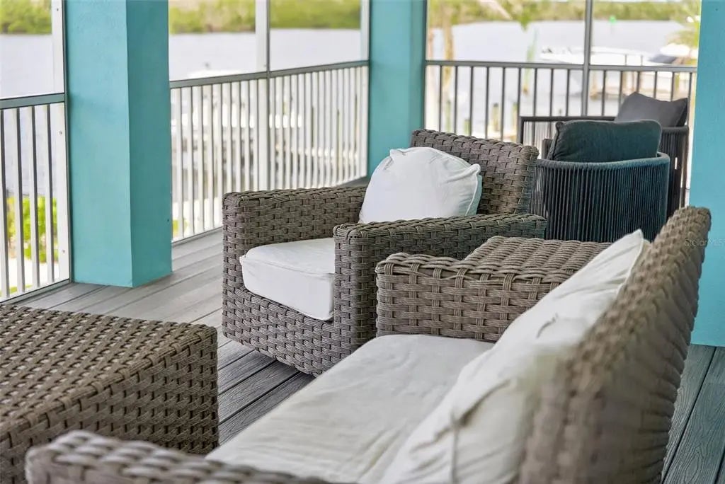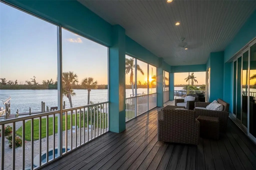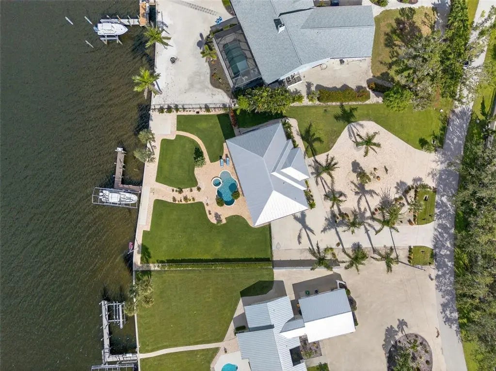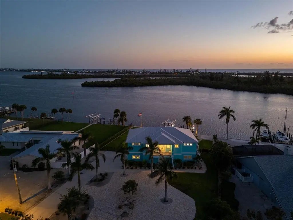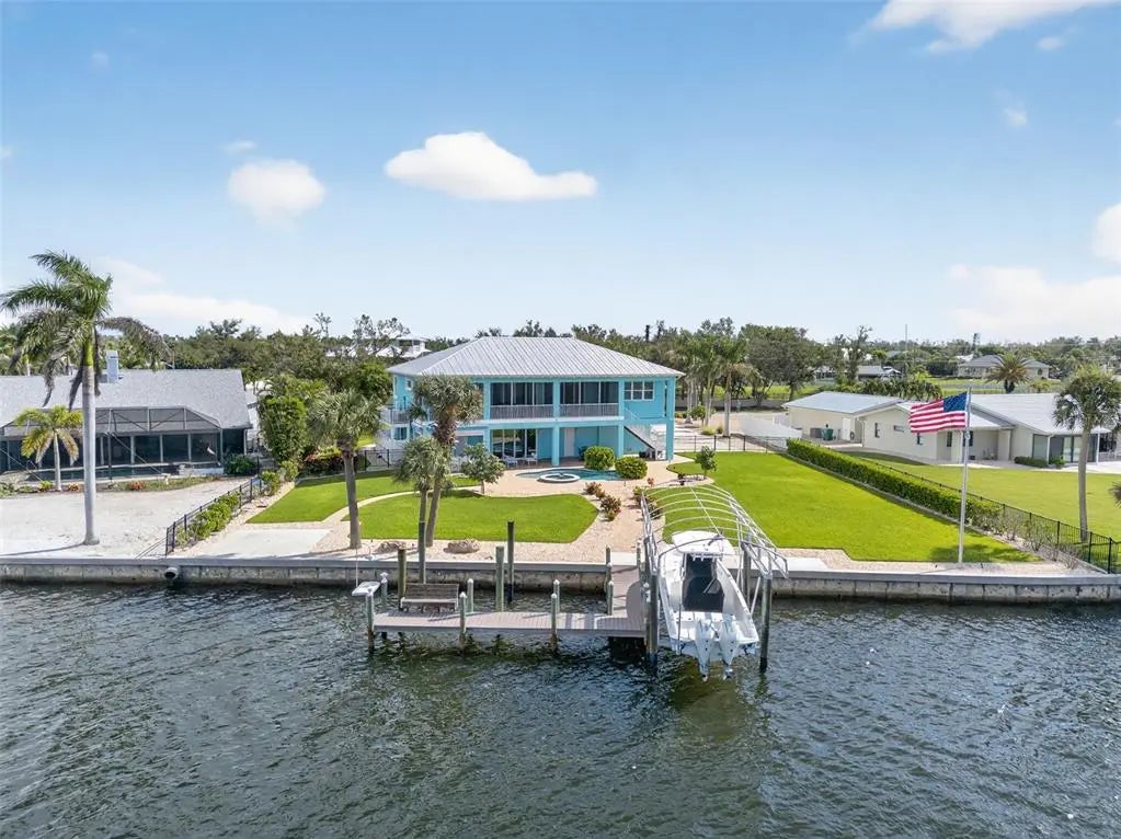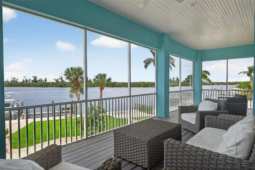 Built in 2020, this superbly crafted, luxury waterfront residence is perfectly positioned on 126 feet of prime Intracoastal Waterway frontage. Set on about .6 acres of impeccably landscaped grounds in the quiet Vanderbilt developed neighborhood of Cape Haze, with streets lined with towering banyan trees, the property enjoys a secluded old Florida setting. The residence offers the best of both worlds, with large vessel dockage at your back door and absolutely spectacular bay views, stretching to the Boca Grande bridge, Little Gasparilla Island and beyond. The nearly new home was built by an elite local builder, Jeb Bergeron Custom Homes. Designed and constructed to the highest coastal construction standards, with concrete tapered pilings, poured concrete beams, concrete block, thoroughly elevated, high-impact resistant windows and sliders, metal roofing, and a whole house generator provides lasting quality and more peace of mind. Inside the 4,241 total square foot home there's 3 bedrooms and 3.5 baths, each with a private en-suite, a grand open and elegant layout with light filled spaces, tall 11-foot+ vaulted beamed ceilings, that fully opens up and savors the mesmerizing nautical views. The chef's kitchen combines luxury and function with custom cabinetry, stone counter tops, a Wolf gas range, Sub-Zero refrigerator, and a beautifully crafted island. Other custom features include crown molding, case windows, solid core doors, beautifully tiled bathrooms, tankless gas water heater, premium plumbing and lighting fixtures. Outdoor living is equally impressive, with an immense screened second floor porch and ground level patio that run the entire length of the home. A stunning swimming pool and spa, paver patio and walkways, a large outdoor kitchen and bar, complete with a built-in gas grill, perfect for waterfront lounging and entertaining. An absolute boater's and fisherman's dream with world-class fishing waters and legendary boat destinations at your fingertips. Just a few steps to step onto your boat and within minutes be fishing for tarpon, back country or be in the Gulf headed for an offshore catch. Or take the guests on relaxing day trip adventures to an endless number of destinations including Boca Grande, Cabbage Key, Useppa, Captiva, Bokeelia, and Sanibel. The Cape Haze Property Owner's Association private dock and beach along with the Don Pedro Island State Park are just across the Waterway where gorgeous uninhabited beaches await.
