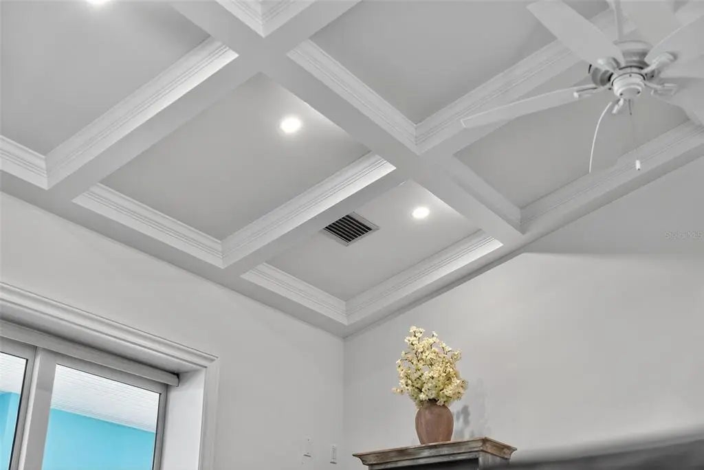 - Interior FeaturesCeiling Fan(s), Crown Molding, High Ceilings, Open Floorplan, Solid Wood Cabinets, Tray Ceiling(s), Vaulted Ceiling(s), Walk-In Closet(s), Window Treatments
